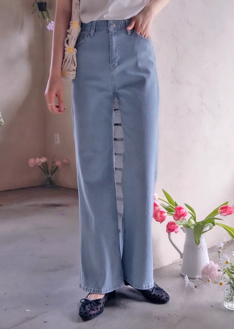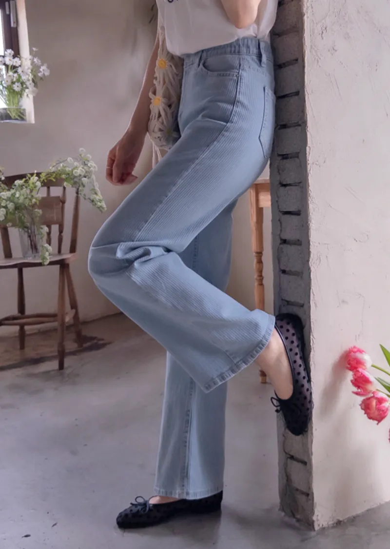 獨特羅紋修身彈性舒適牛仔褲