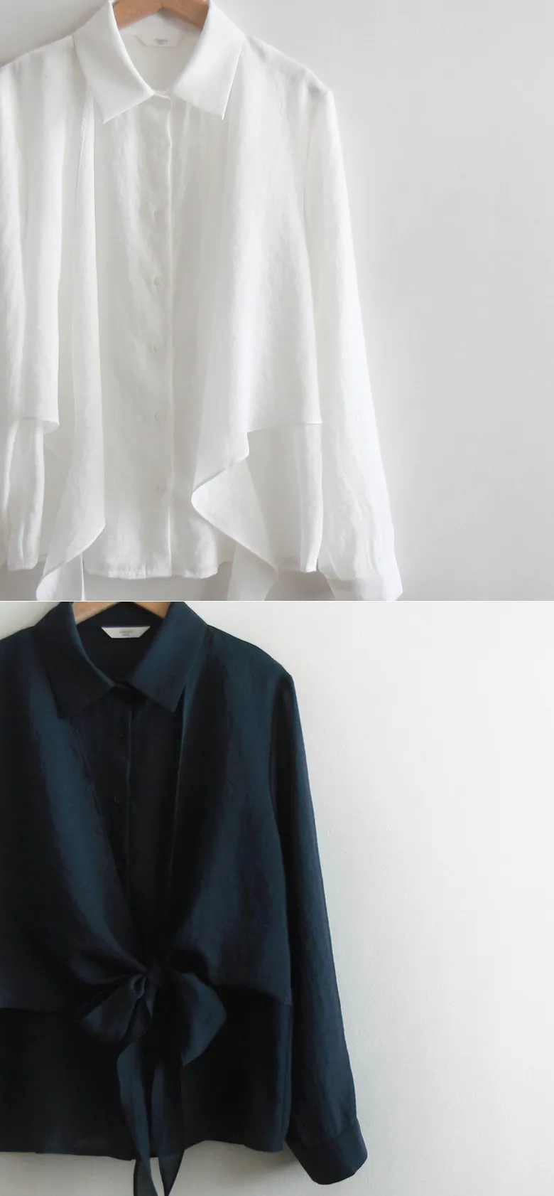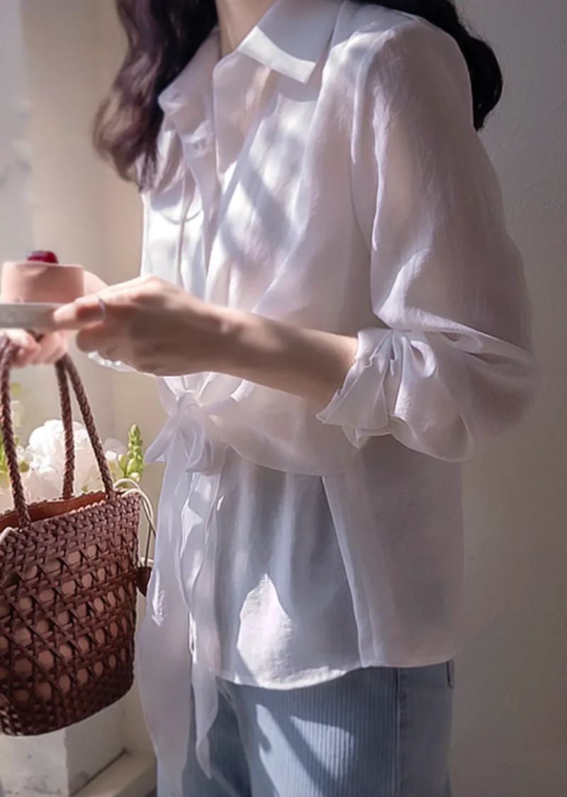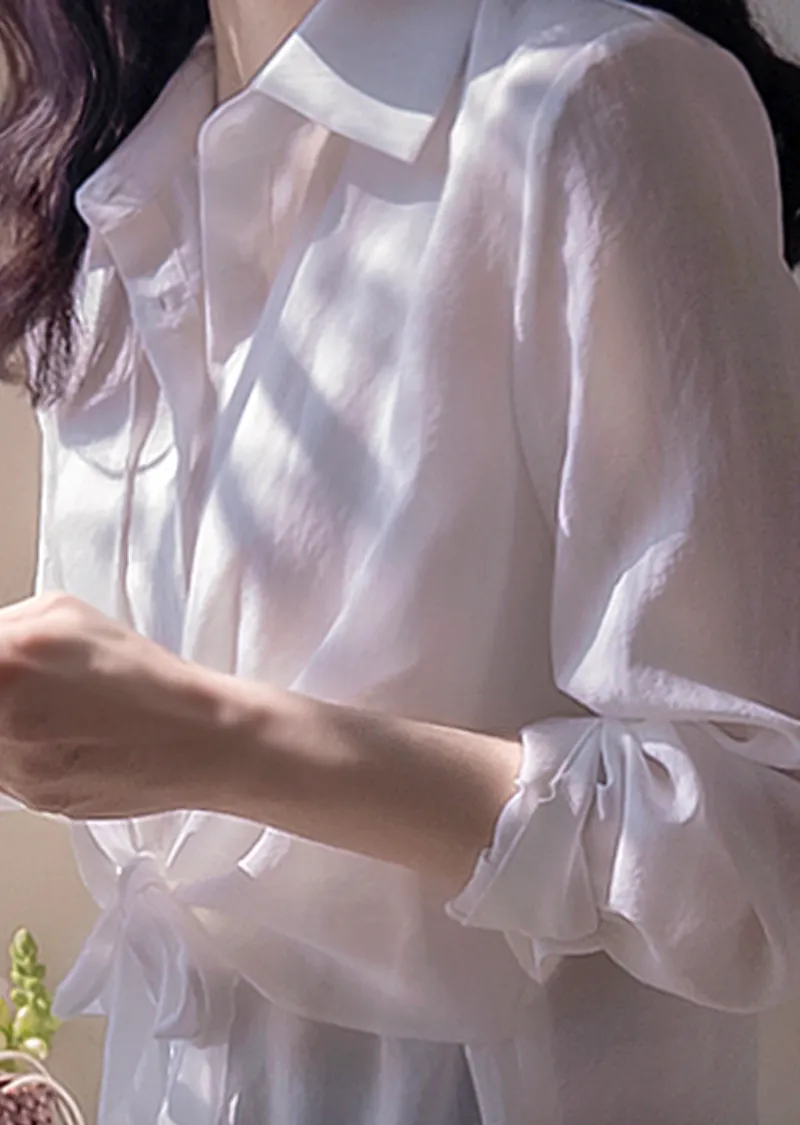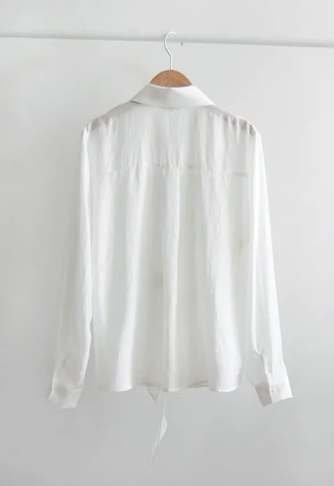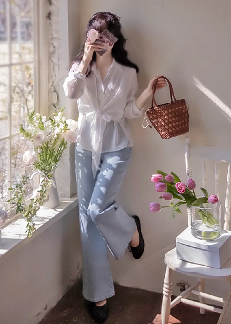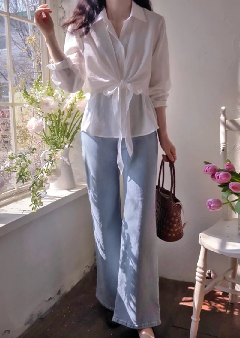 柔美簡約前側裹身綁帶飄逸排扣上衣