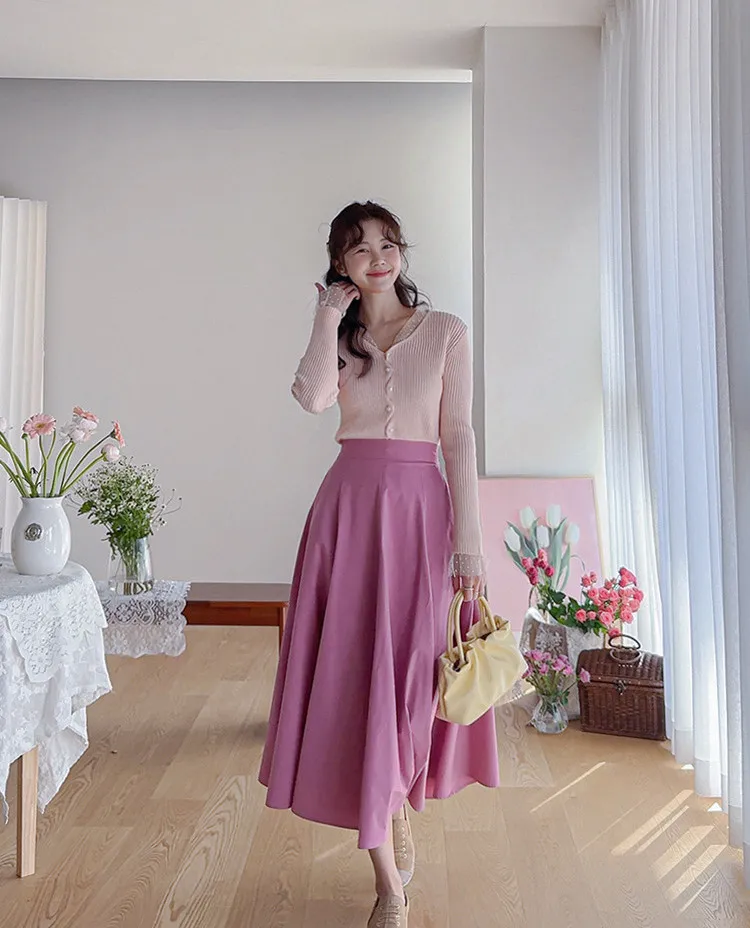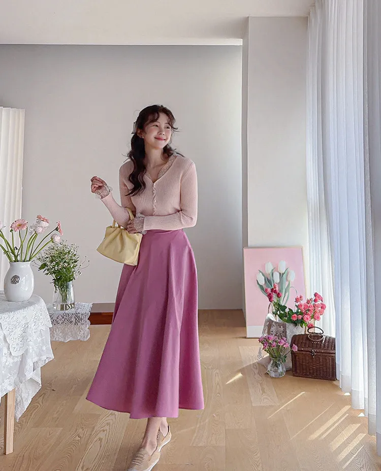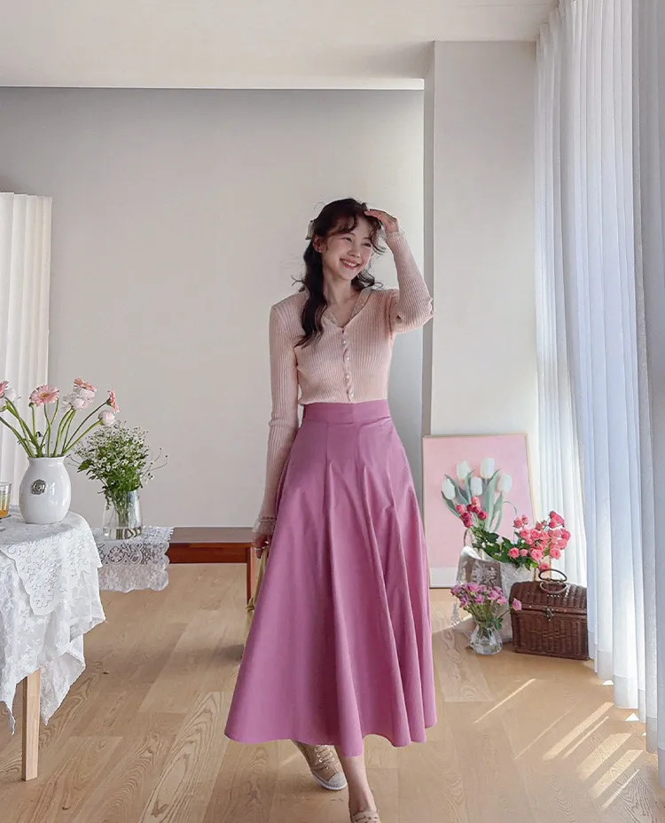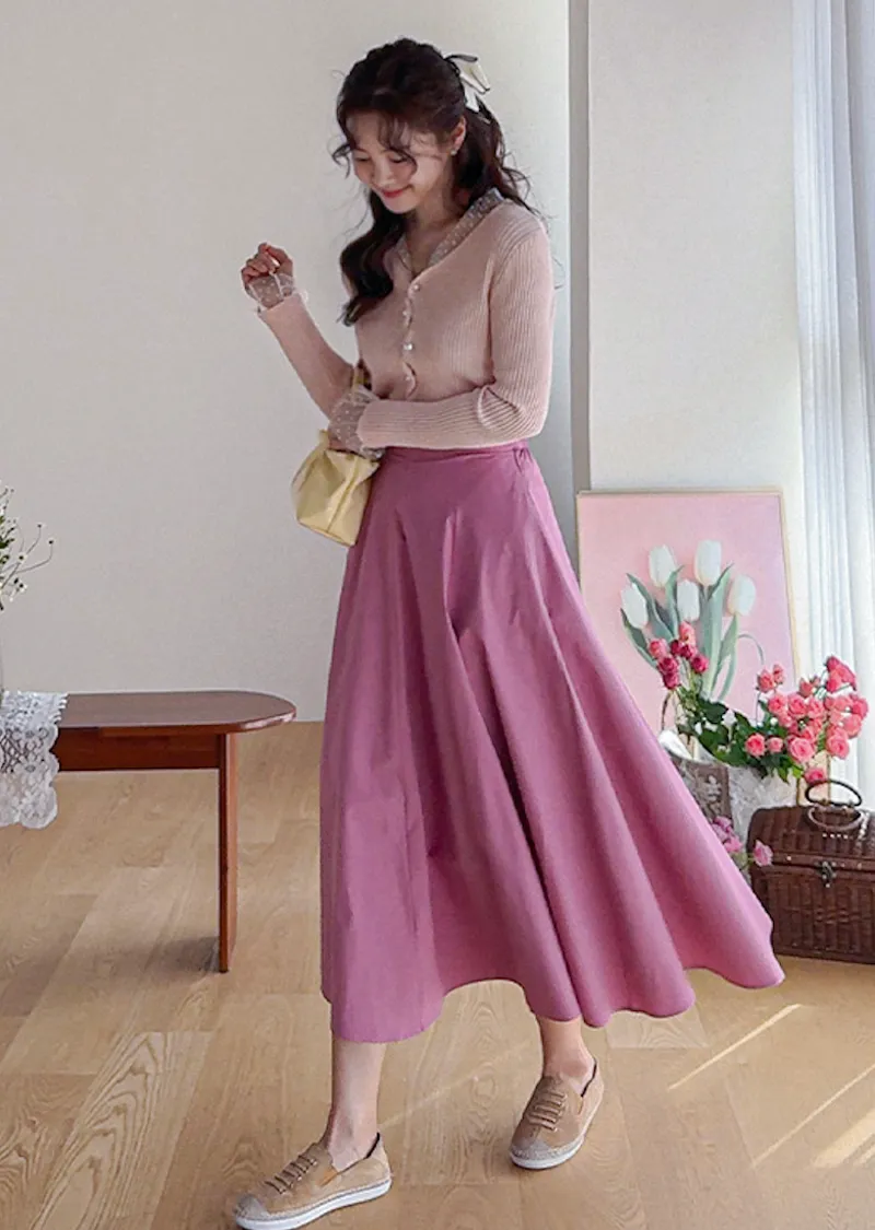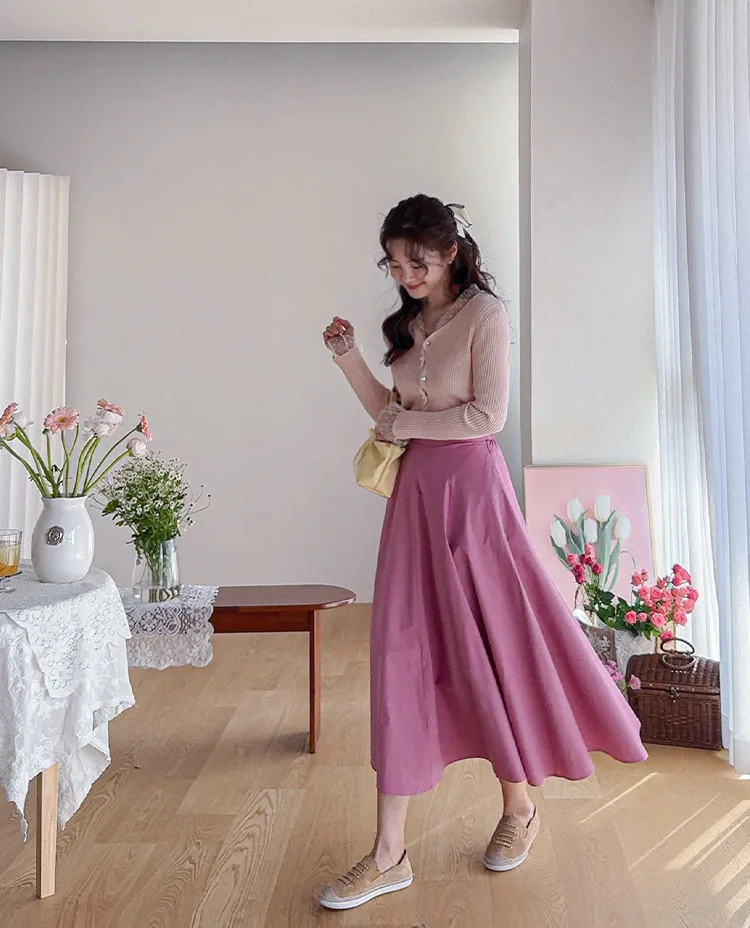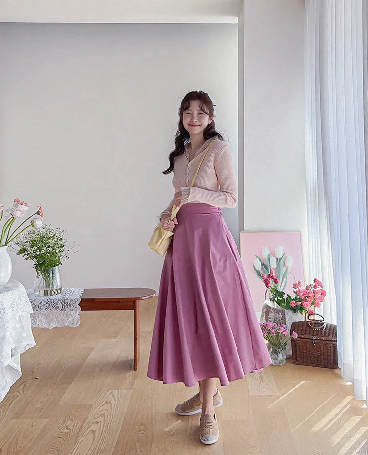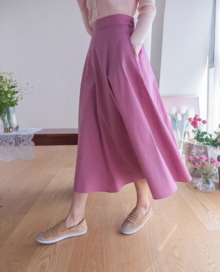 【天然棉質生物水洗布料】【後腰鬆緊帶設計,穿著舒適】【A字廓形,展現女性柔美氣質】【日常及約會皆宜】