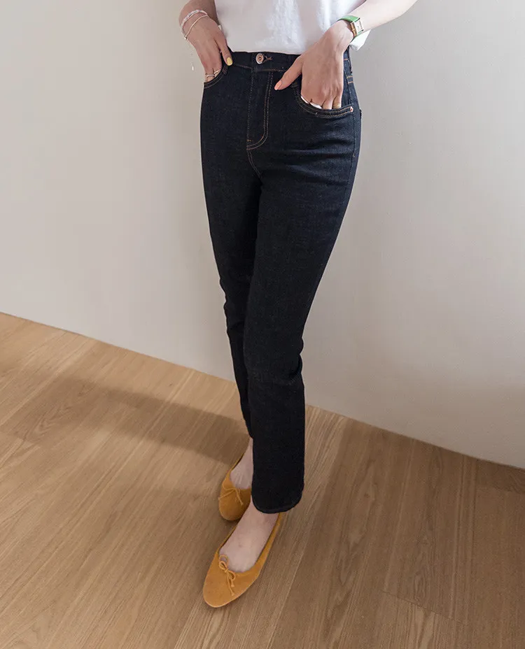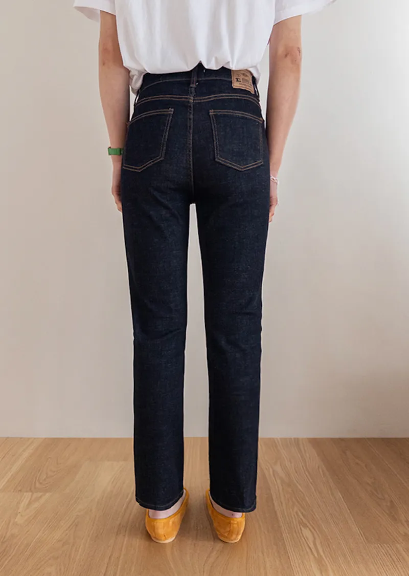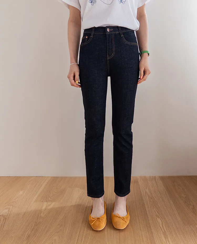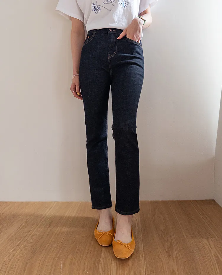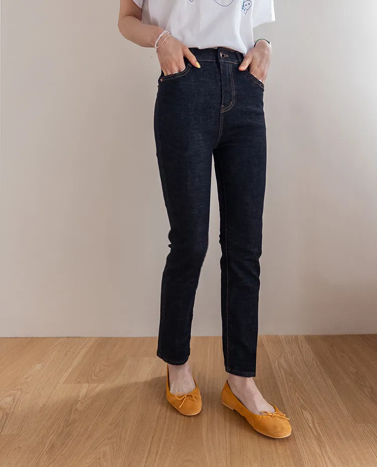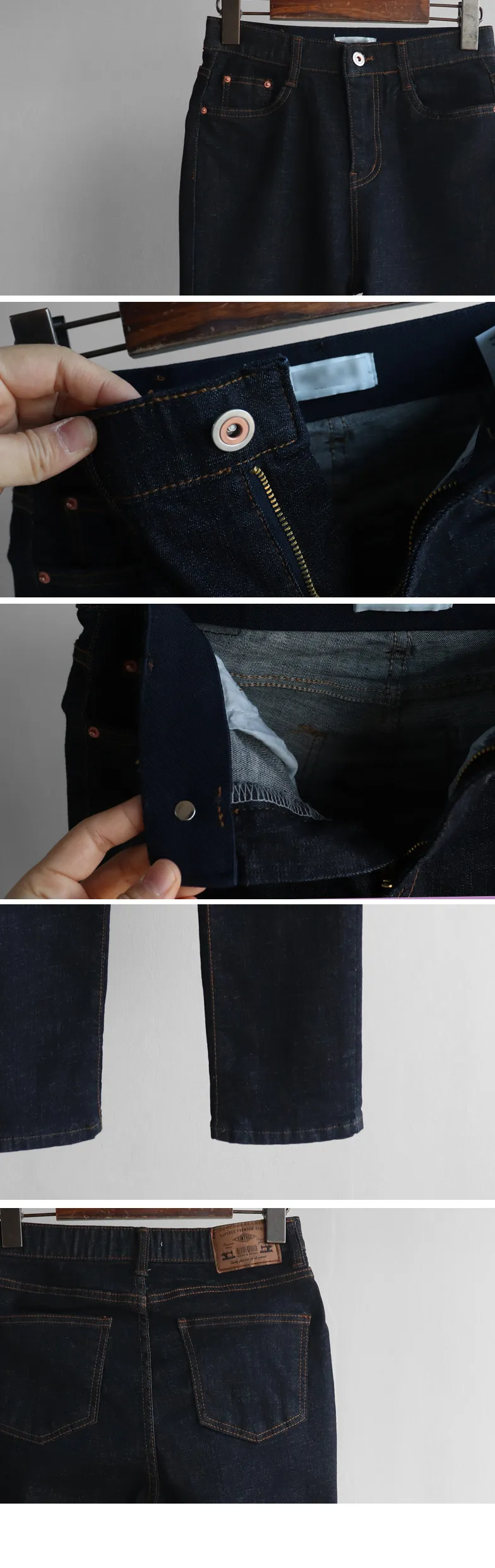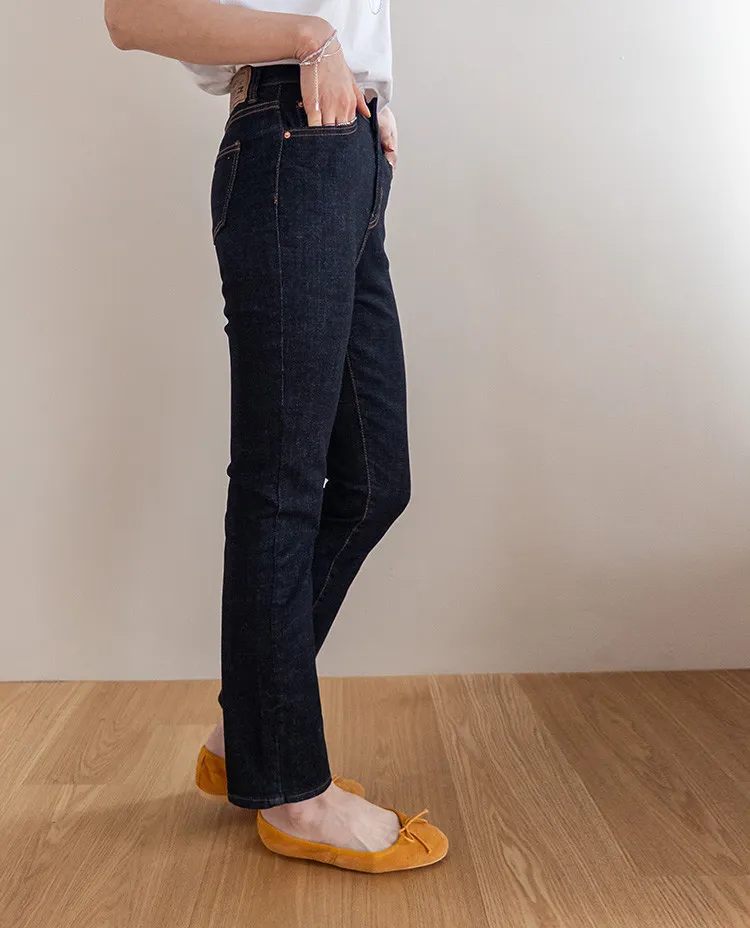 修身顯瘦隱藏鬆緊舒適原色直筒牛仔褲