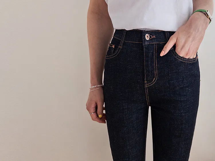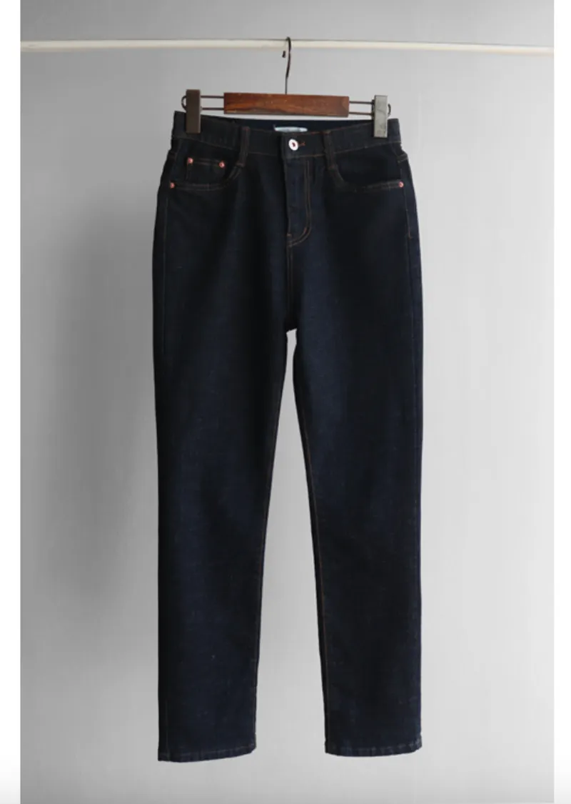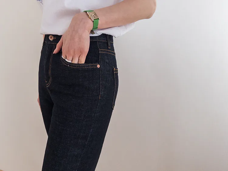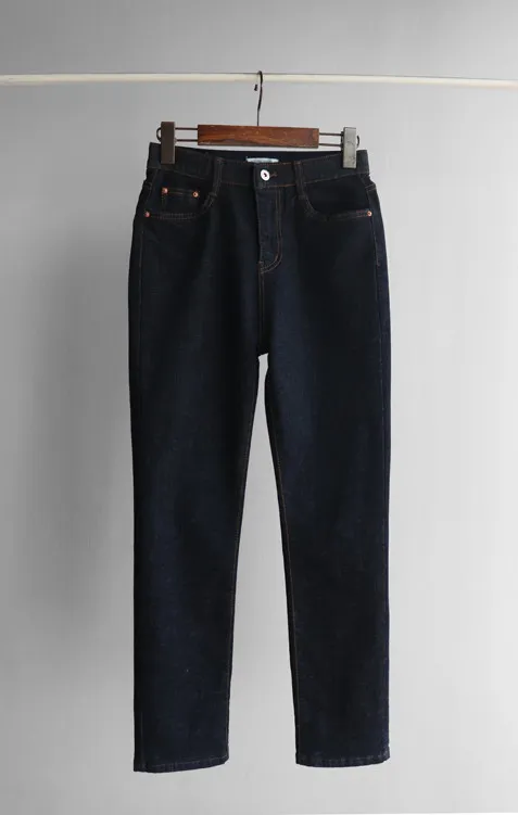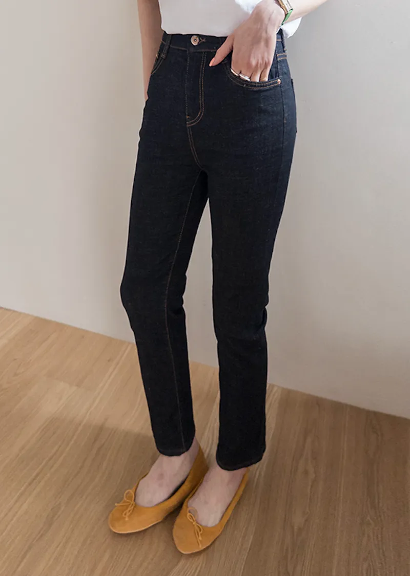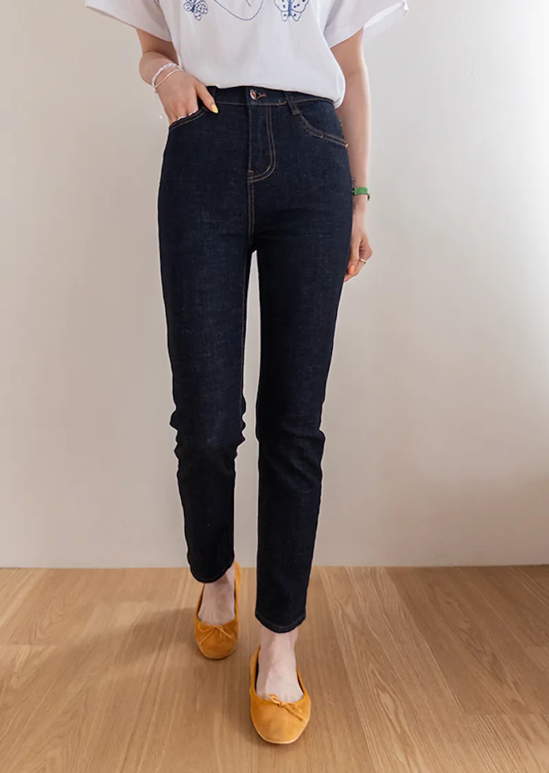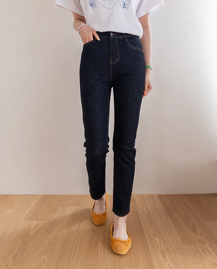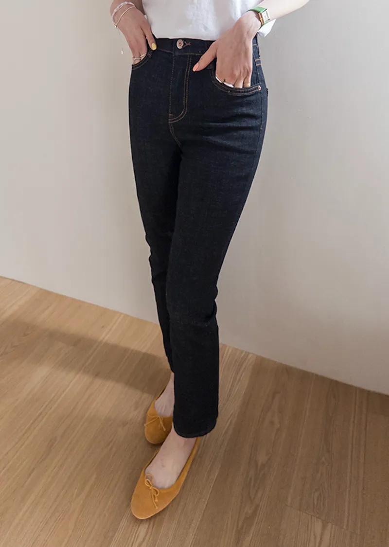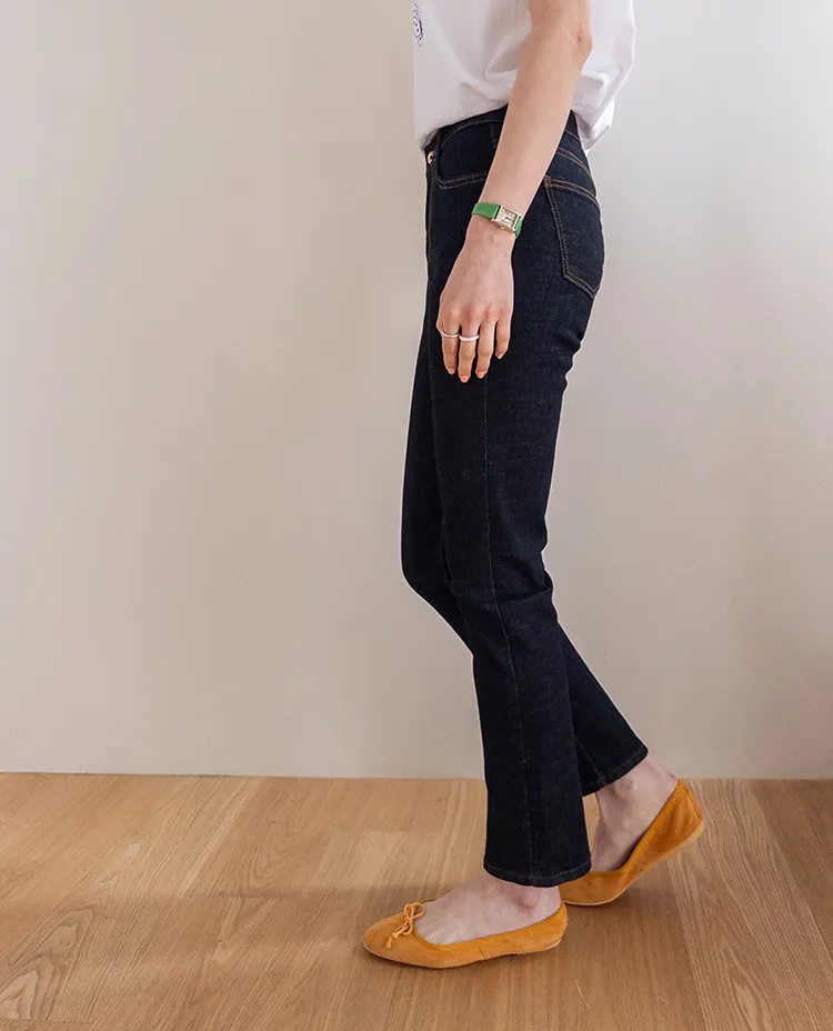 修身顯瘦隱藏鬆緊舒適原色直筒牛仔褲