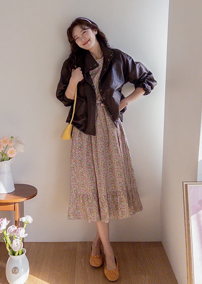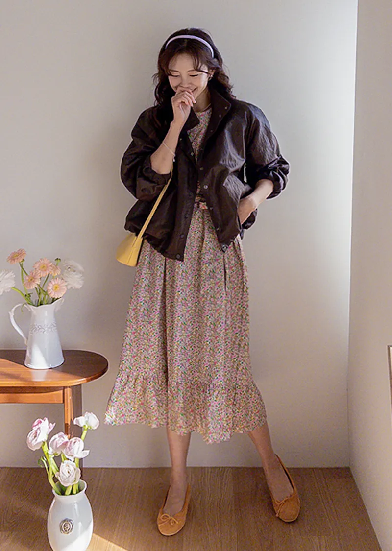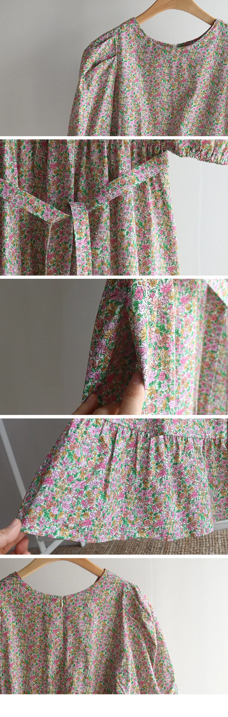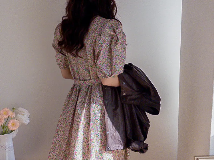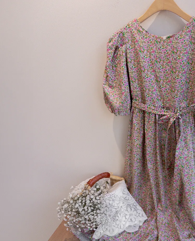 【點睛之筆,柔美花朵圖案♥】【蓬鬆肩部設計,打造精緻輪廓~】【腰帶可調節腰線! 】【裙擺荷葉邊細節,增添飄逸感】