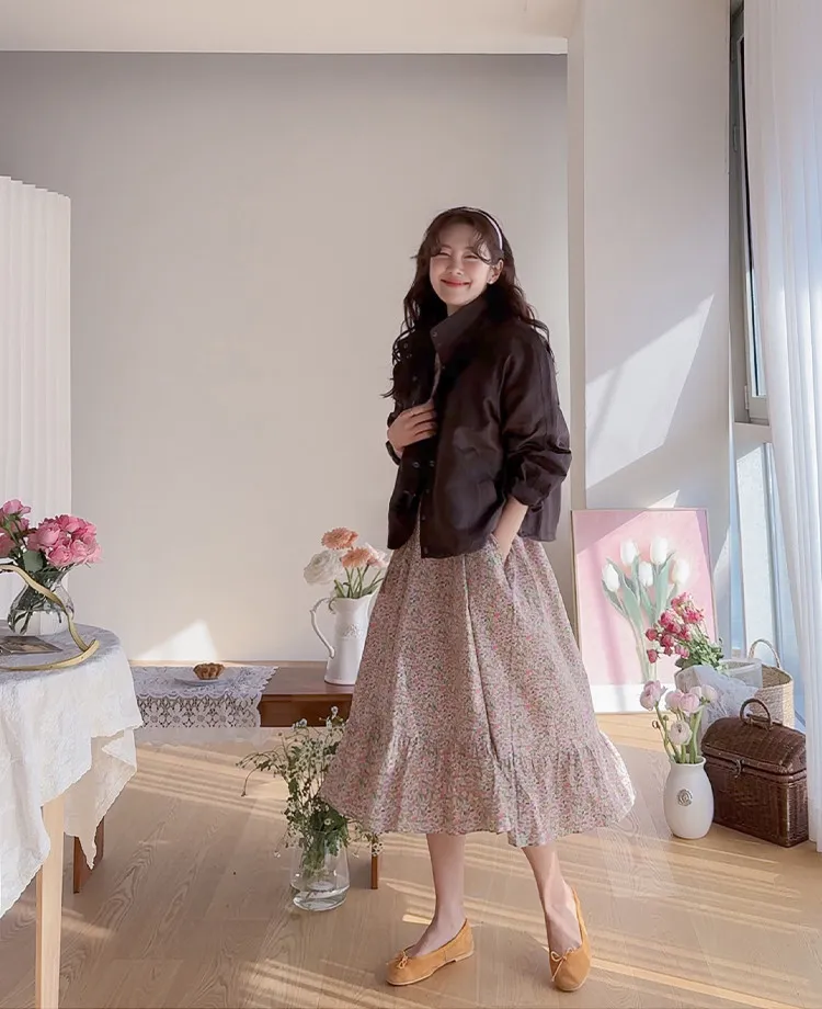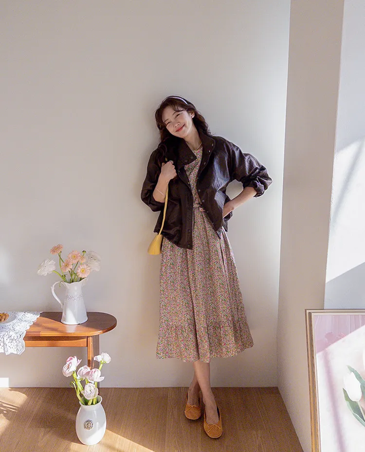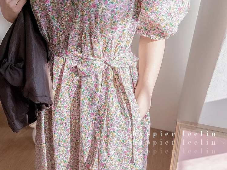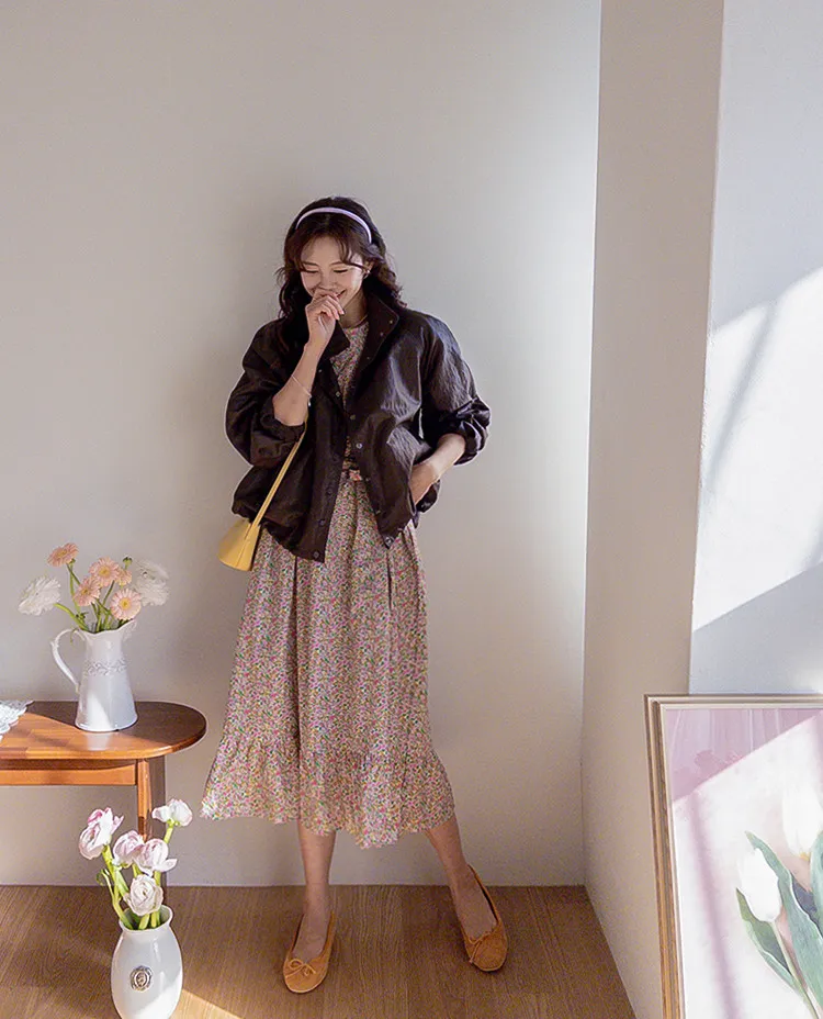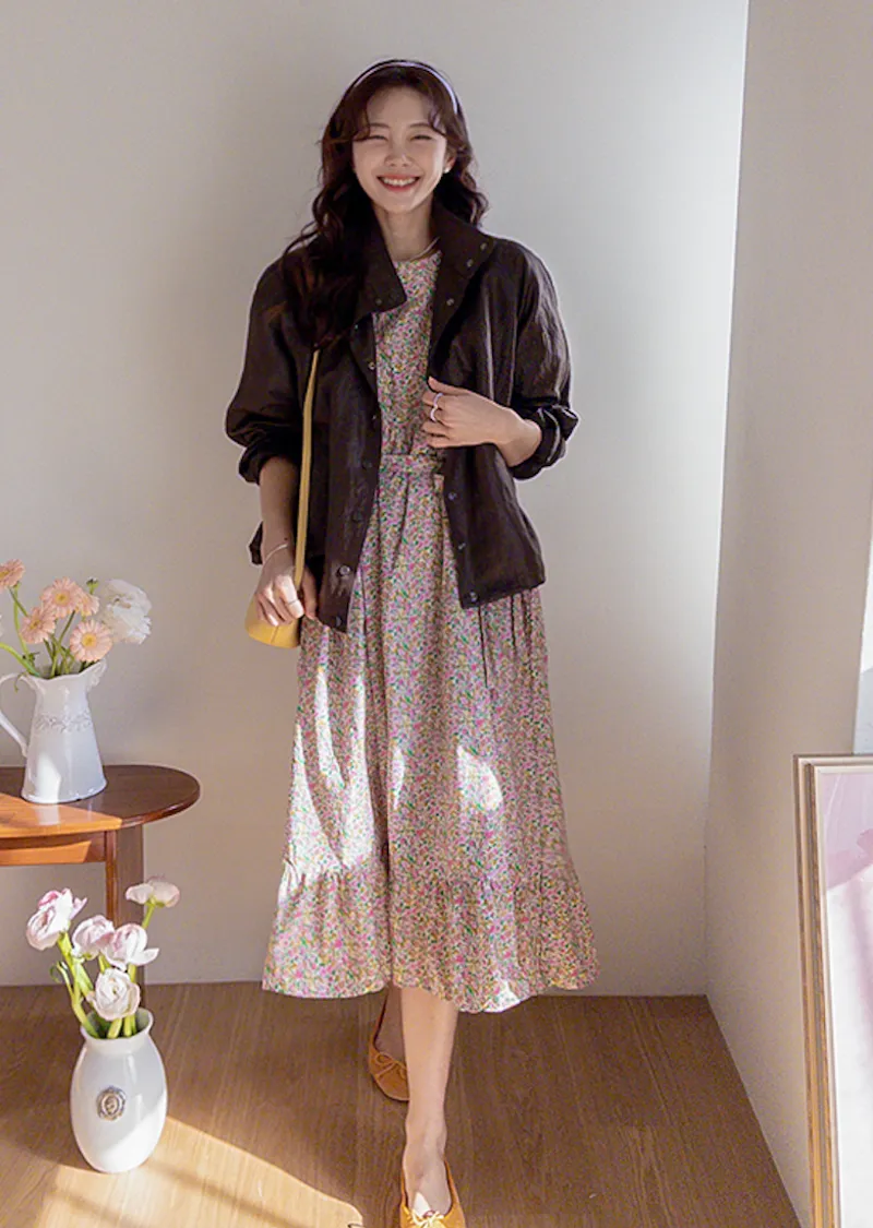 【點睛之筆,柔美花朵圖案♥】【蓬鬆肩部設計,打造精緻輪廓~】【腰帶可調節腰線! 】【裙擺荷葉邊細節,增添飄逸感】