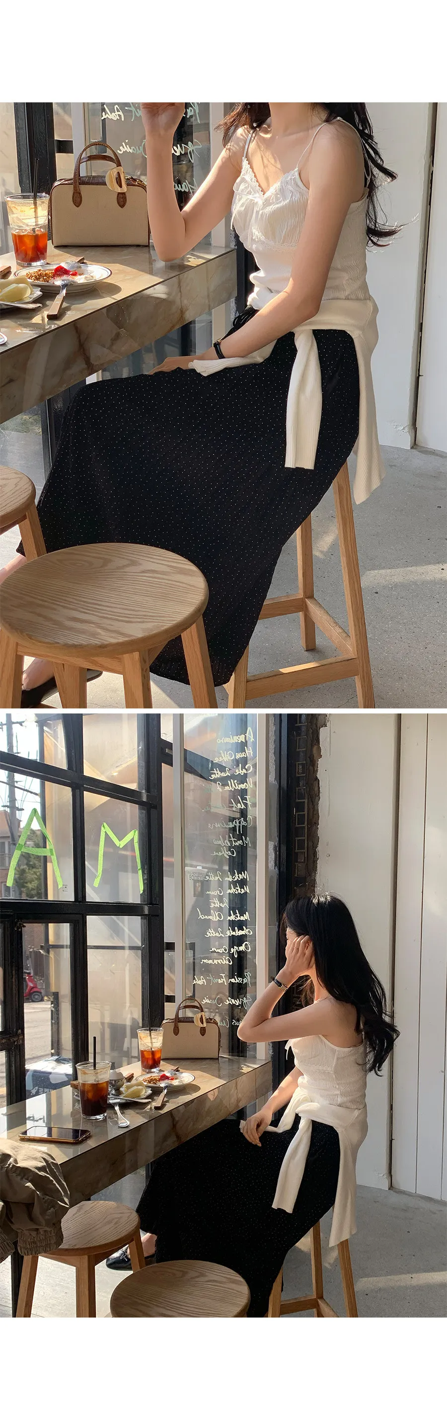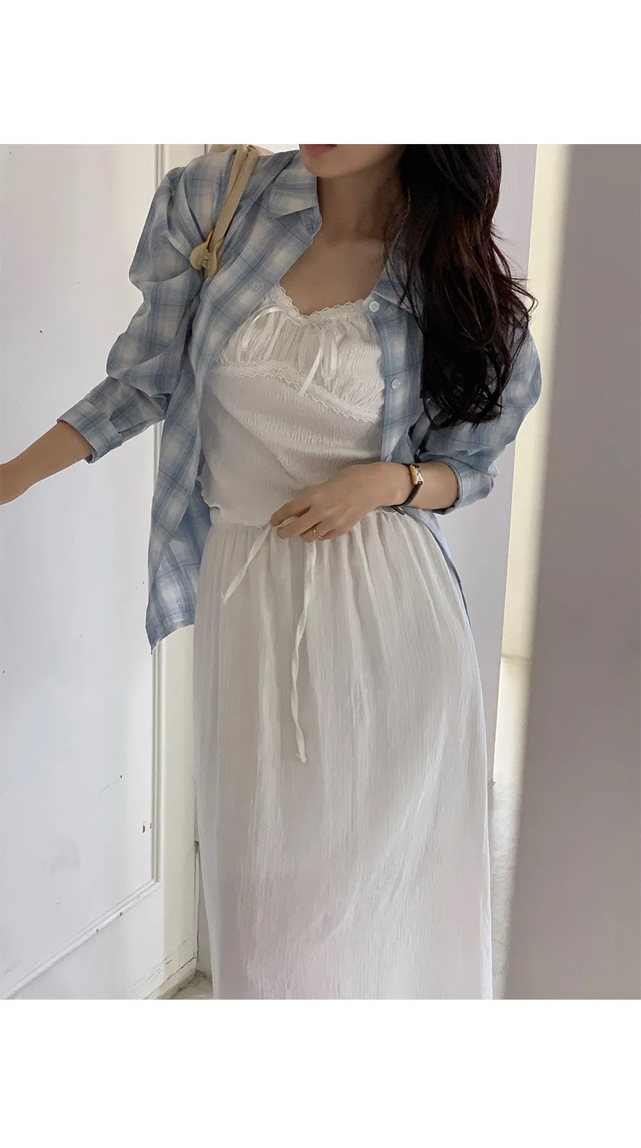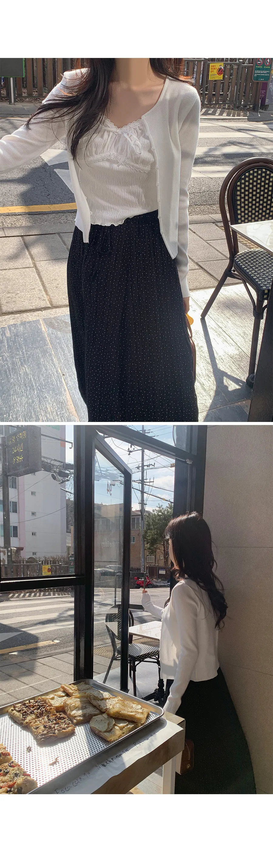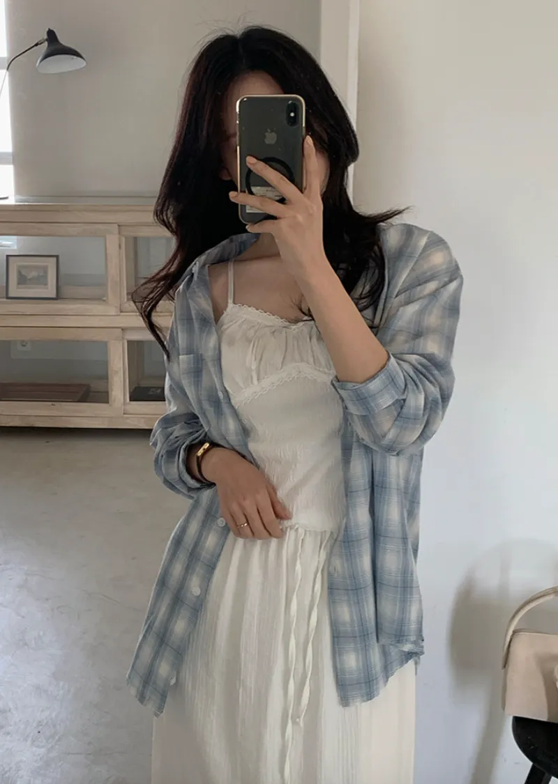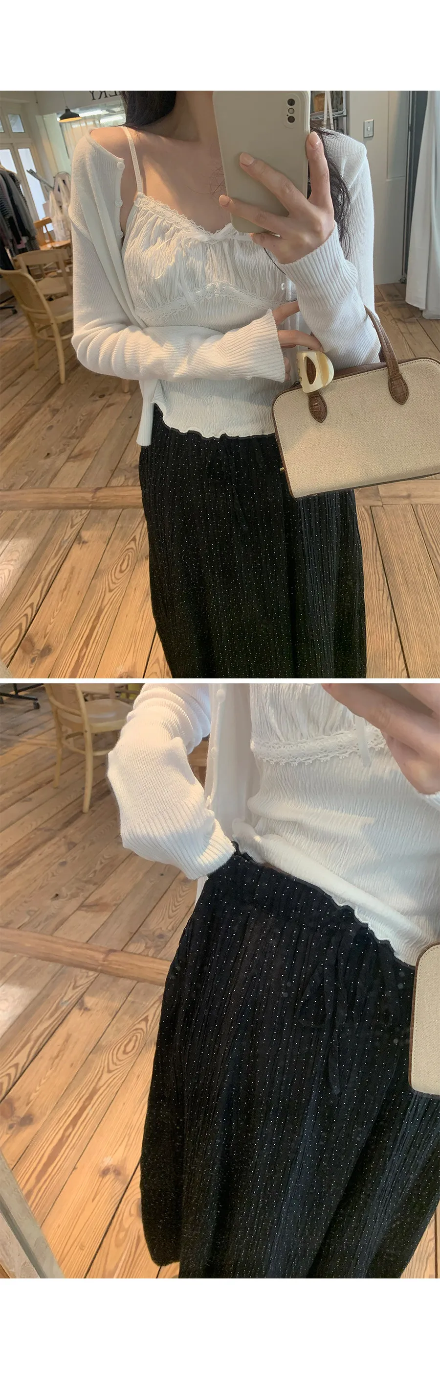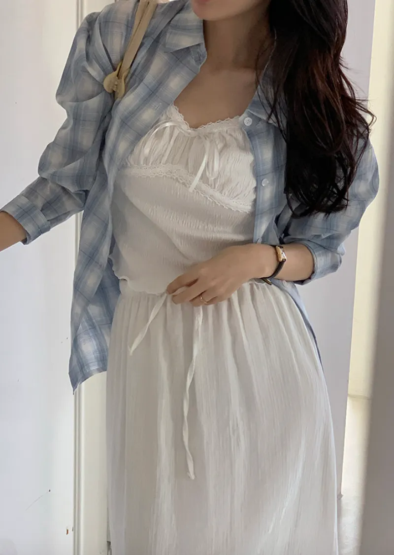 材質:97% 棉 + 3% 氨綸。充滿女性化的無袖上衣♡在領口和胸線處飾以蕾絲細節,營造出柔美的氛圍。 搭配各種上衣時, 蕾絲線條若隱若現, 更添幾分嫵媚動人。緞帶繫帶和波浪下擺的設計更添可愛 ,纖細的肩帶勾勒出精緻的身形。夏季單穿再適合不過,換季時節,它也是內搭的理想選擇。布料上的細微褶皺設計,增添了一抹獨特的亮點,避免了單調感。 這款無袖上衣散發著濃鬱的女性魅力 :)