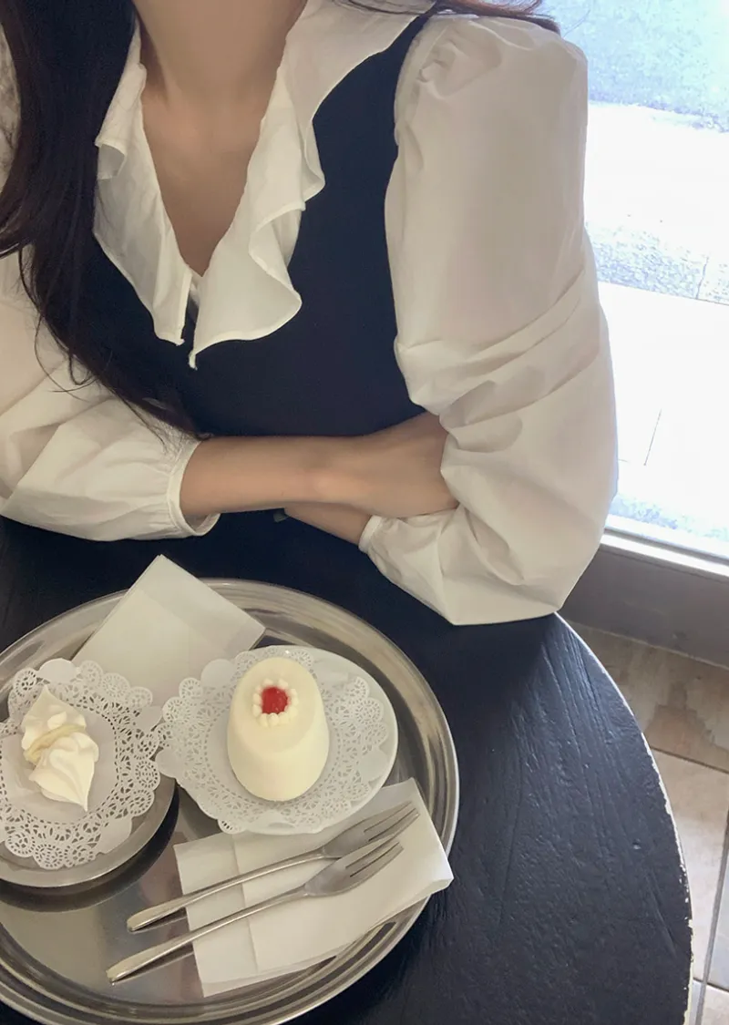 材質:100% 棉。這款完美打造甜美心情的上衣 !領口延伸出的荷葉邊和褶襉細節,營造出高品質的甜美氛圍♡ 肩部的褶皺設計凸顯了可愛的輪廓, 泡泡袖則更添幾分俏皮可愛 :) 憑藉其甜美的氣質,可像模特一樣,搭配連深裙、 抹胸背心或針織衫 ,打造適合婚禮賓客或約會的造型。