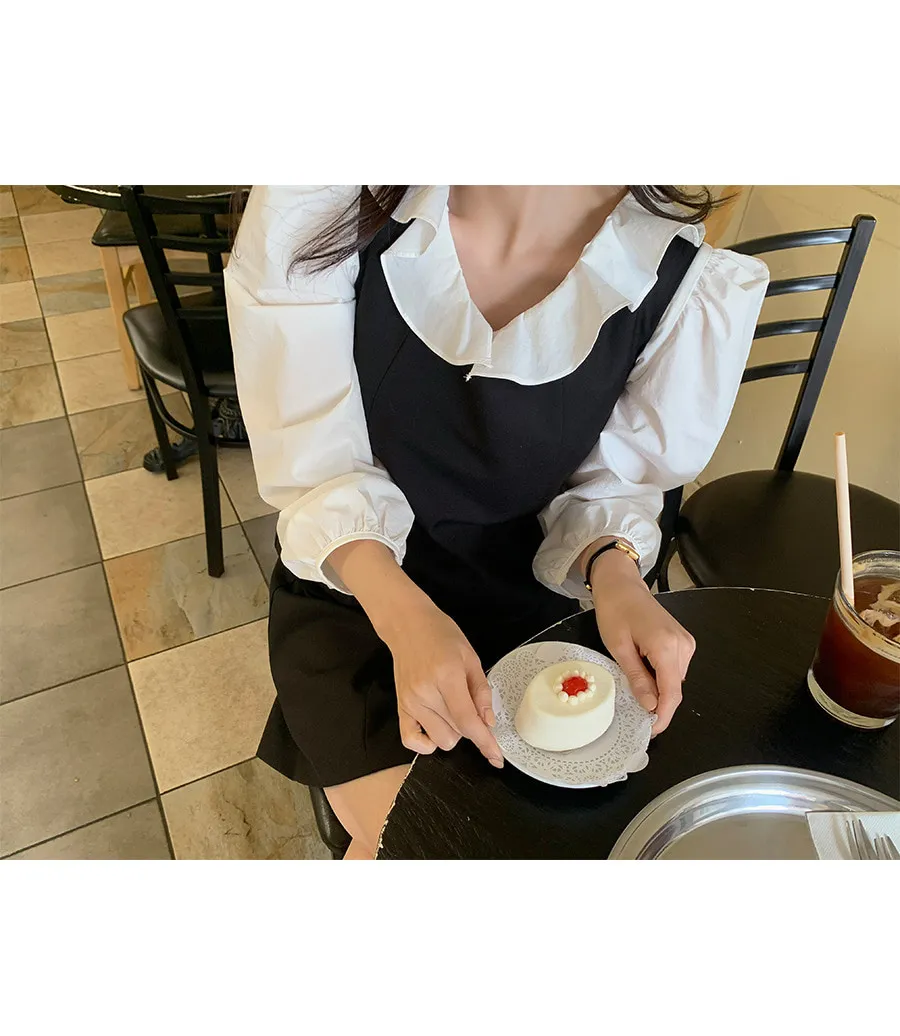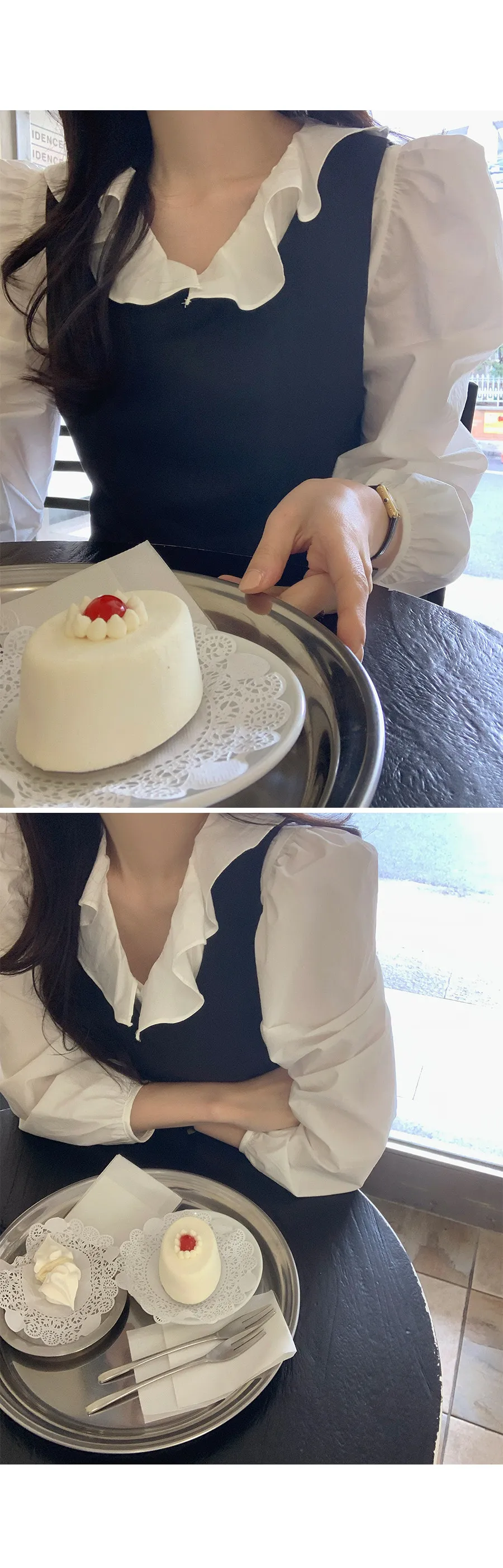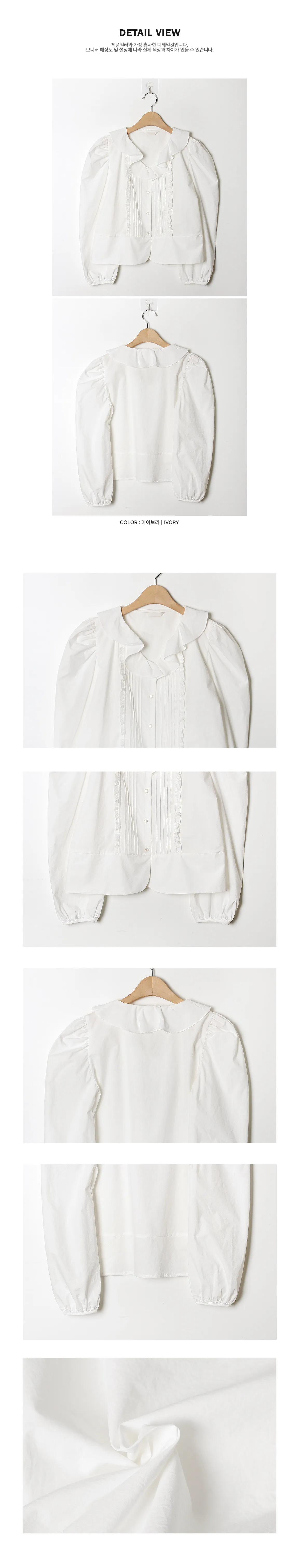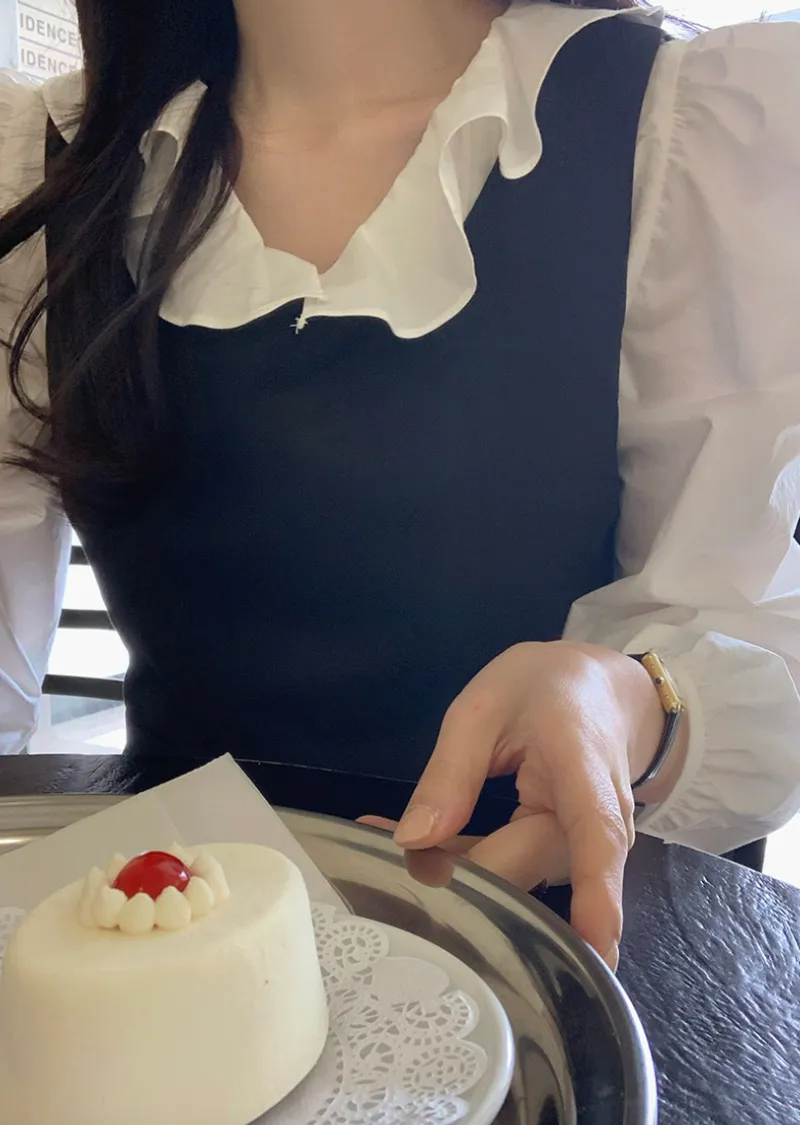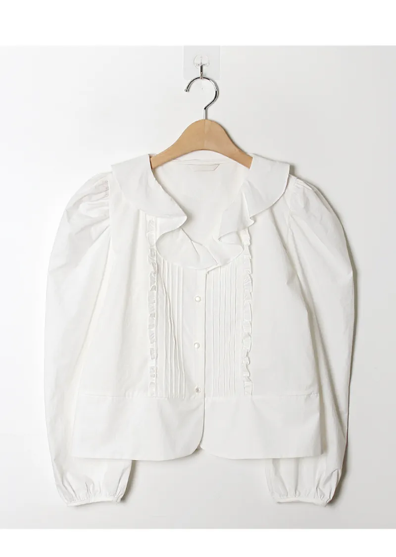 甜美氛圍荷葉領口褶襉設計排扣上衣
