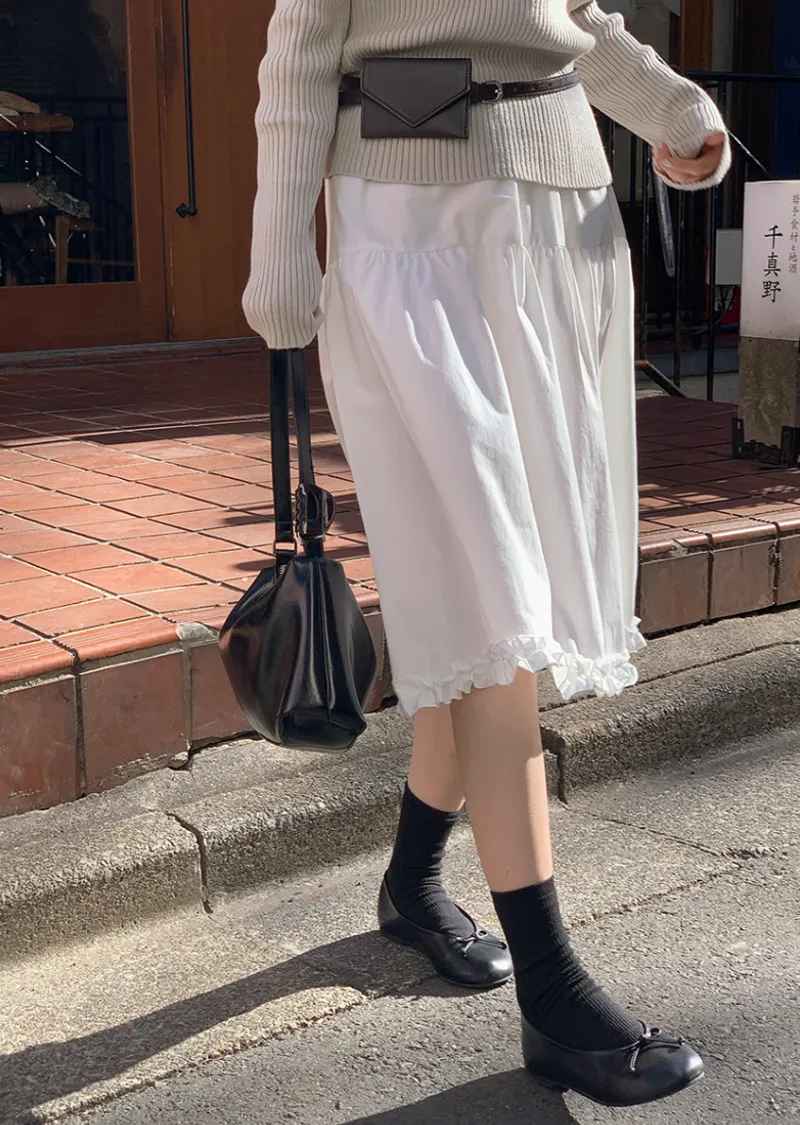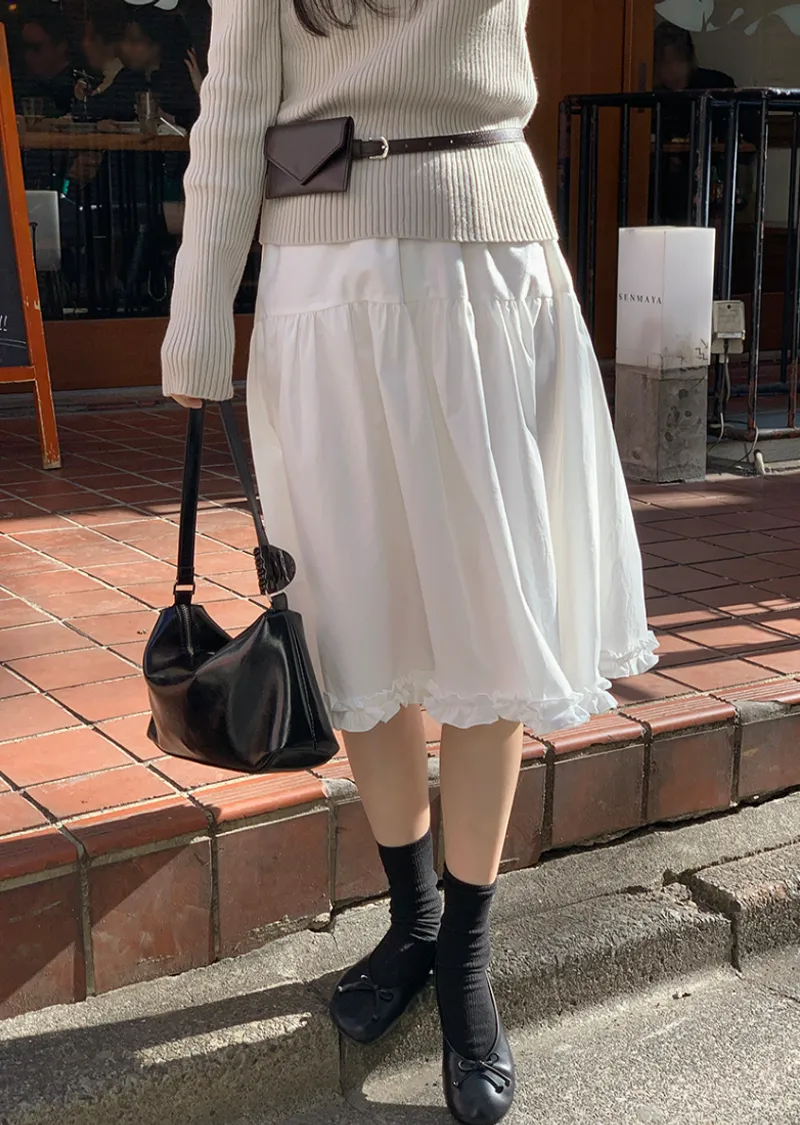 材質:100% 棉。充滿甜美氣息的荷葉邊半身裙!採用精緻的褶皺和荷葉邊細節,勾勒出靈動活潑的輪廓。蓬鬆的A字廓形, 讓舉手投足間都散發著優雅氣質, 裙擺處的荷葉邊更添幾分甜美。 及膝的中長裙擺 ,展現時尚潮流 。全彈性腰帶和寬鬆的裙擺設計,穿著舒適,還能完美遮蓋下半身。 搭配休閒上衣或針織衫, 輕鬆打造甜美造型。一旦擁有,您一定會愛不釋手,經常穿著它。