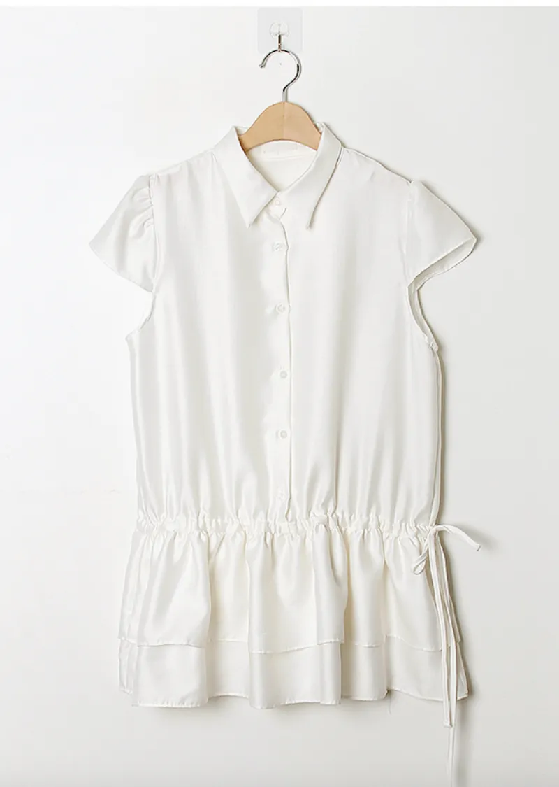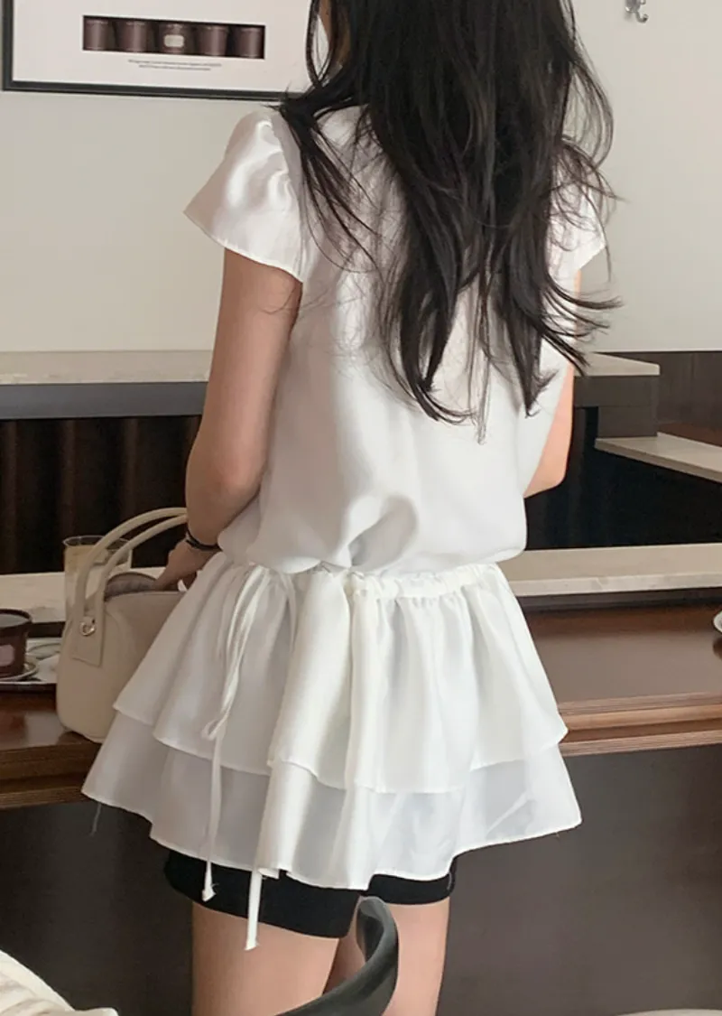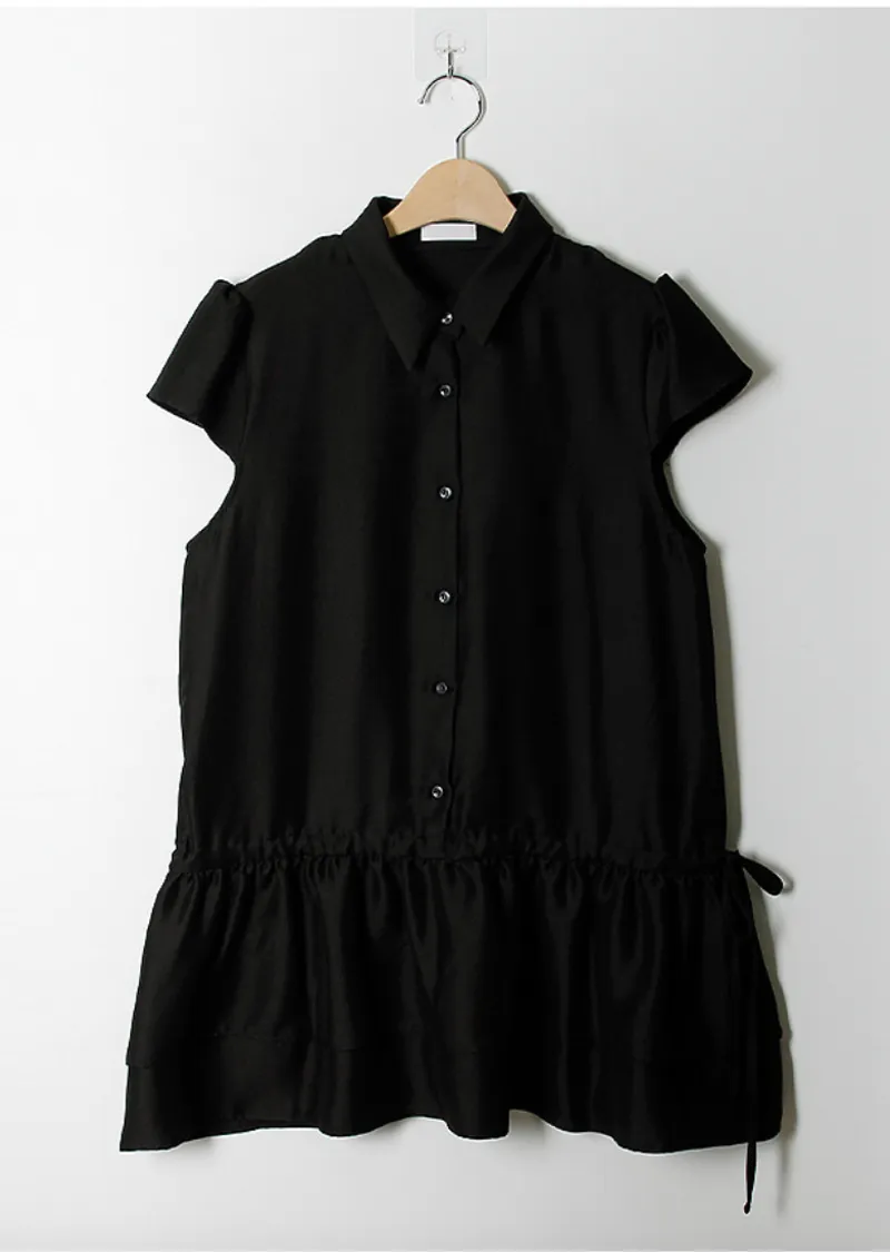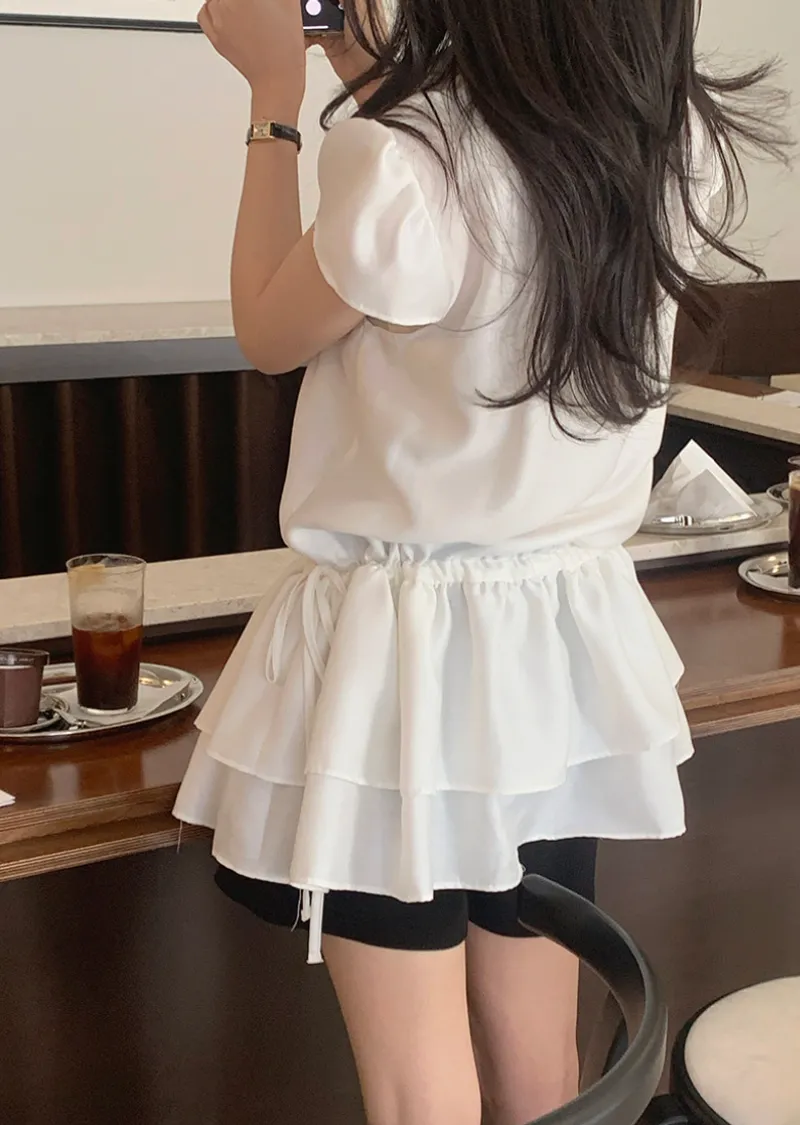 可愛泡泡袖褶皺蓬鬆裙擺腰側綁帶連身裙