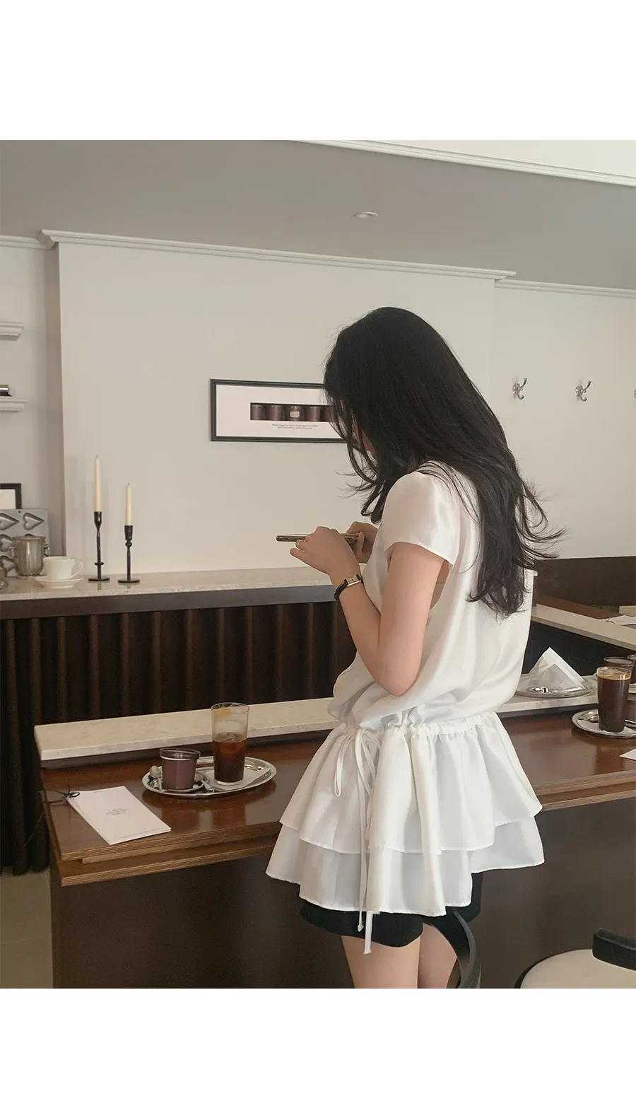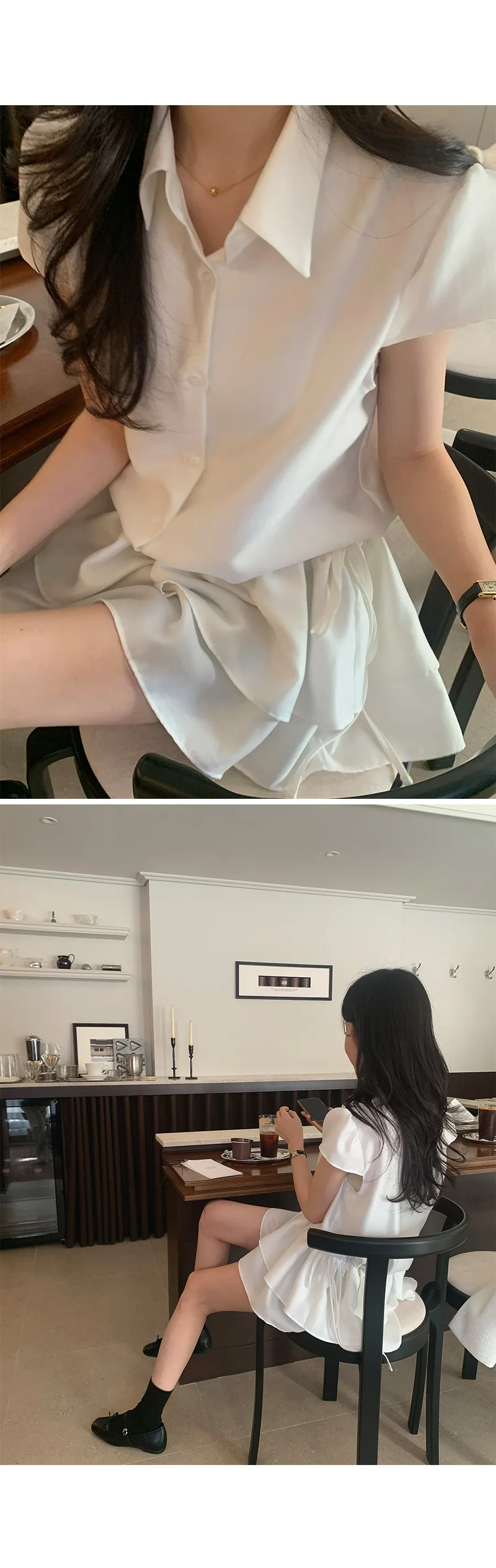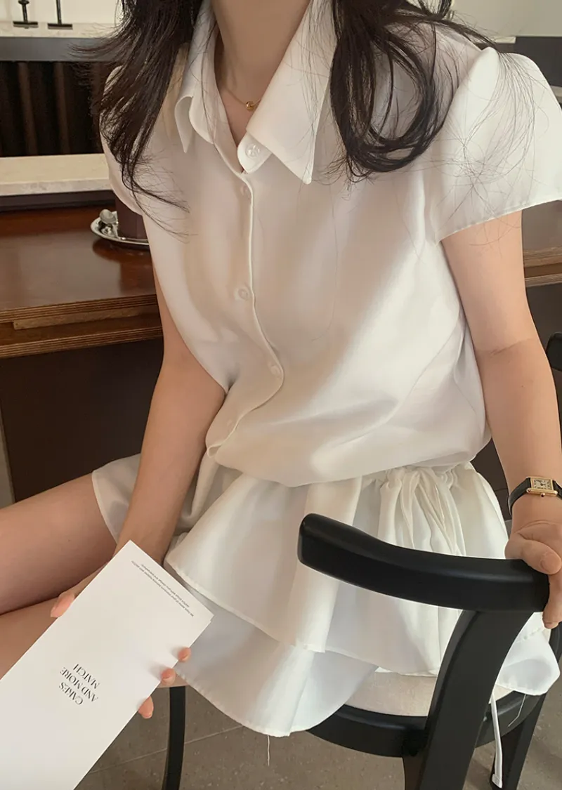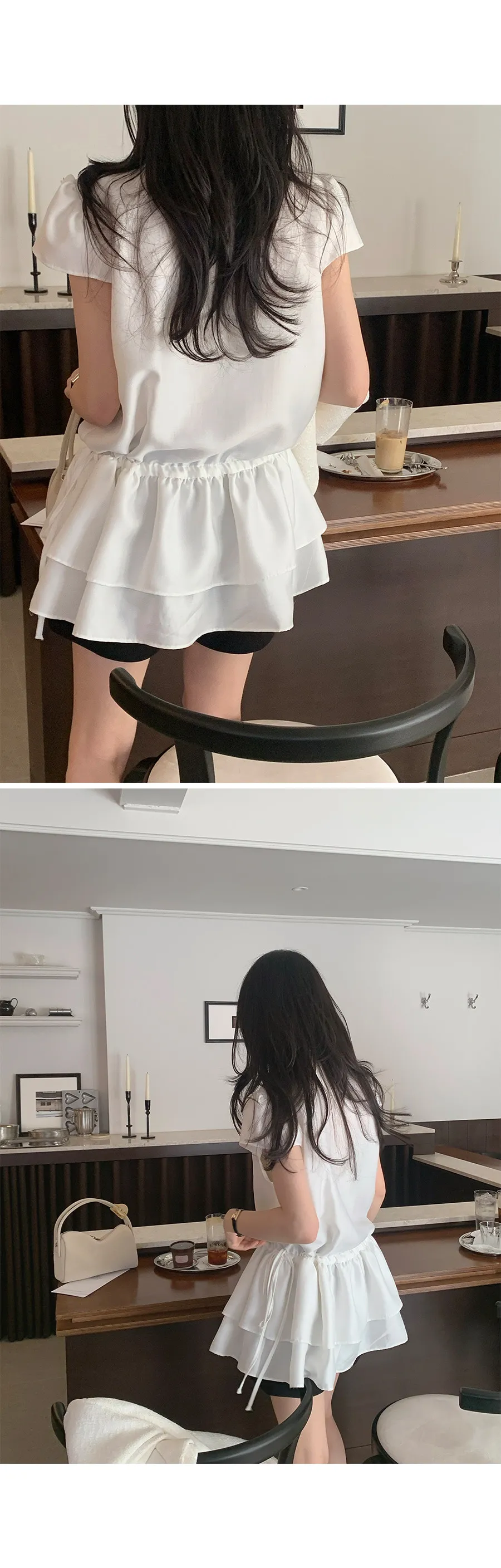 可愛泡泡袖褶皺蓬鬆裙擺腰側綁帶連身裙