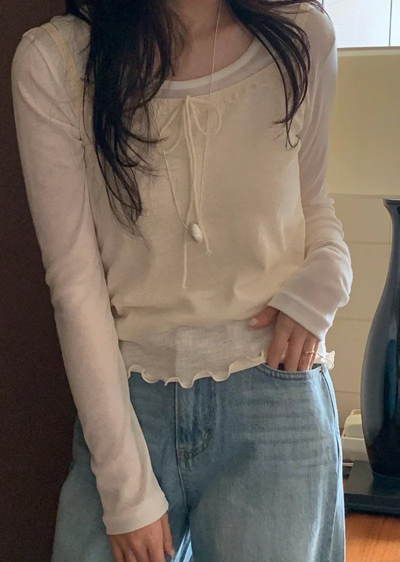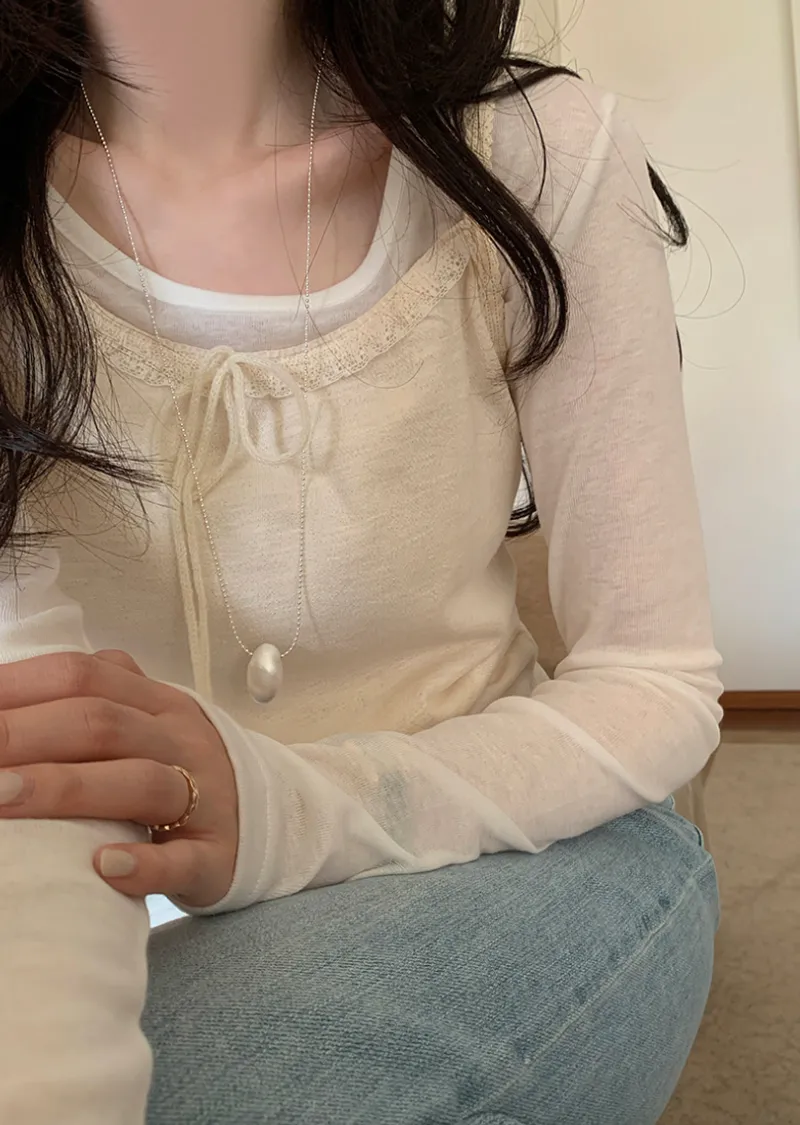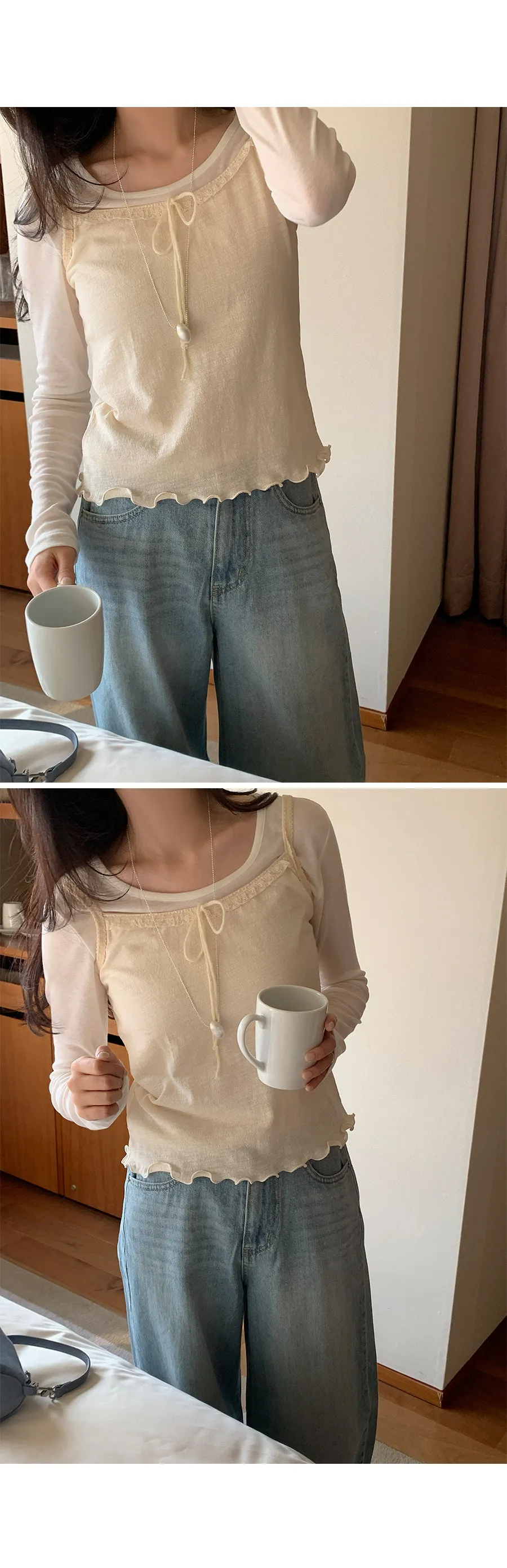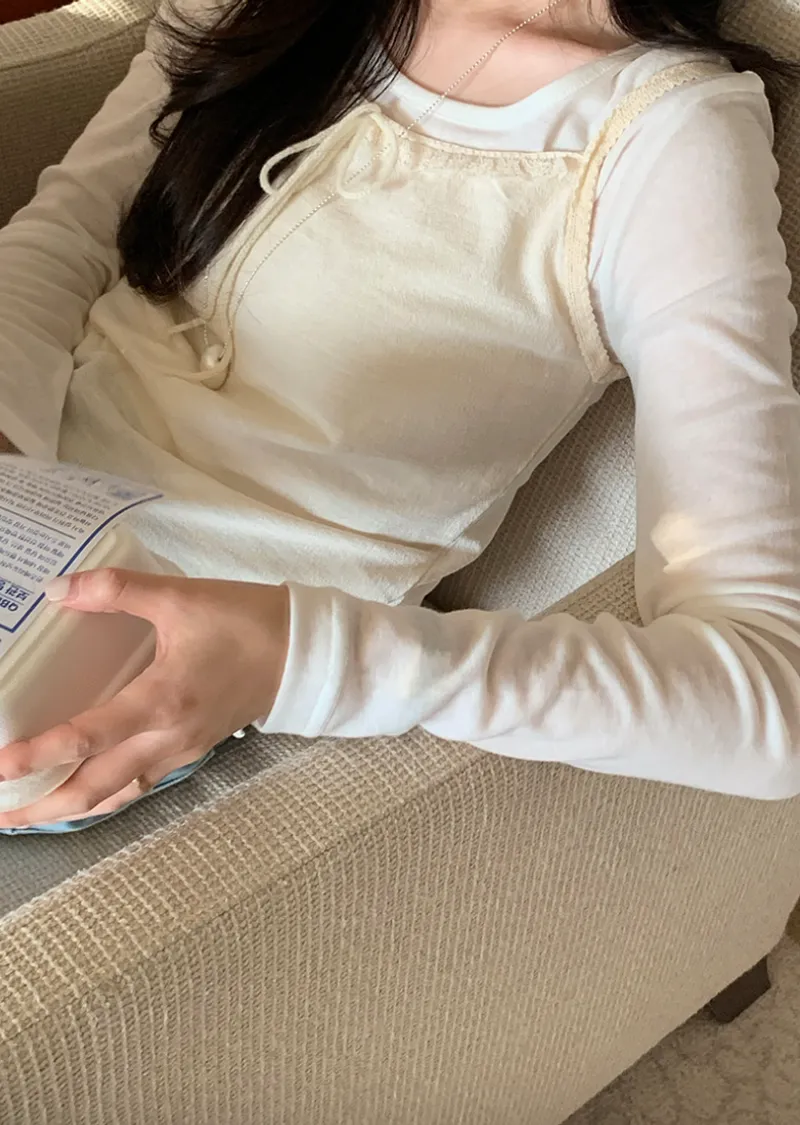 材質:100% 棉。這款無袖上衣充滿女性化細節♡ 在領口和肩帶處飾以蕾絲細節,營造柔美氛圍。搭配各種上衣時,隱約可見的蕾絲線條更添幾分嫵媚。緞帶繫帶和波浪形下擺增添了一絲俏皮感,纖細的肩帶則勾勒出精緻的身形♡夏季單穿非常合適,換季時節,也可以作為內搭,與各種針織衫疊穿。 推薦這款上衣,一件就能打造十足的女性魅力。