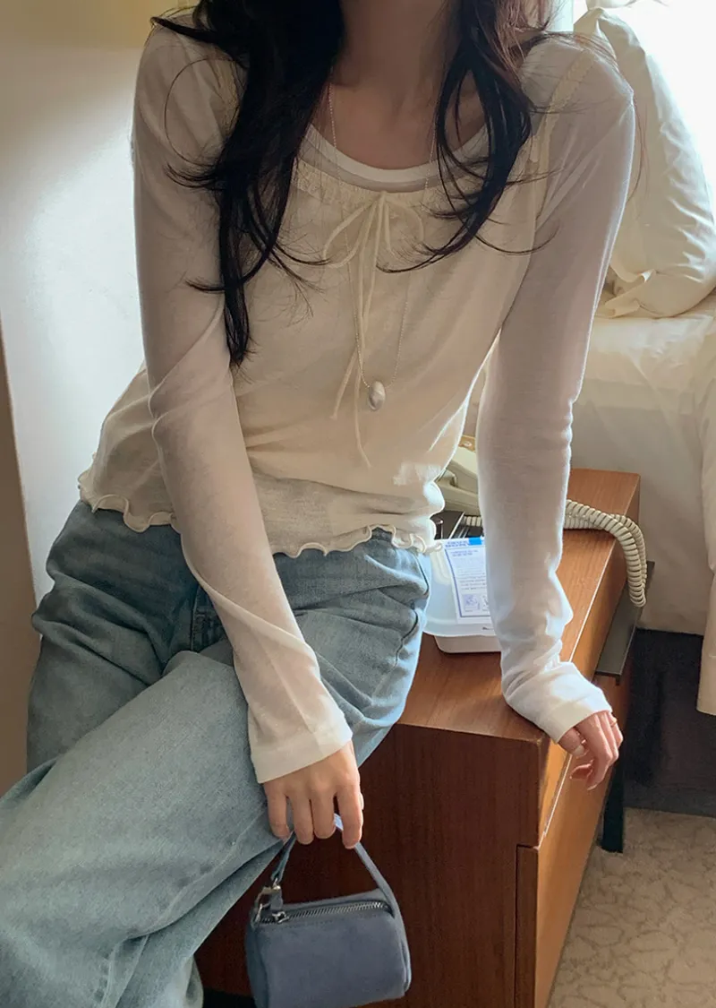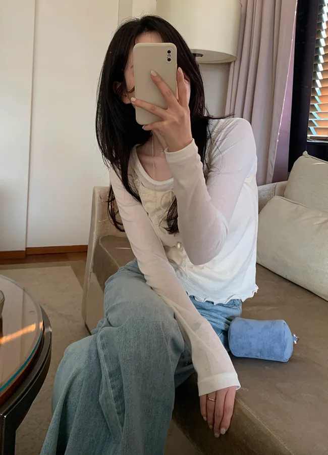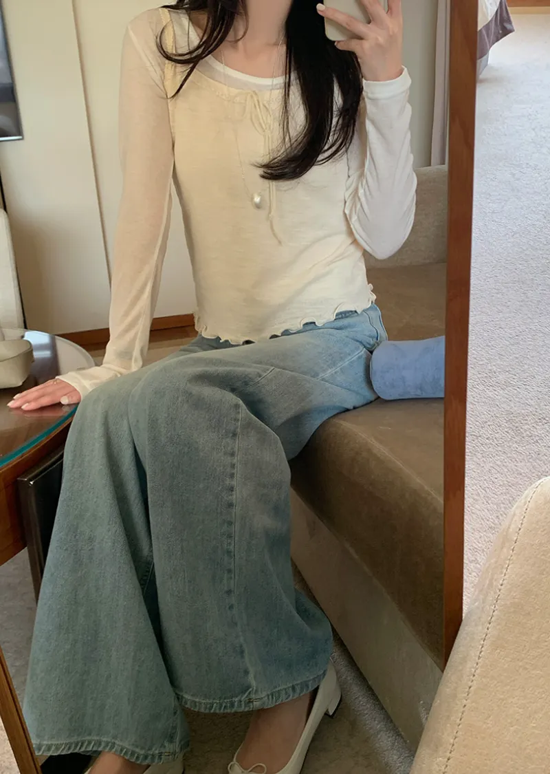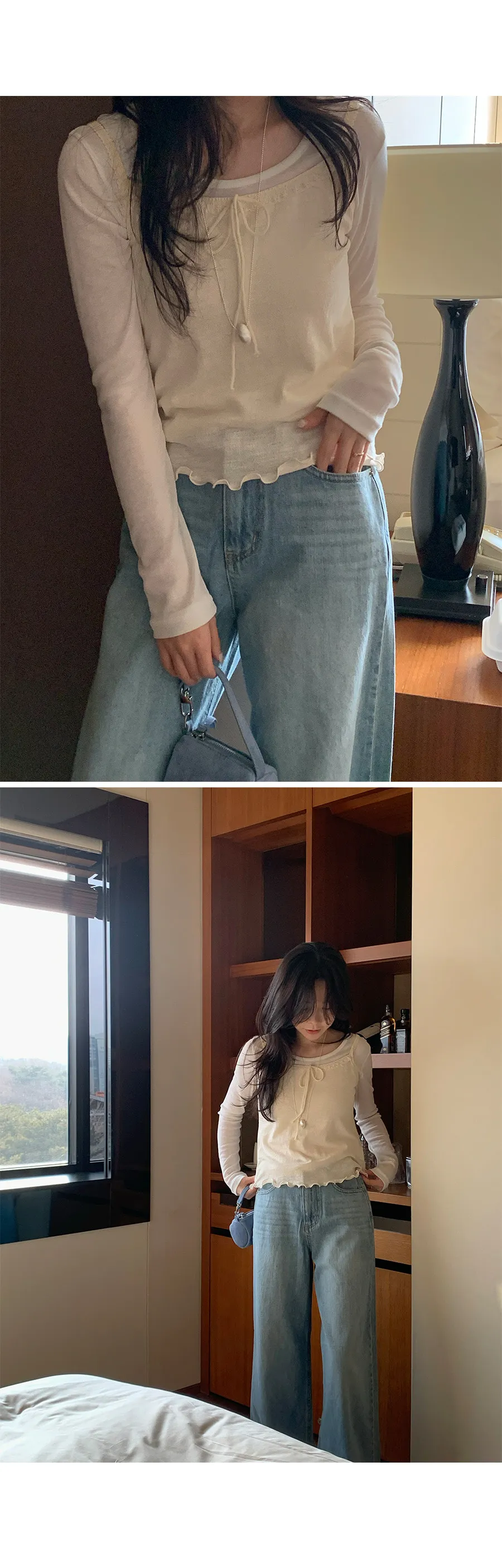 材質:100% 棉。這款無袖上衣充滿女性化細節♡ 在領口和肩帶處飾以蕾絲細節,營造柔美氛圍。搭配各種上衣時,隱約可見的蕾絲線條更添幾分嫵媚。緞帶繫帶和波浪形下擺增添了一絲俏皮感,纖細的肩帶則勾勒出精緻的身形♡夏季單穿非常合適,換季時節,也可以作為內搭,與各種針織衫疊穿。 推薦這款上衣,一件就能打造十足的女性魅力。