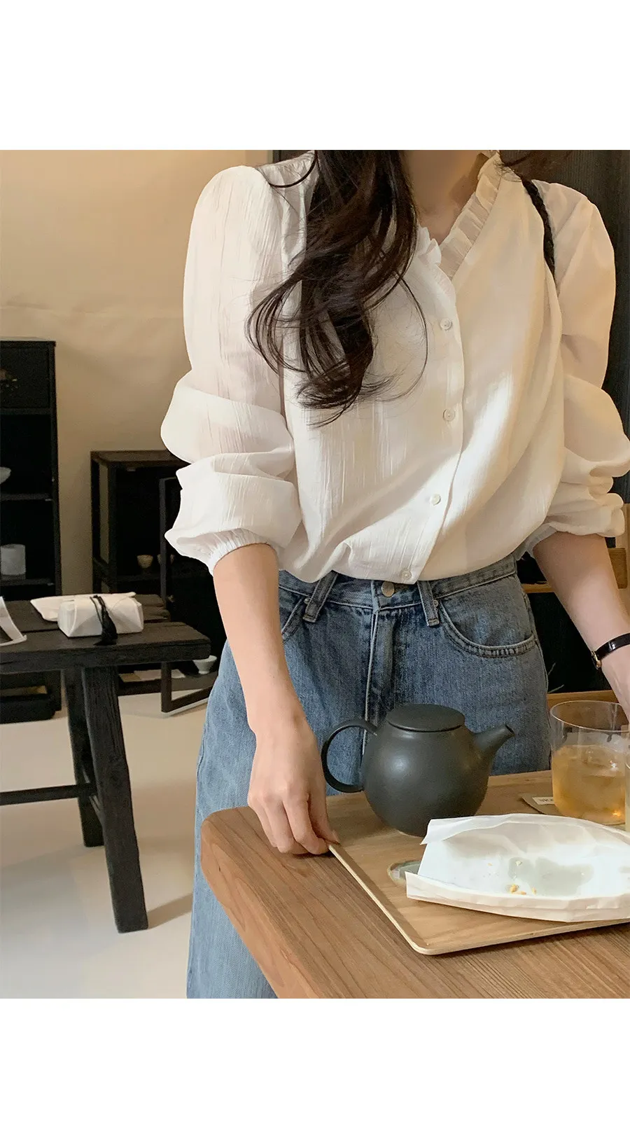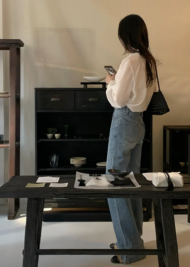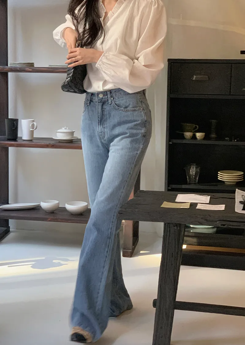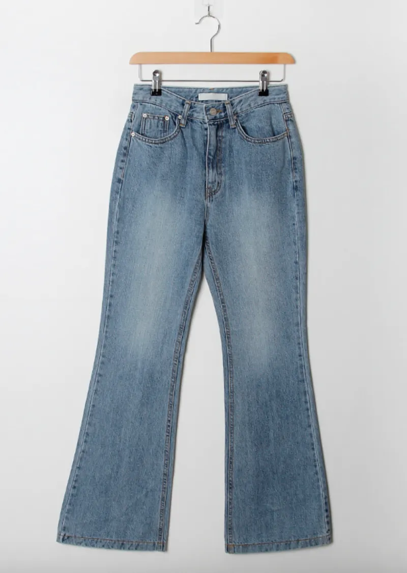 材質:100% 棉。這款能打造纖細腿型的牛仔褲!這款牛仔褲採用靴型褲型設計,從膝蓋處自然展開,打造纖細修長的腿部線條 。大腿中間略帶水洗效果,更添顯瘦效果, 而中藍色調則使其成為春夏日常穿著的理想之選。 它能與任何上衣完美搭配, 輕鬆打造百搭造型。
