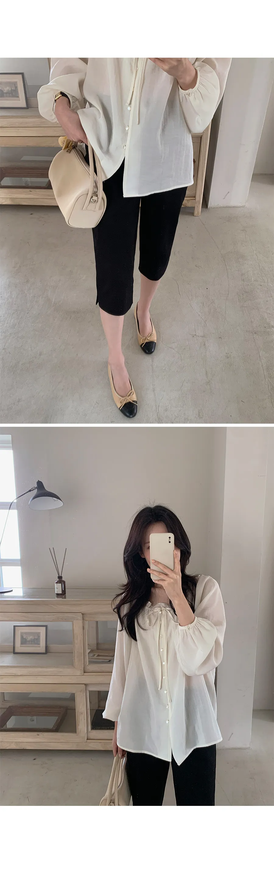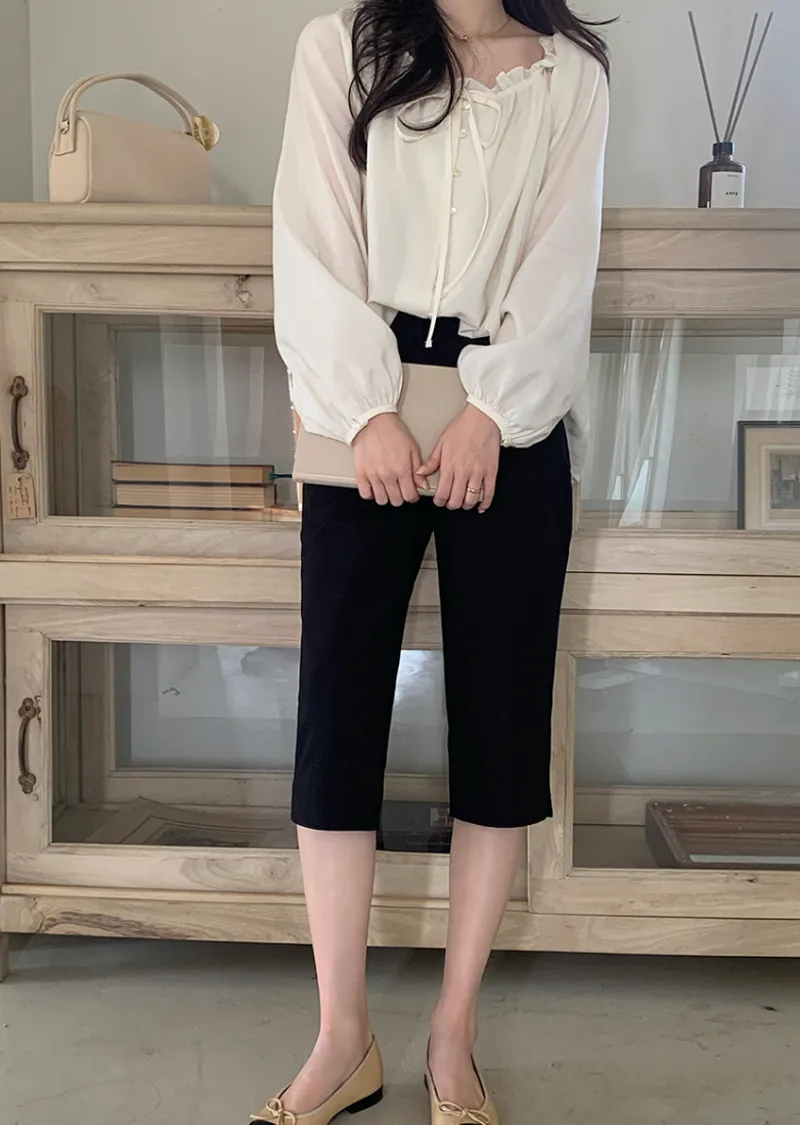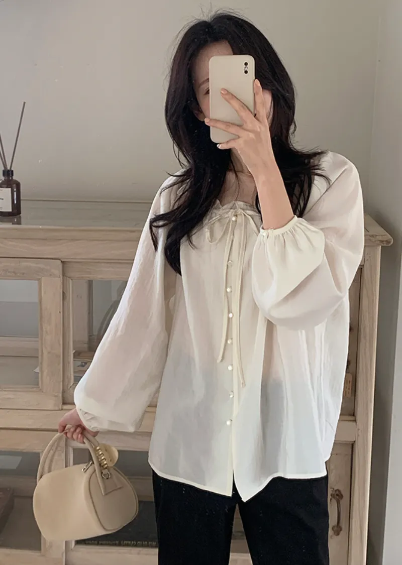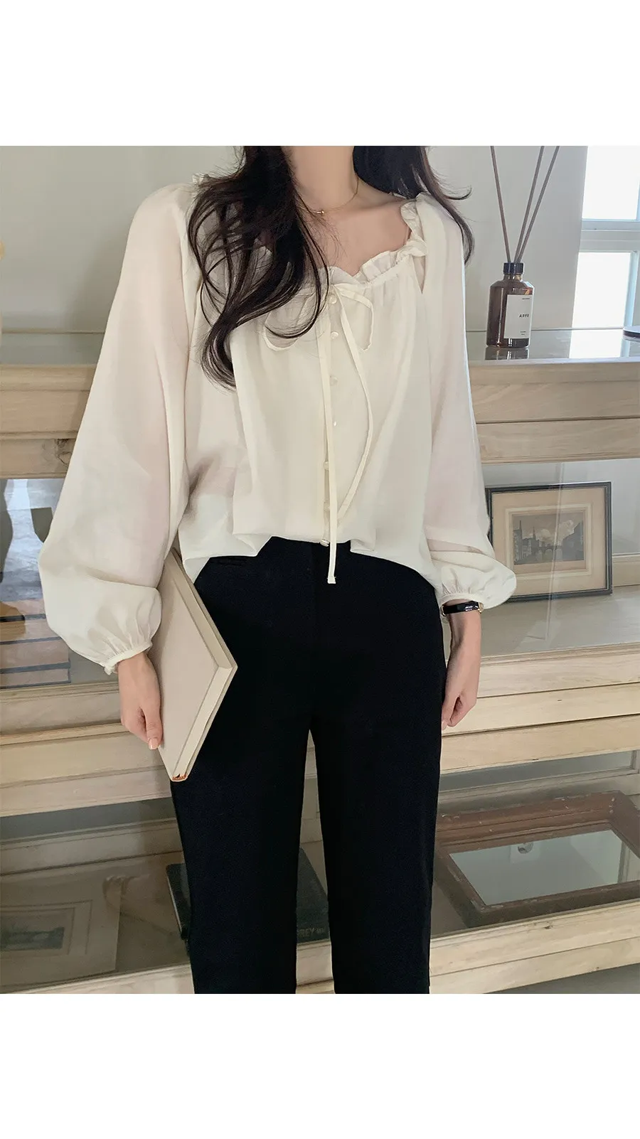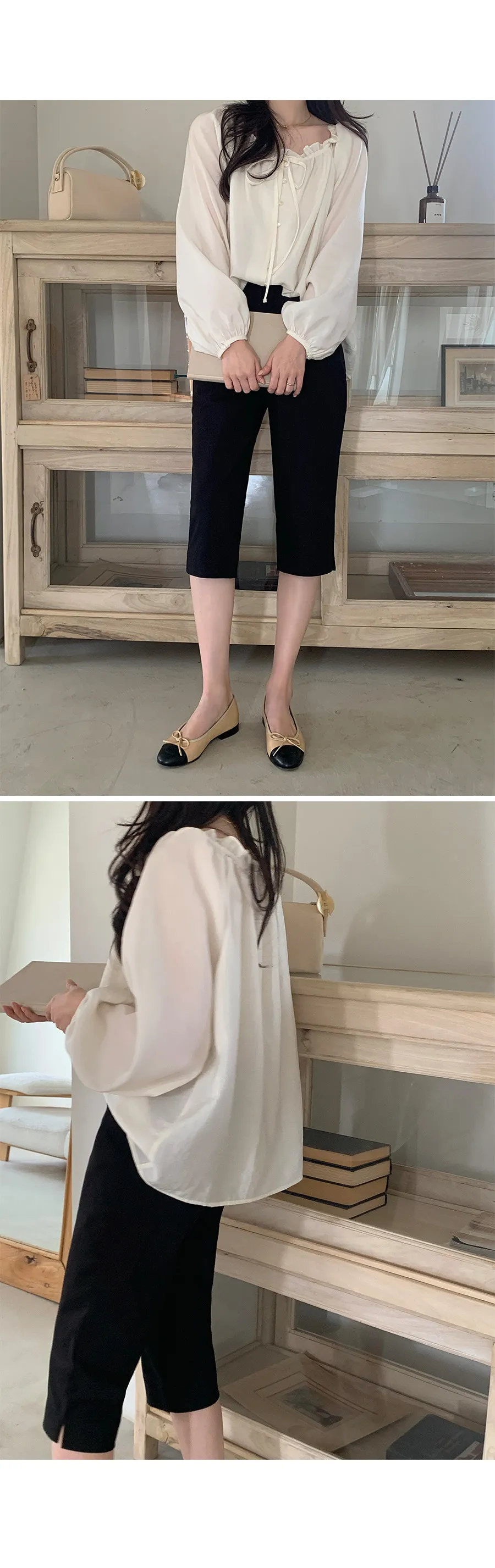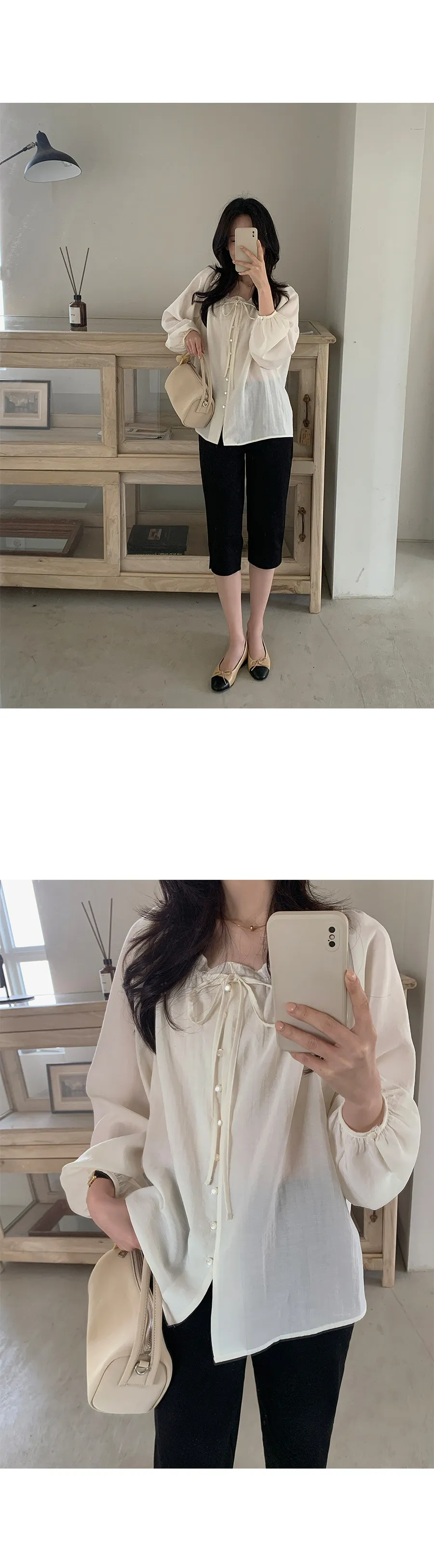 柔美氣質領口摺邊綁帶兩穿可露肩排扣上衣