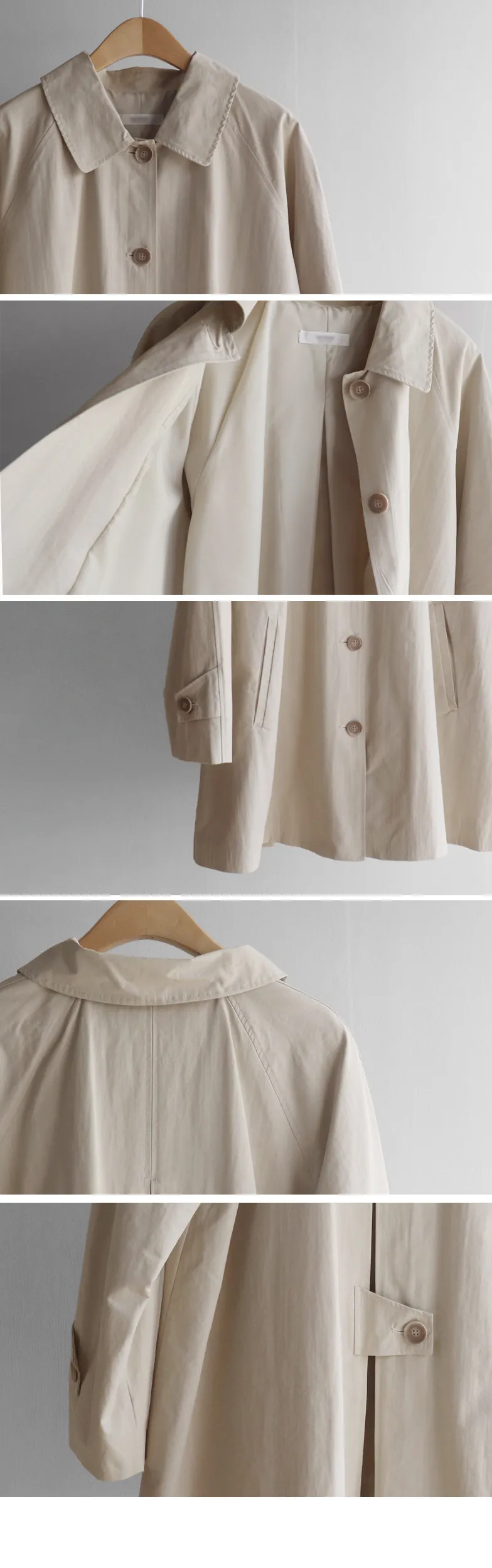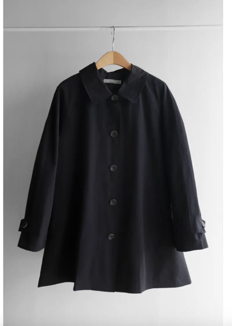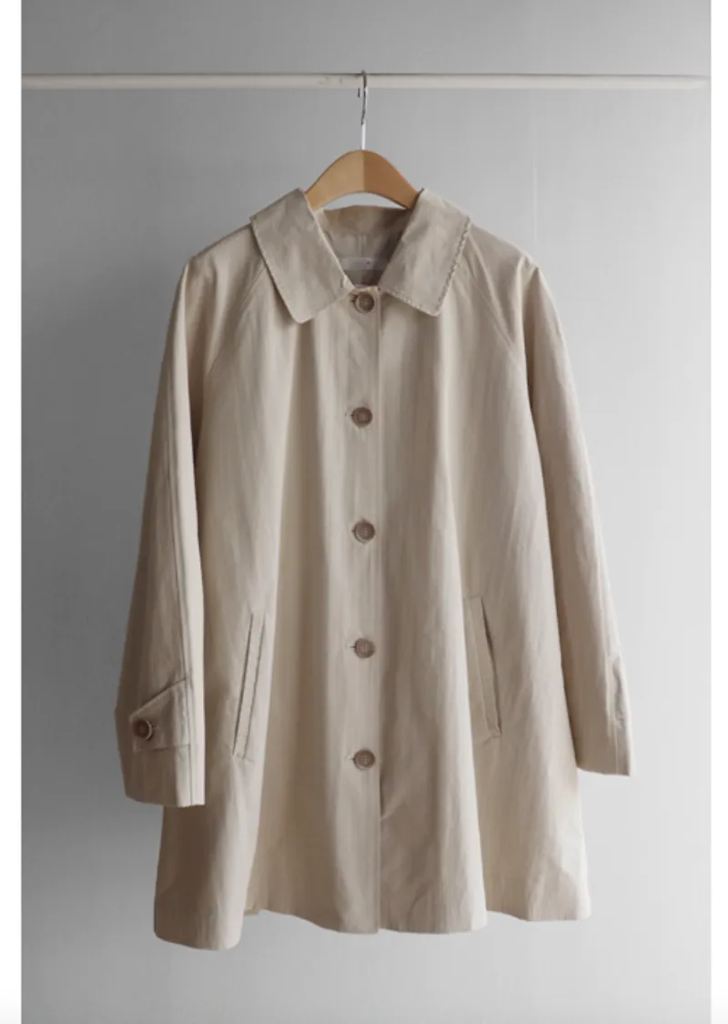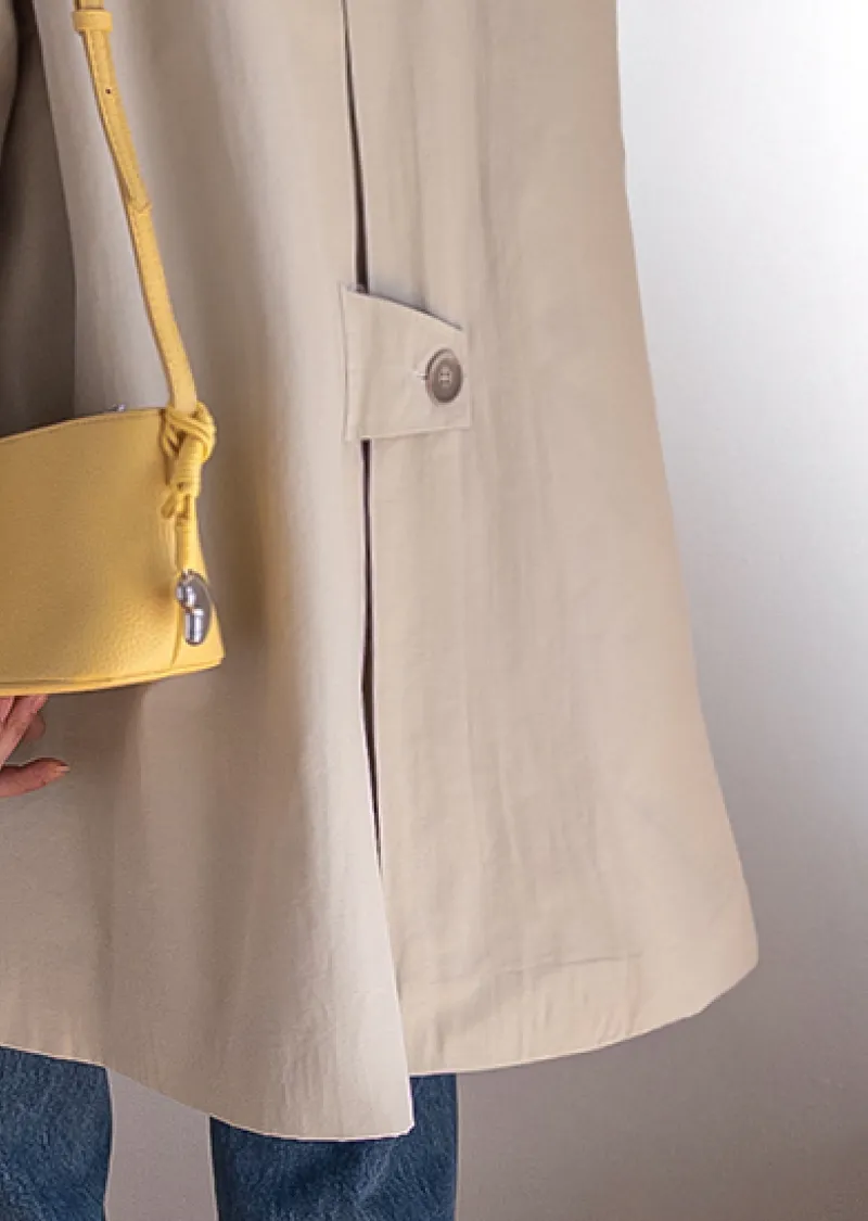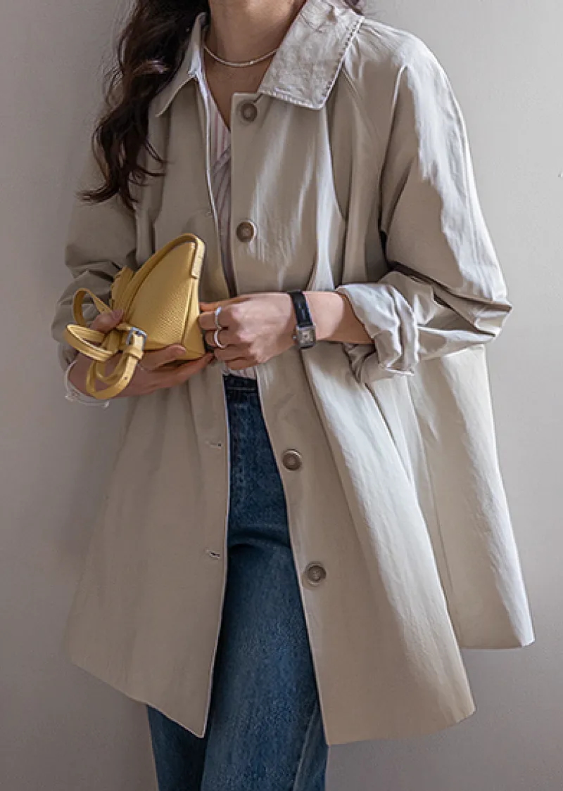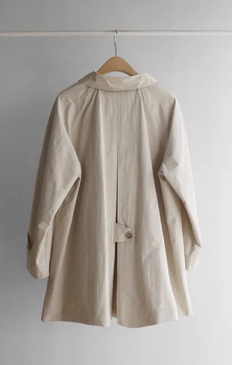 柔和細膩輪廓連肩袖A字廓形後側褶襉風衣外套