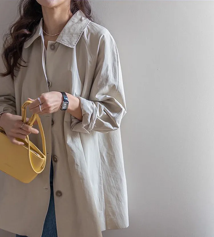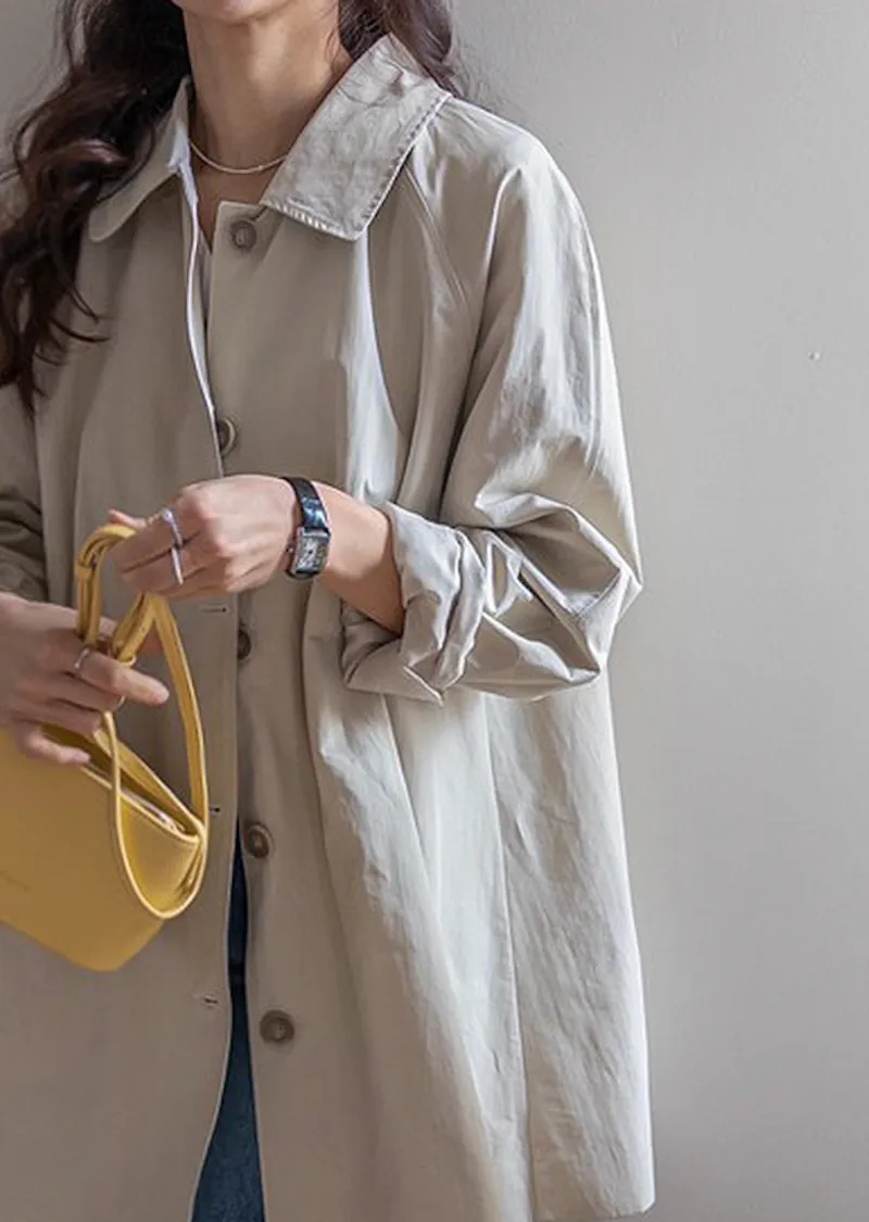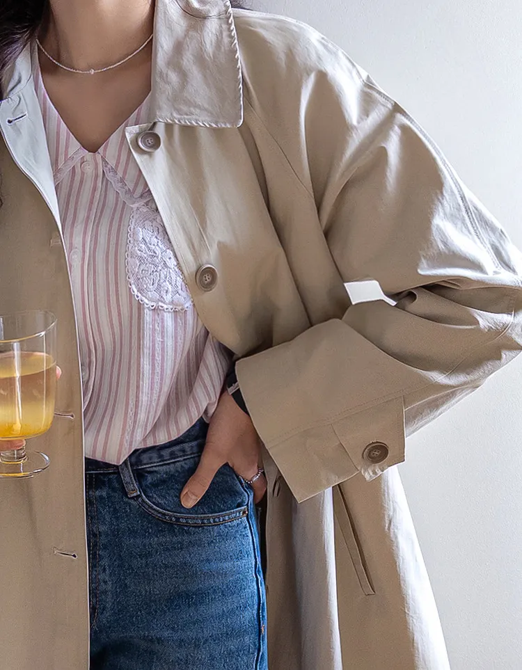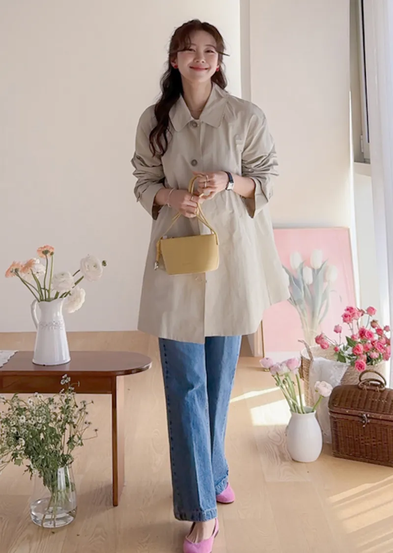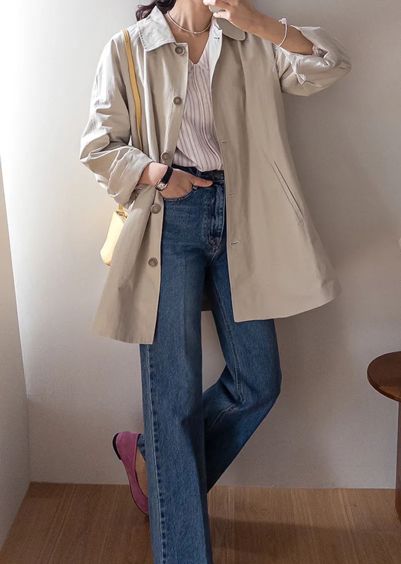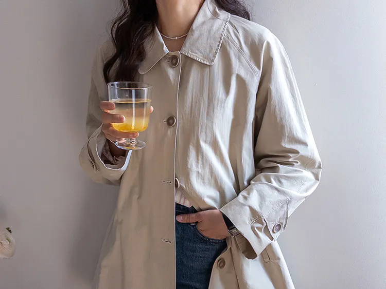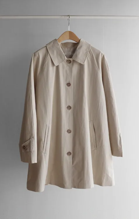 柔和細膩輪廓連肩袖A字廓形後側褶襉風衣外套