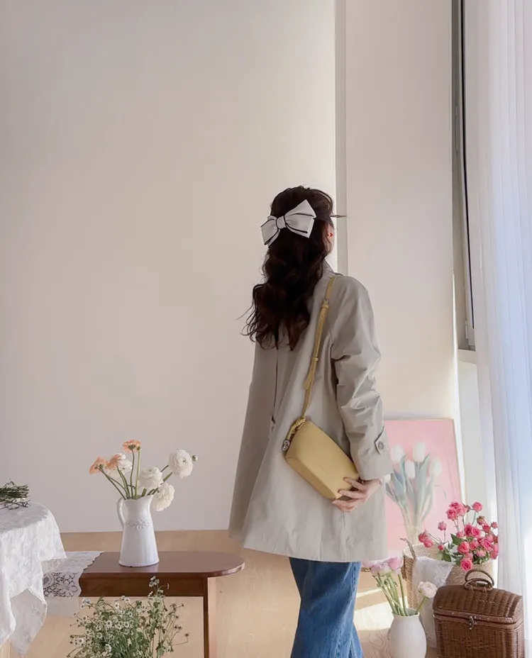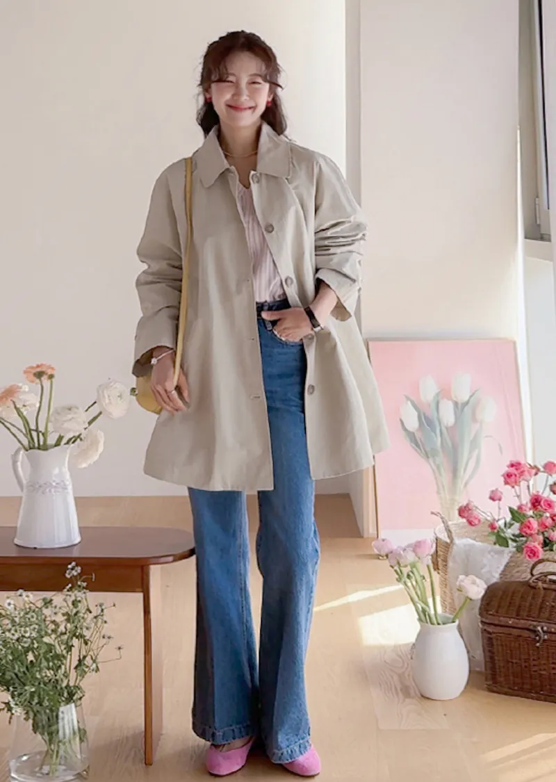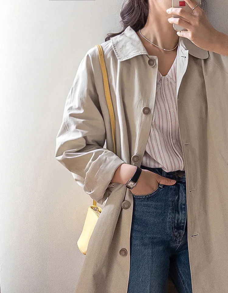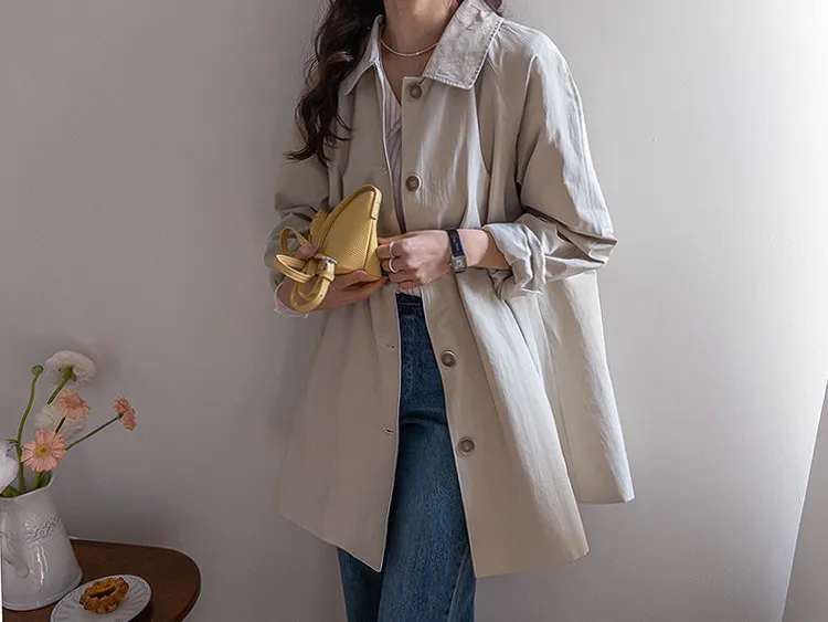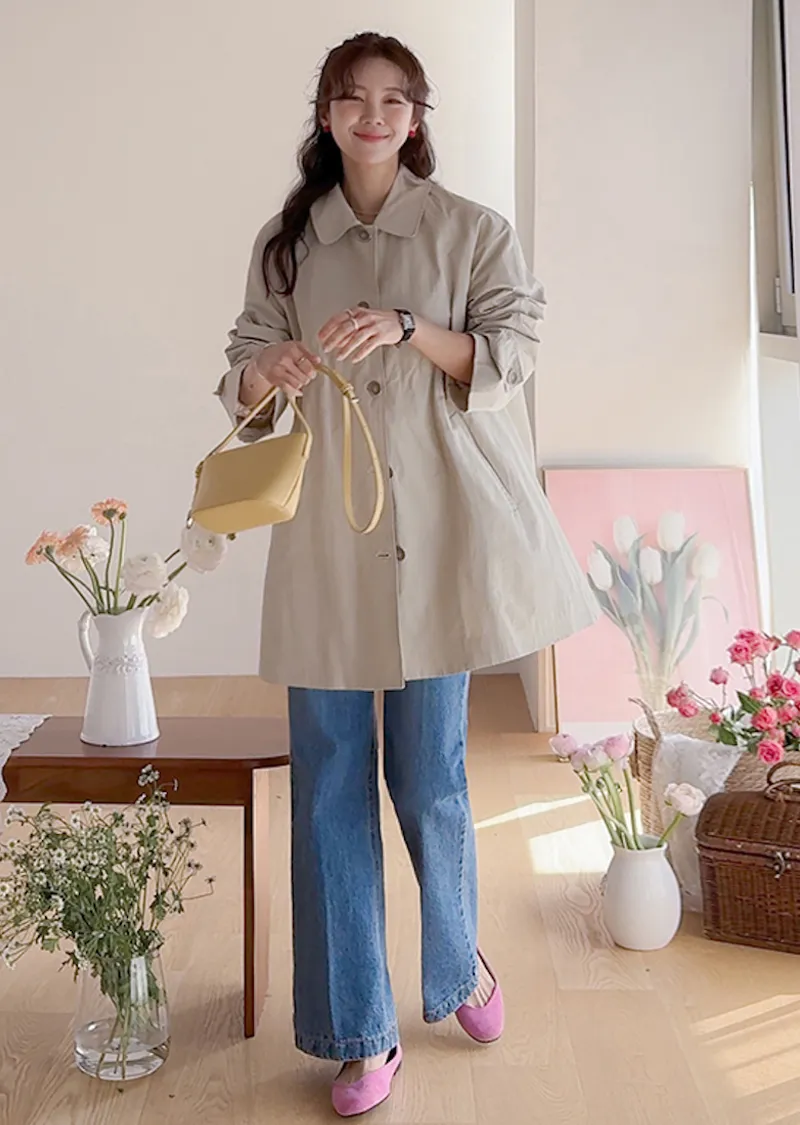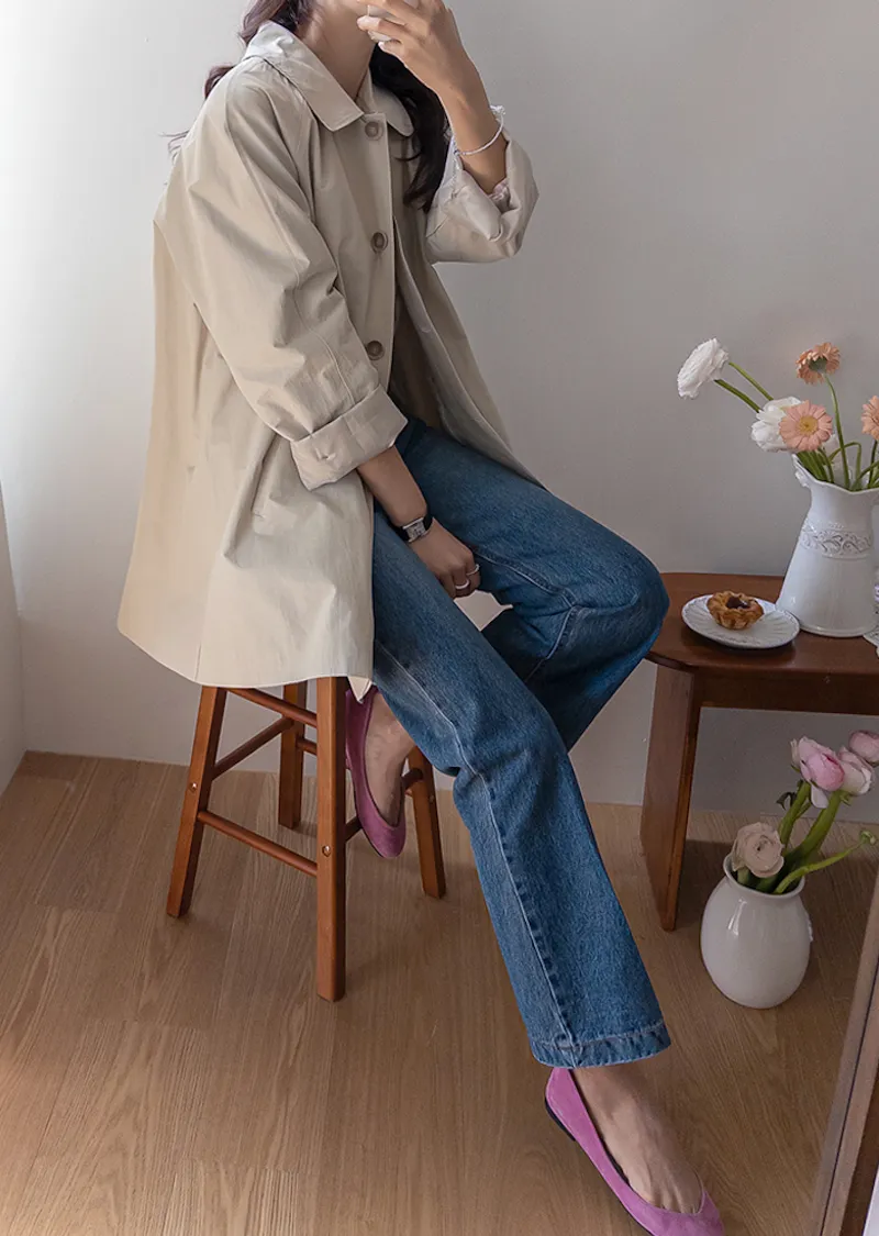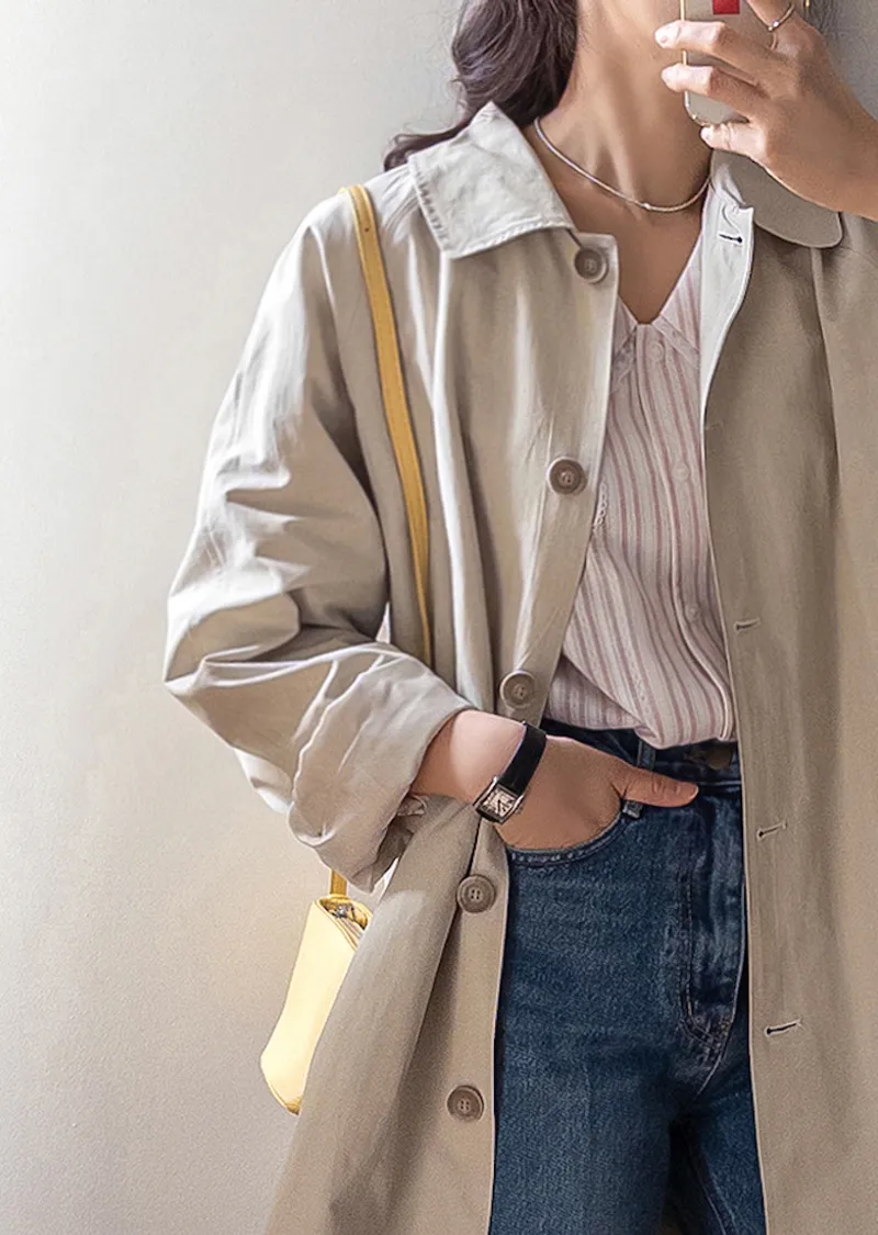 柔和細膩輪廓連肩袖A字廓形後側褶襉風衣外套