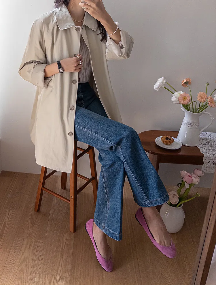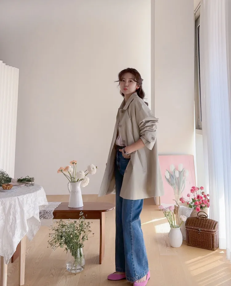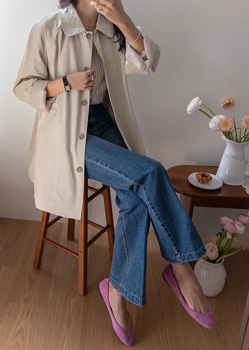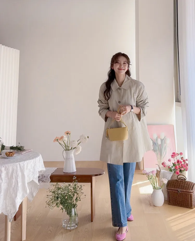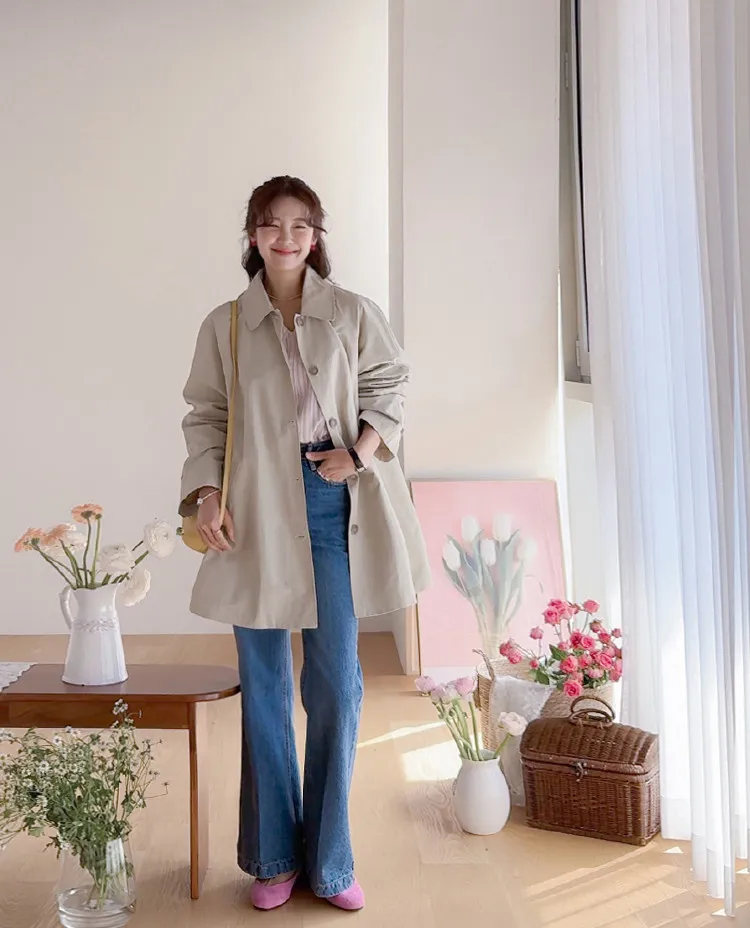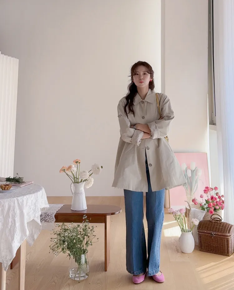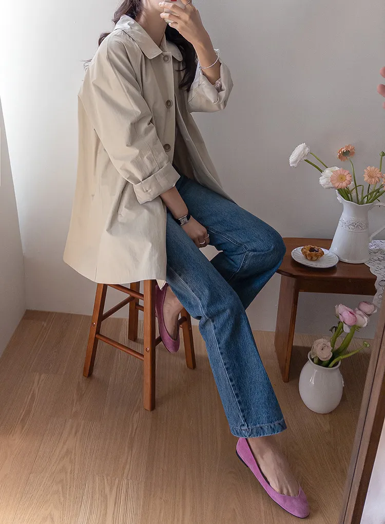 柔和細膩輪廓連肩袖A字廓形後側褶襉風衣外套