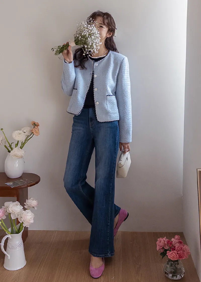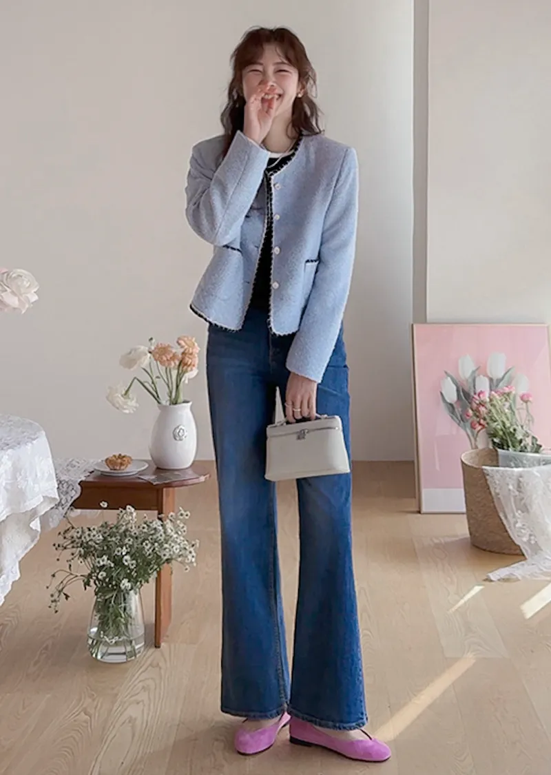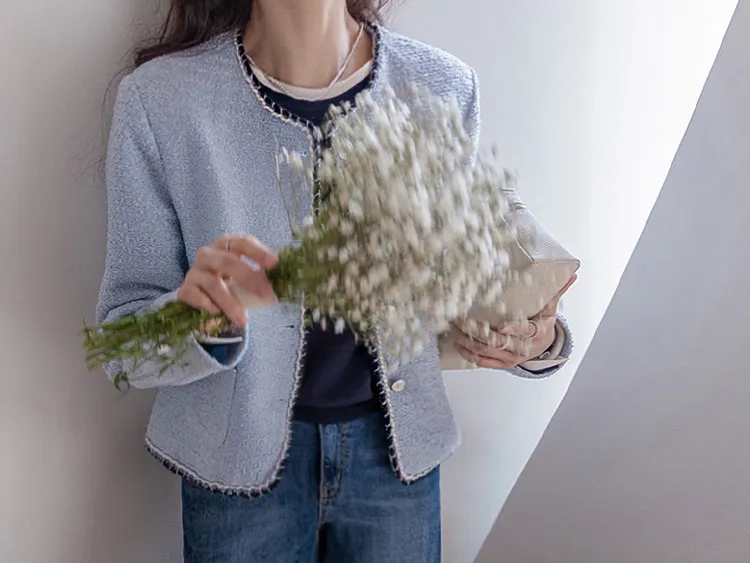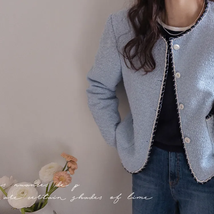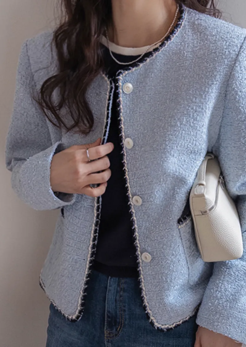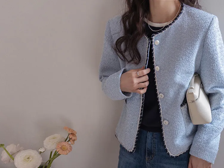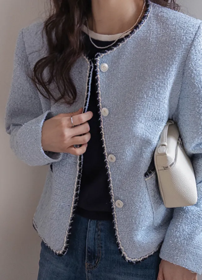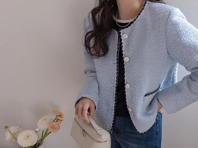 簡潔精緻配色邊修身剪裁花呢外套