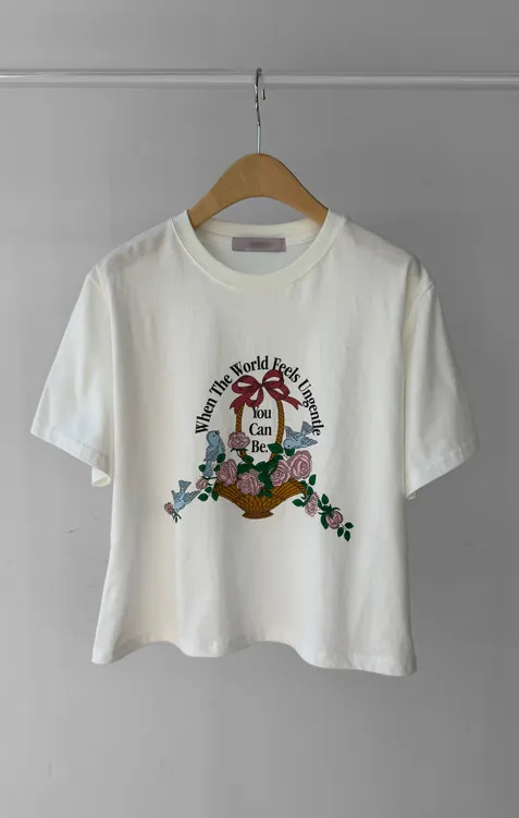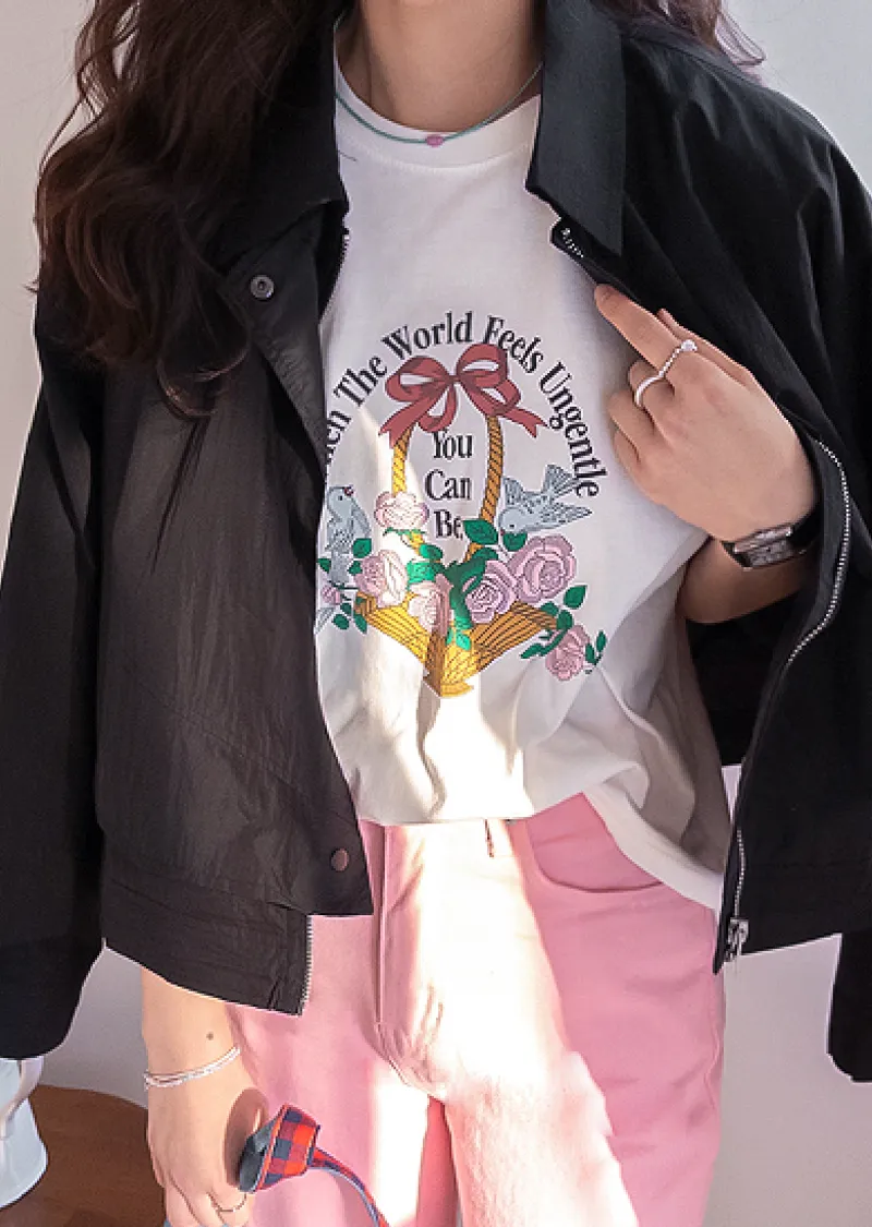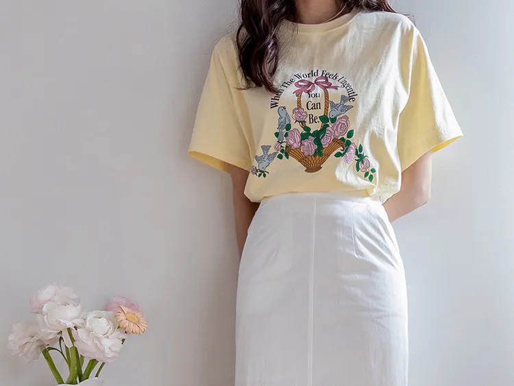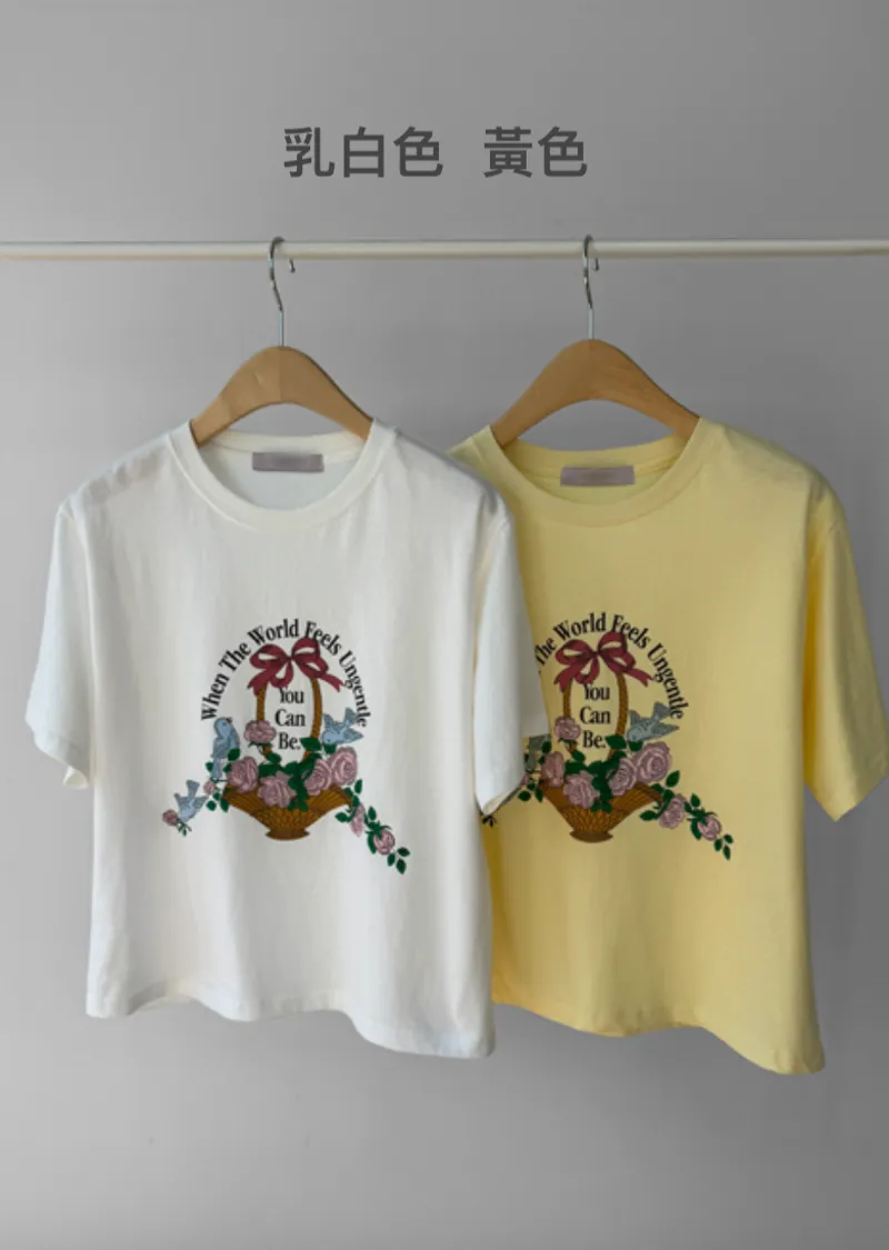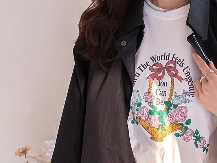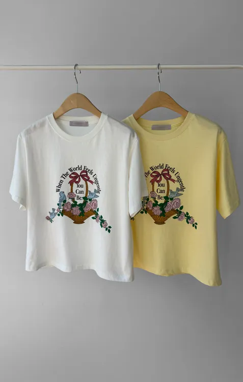 【精美花籃印花】【基本版型,日常百搭】【色彩明亮但不張揚】【一件本身就很出彩的上衣】