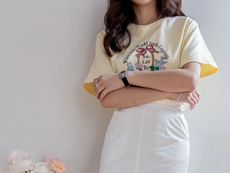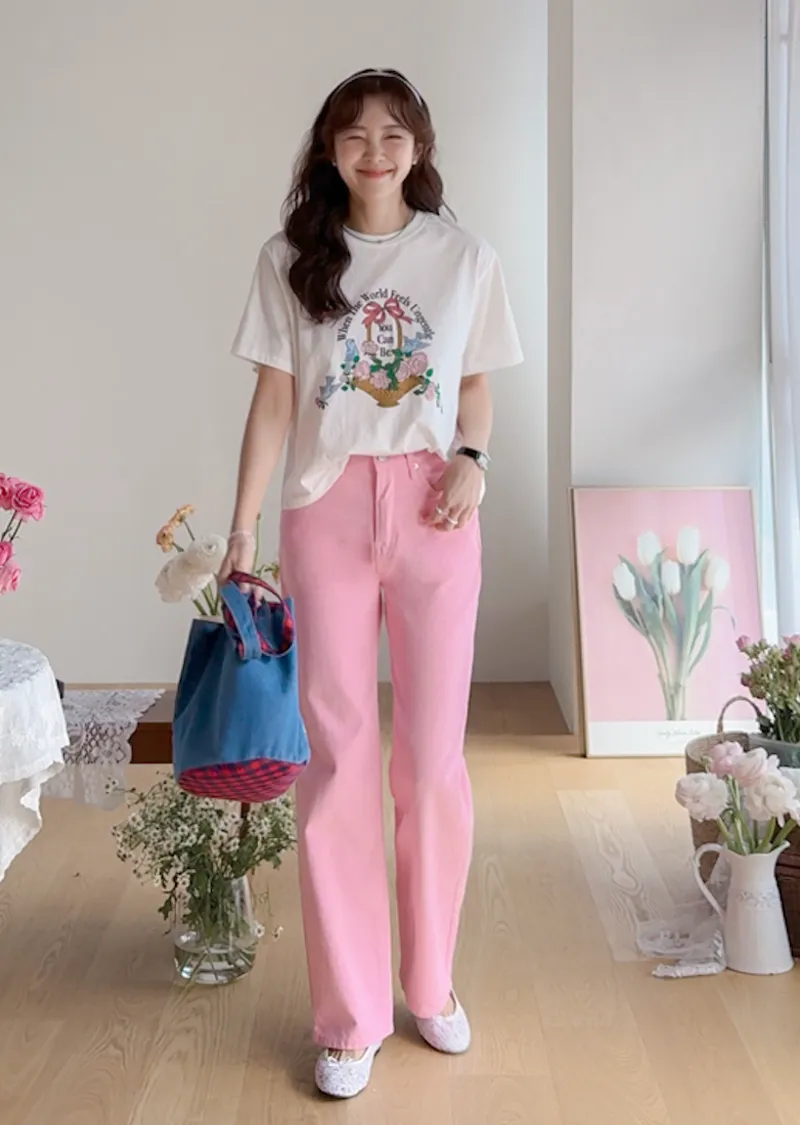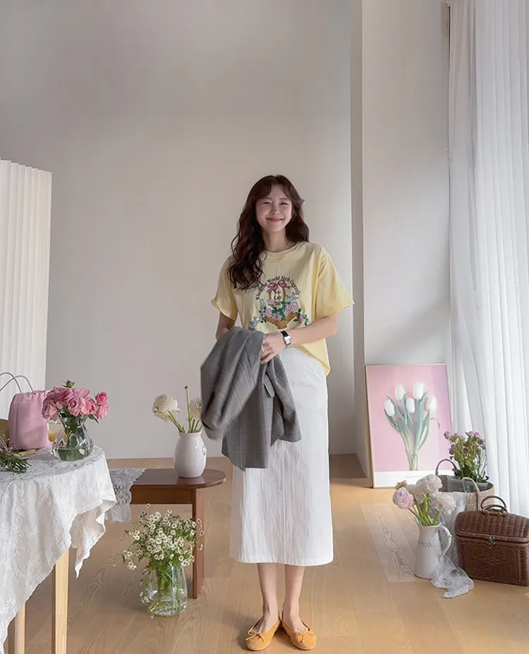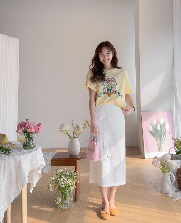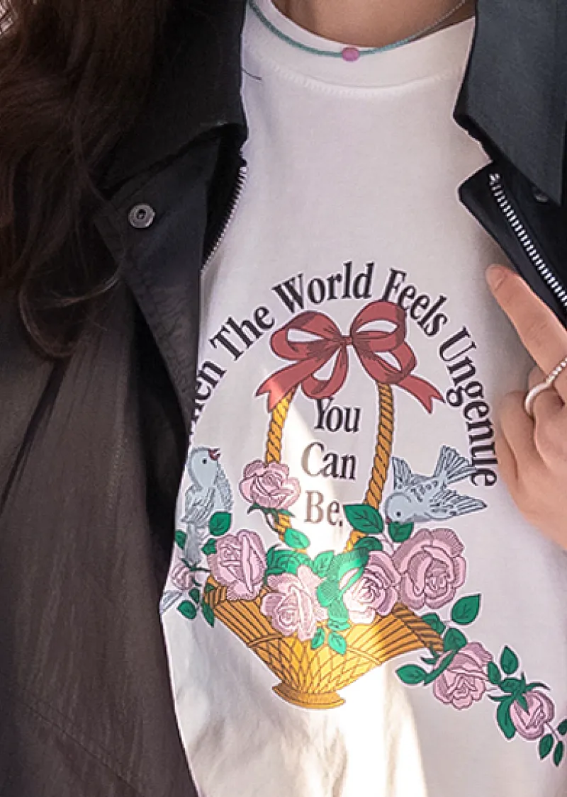 【精美花籃印花】【基本版型,日常百搭】【色彩明亮但不張揚】【一件本身就很出彩的上衣】
