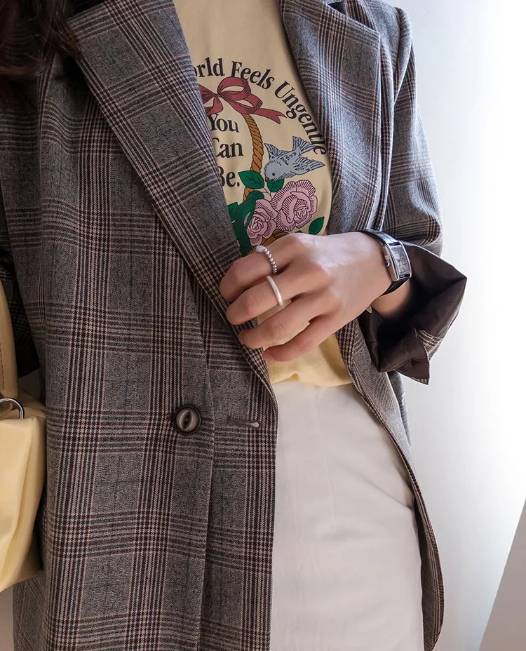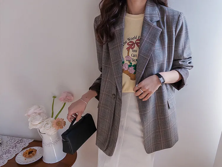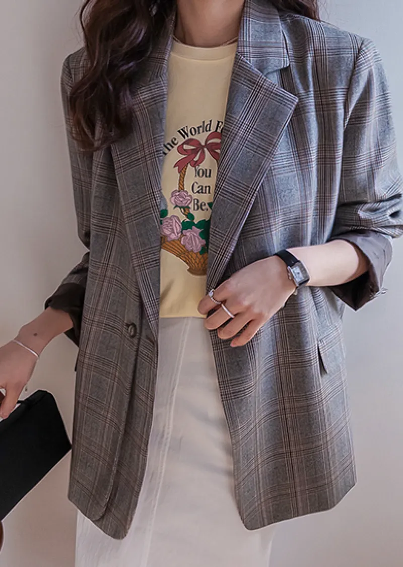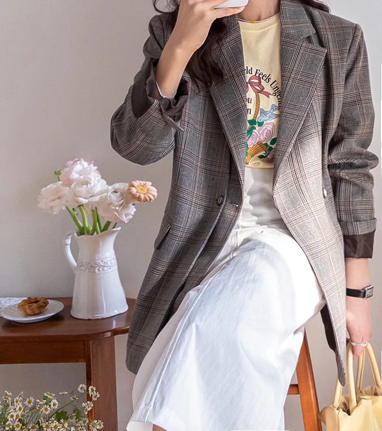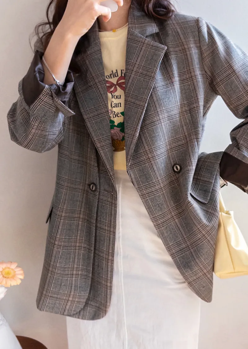 精緻優雅氛圍獨特剪裁格紋雙扣外套