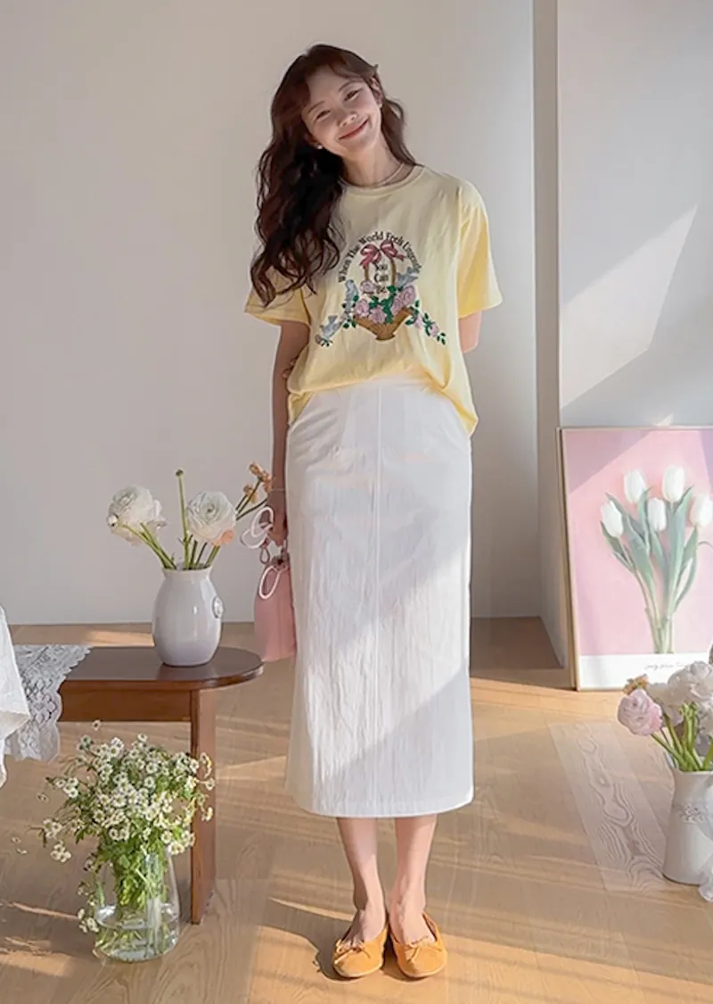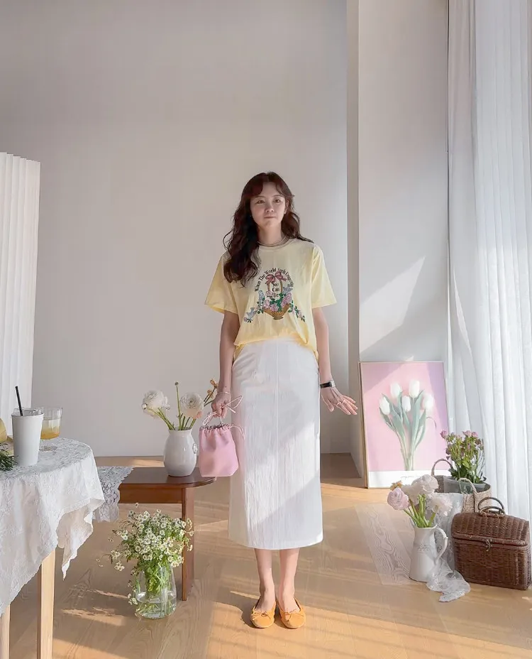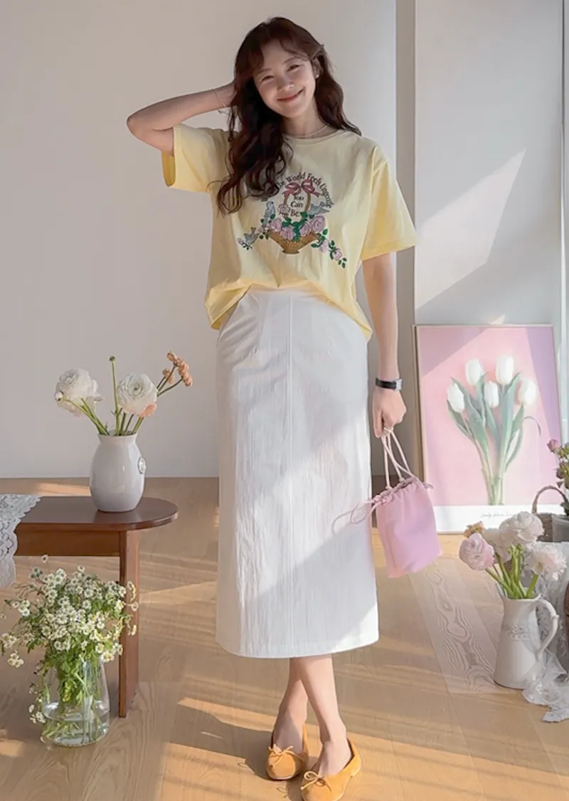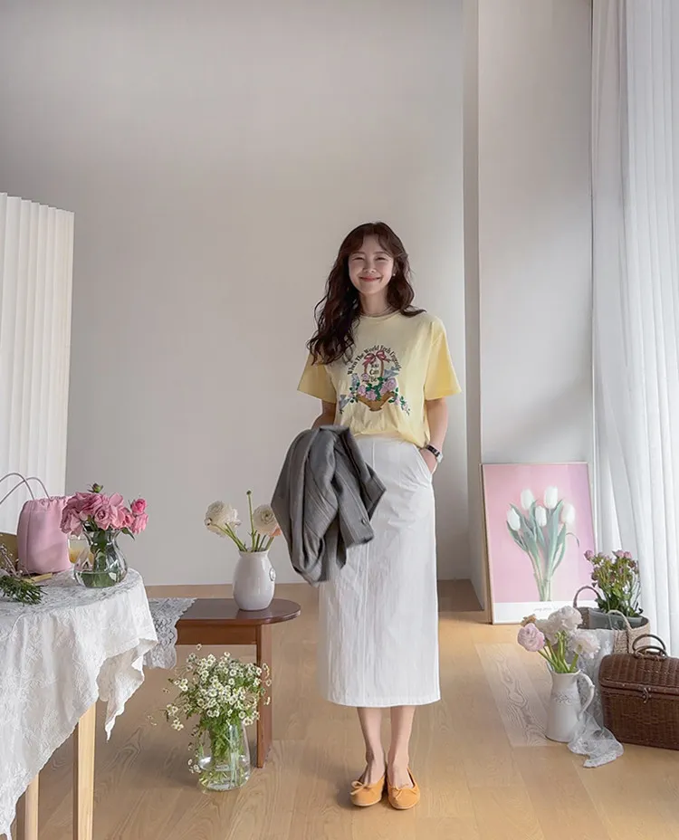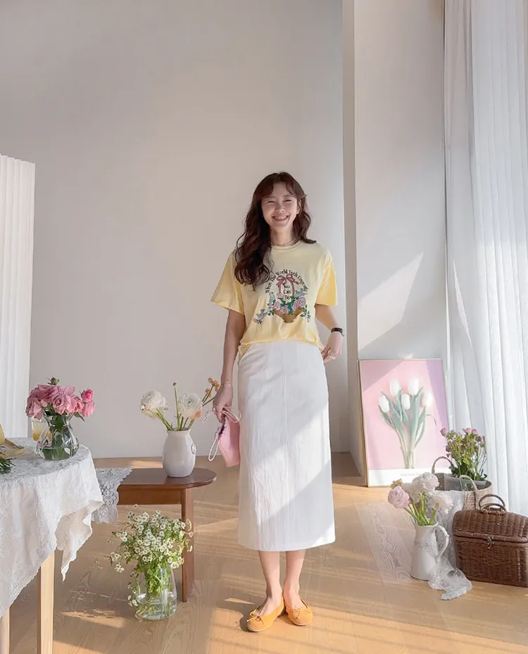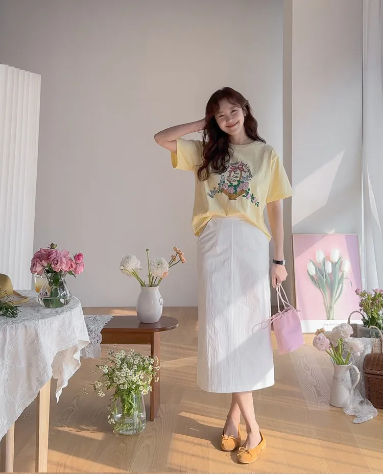 春日氣息精緻色彩H剪裁後開衩中長裙