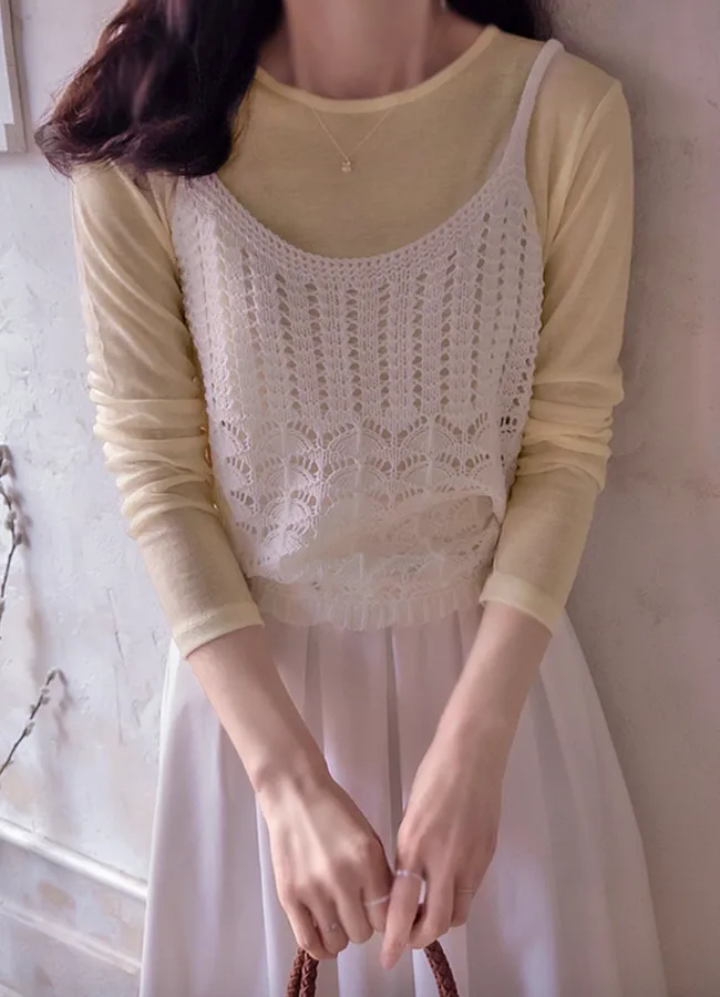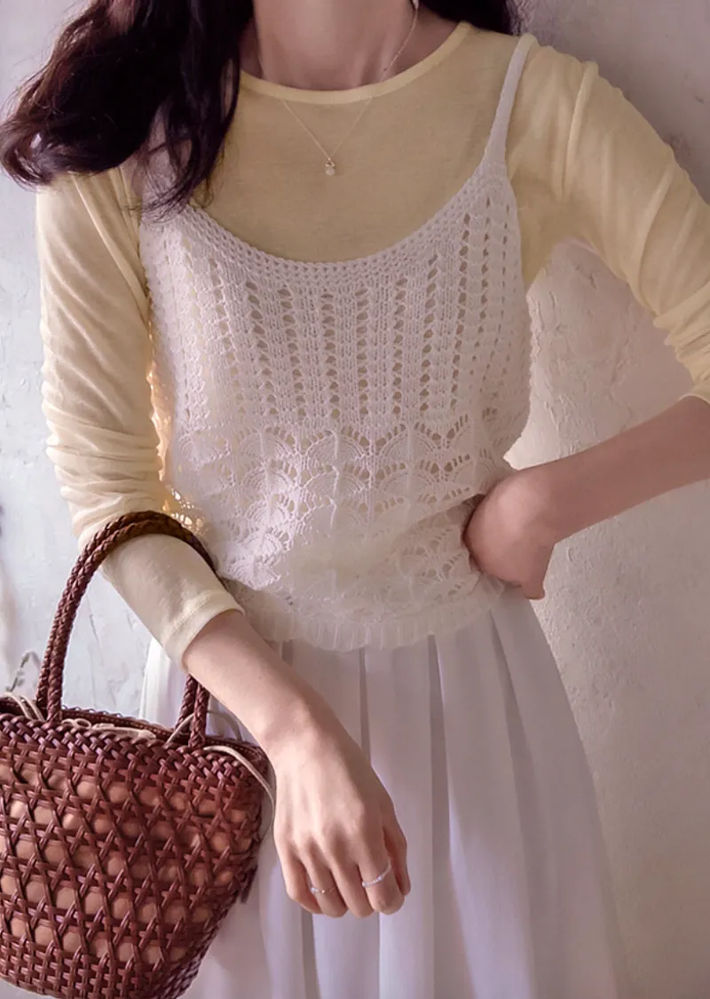 漂亮鏤空線條織紋精美波浪下擺穿搭背心