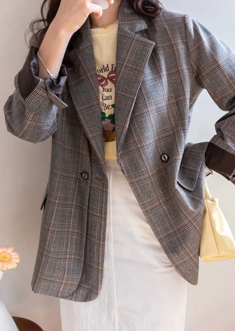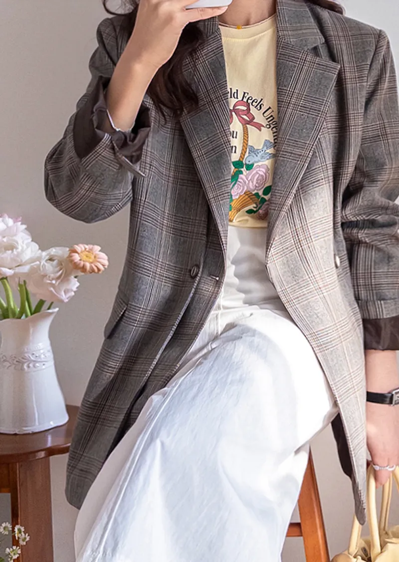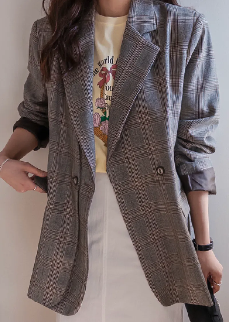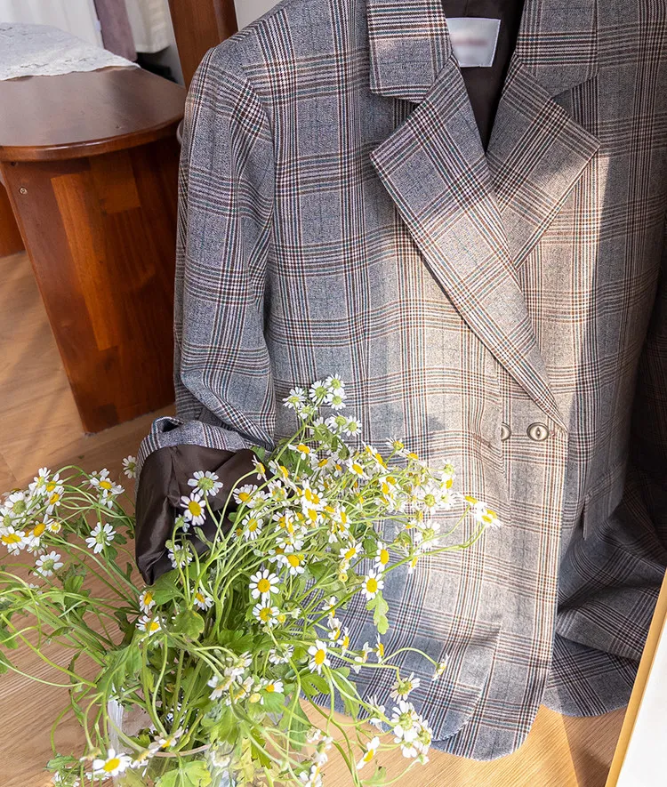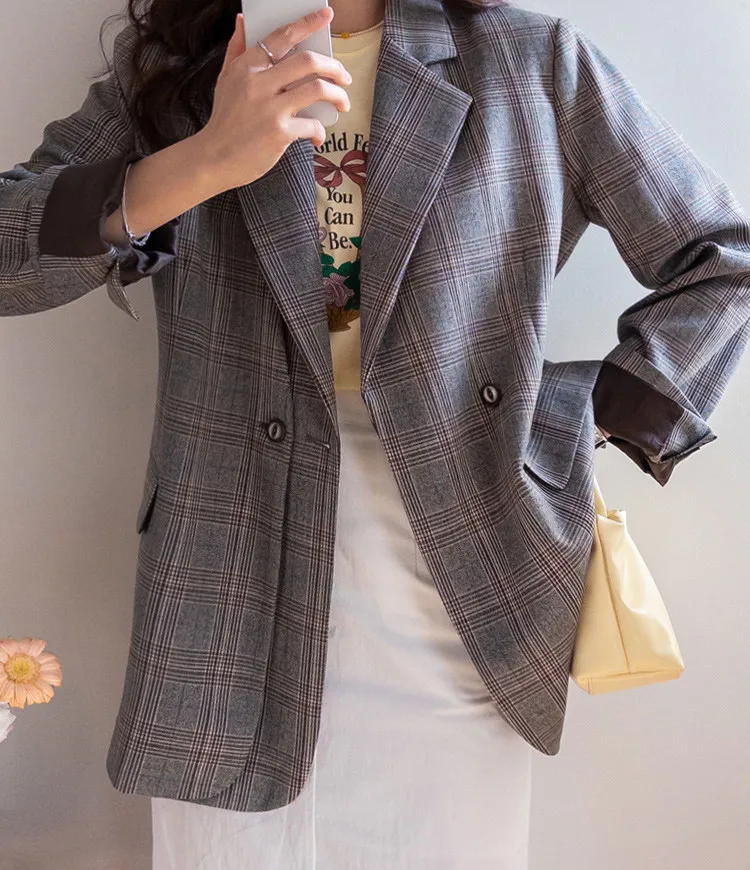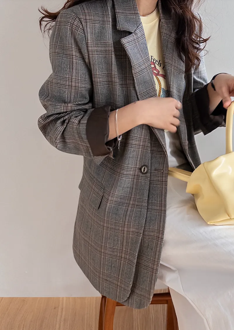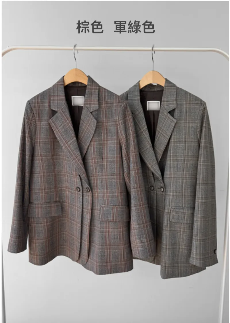 【經典格紋圖案,展現精緻格調】【雙排雙扣設計】【寬鬆廓形,時尚有型】【日常穿著到正式場合皆宜】