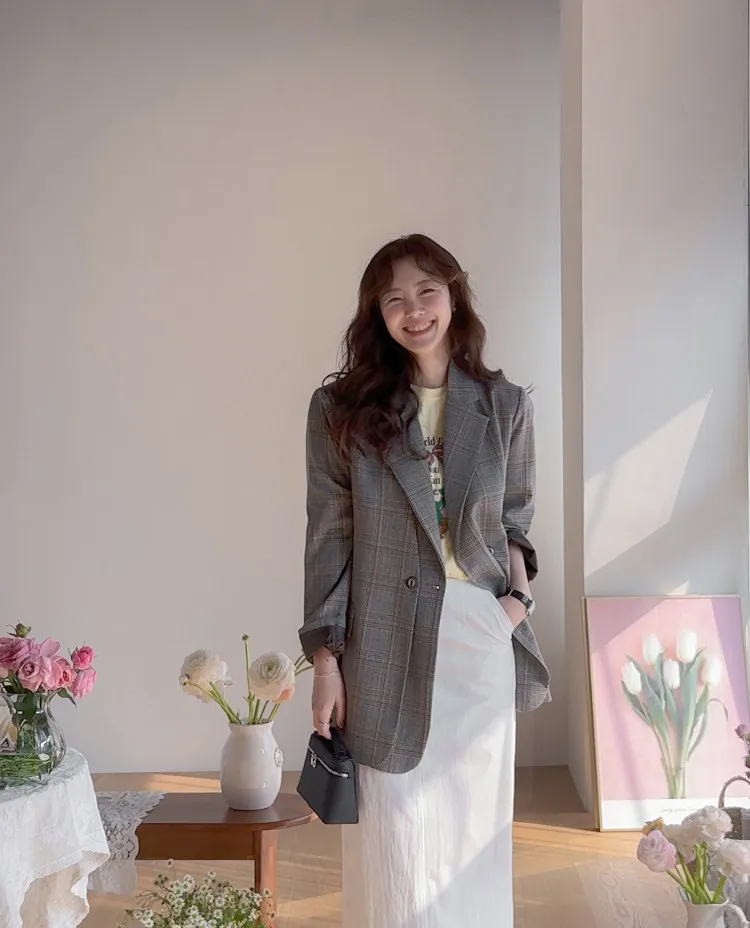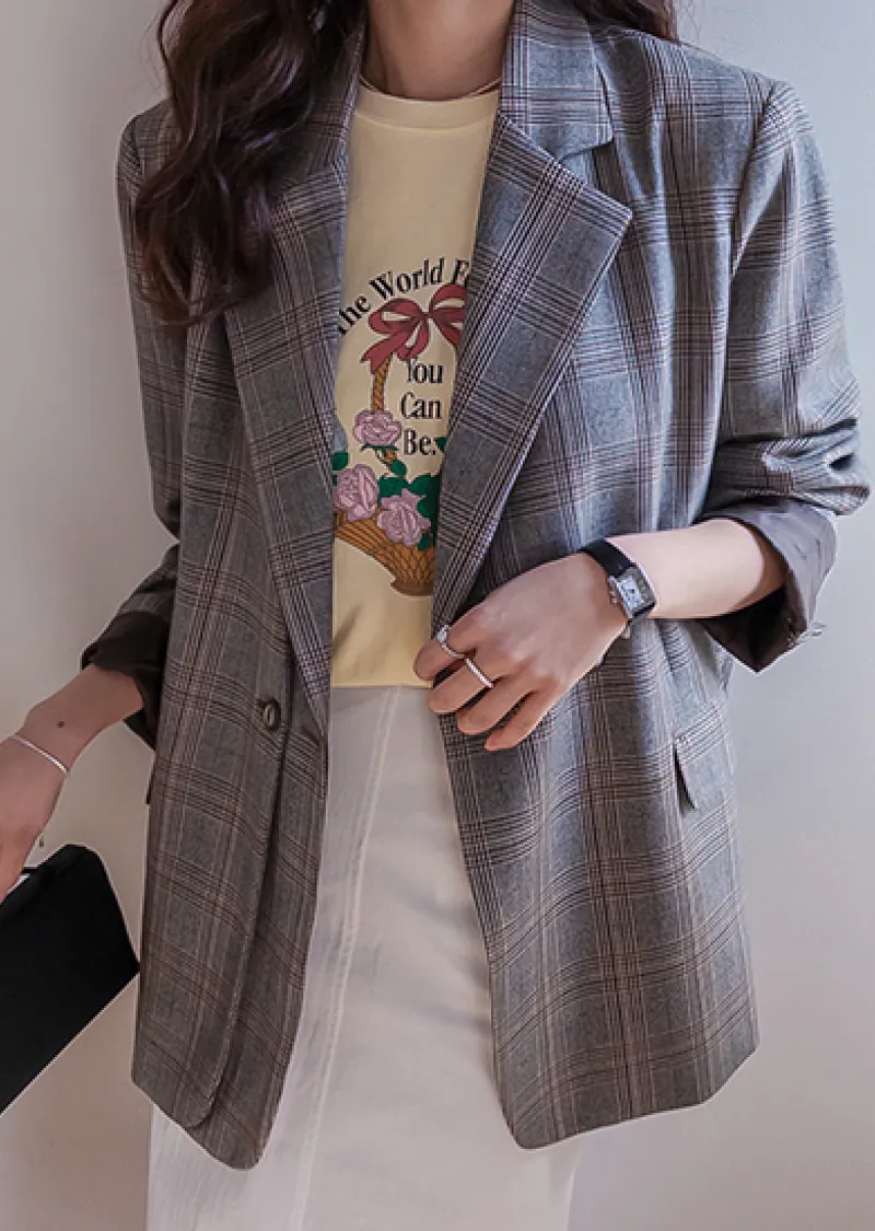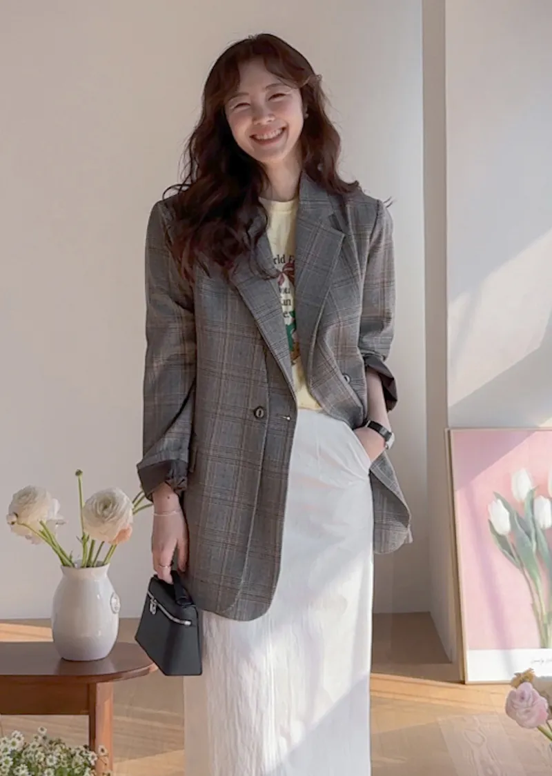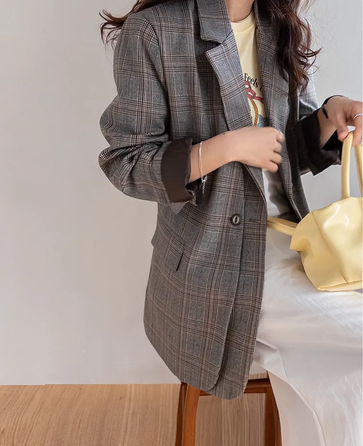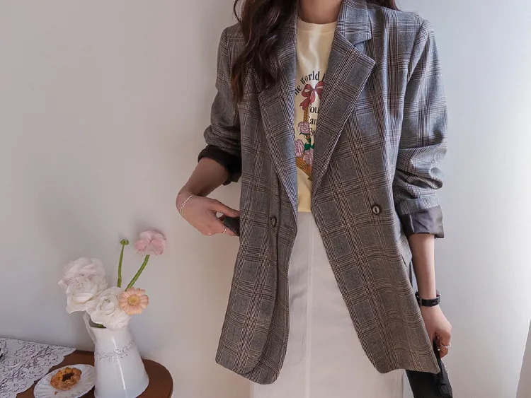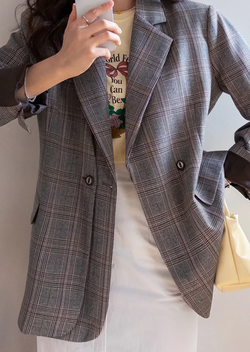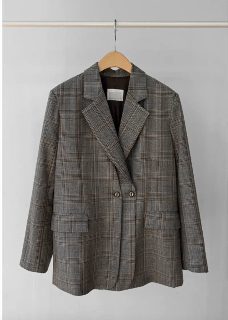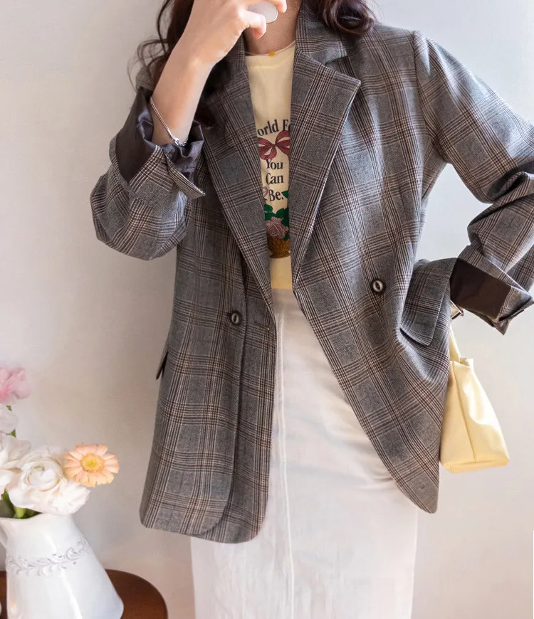 【經典格紋圖案,展現精緻格調】【雙排雙扣設計】【寬鬆廓形,時尚有型】【日常穿著到正式場合皆宜】