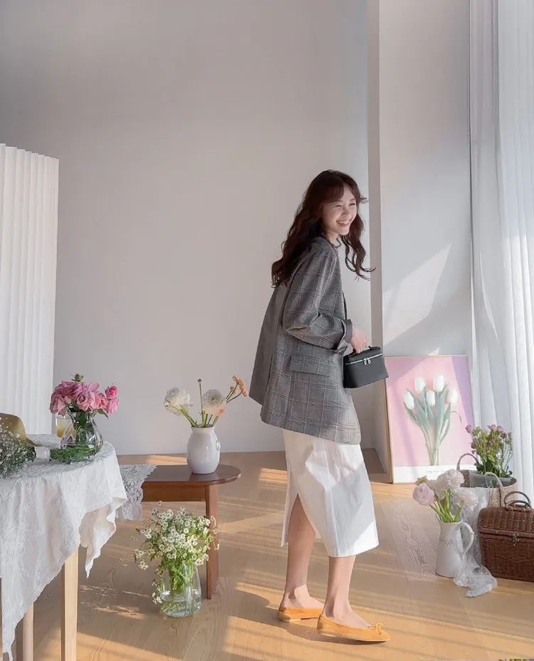 精緻優雅氛圍獨特剪裁格紋雙扣外套