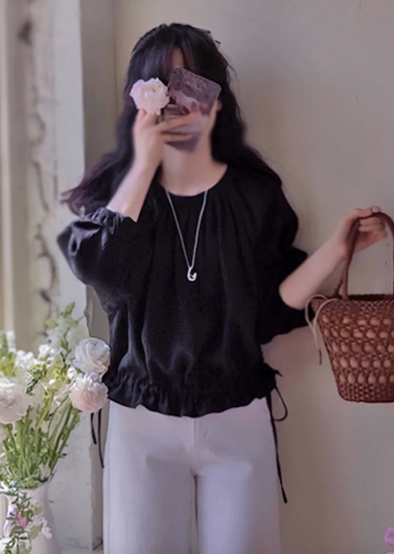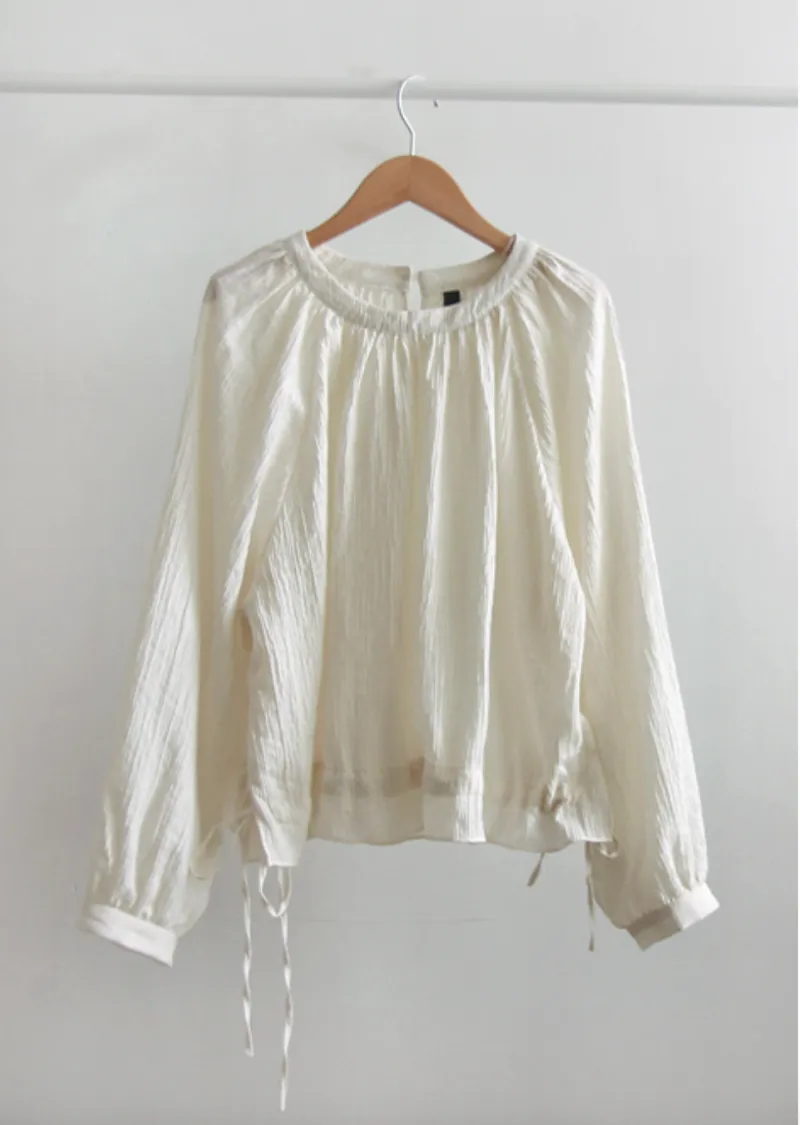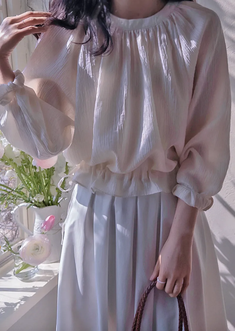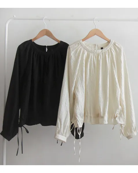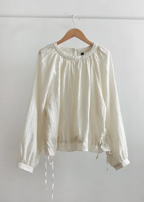 【一款具有褶皺質感的上衣】【調整腰帶形成褶皺,可愛又時尚】【圓領設計,搭配褶皺,盡顯優雅氣質】【推薦這款帶有褶皺的精緻上衣】
