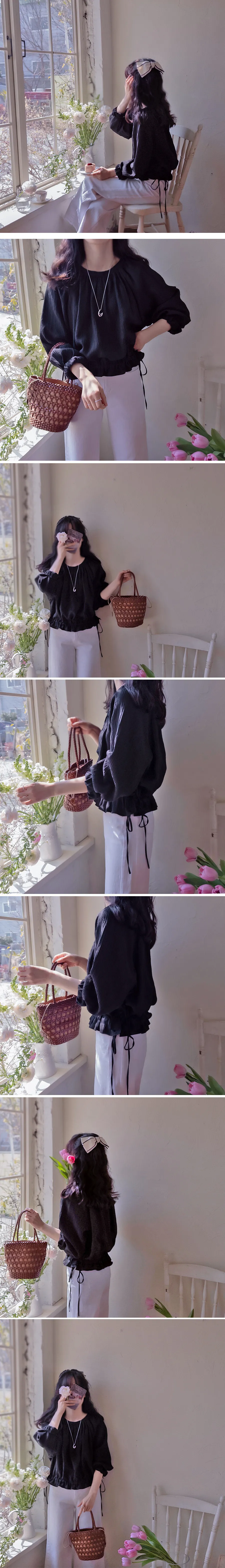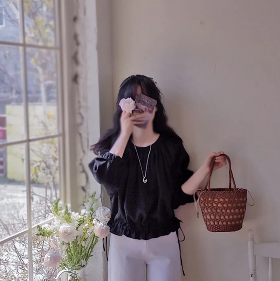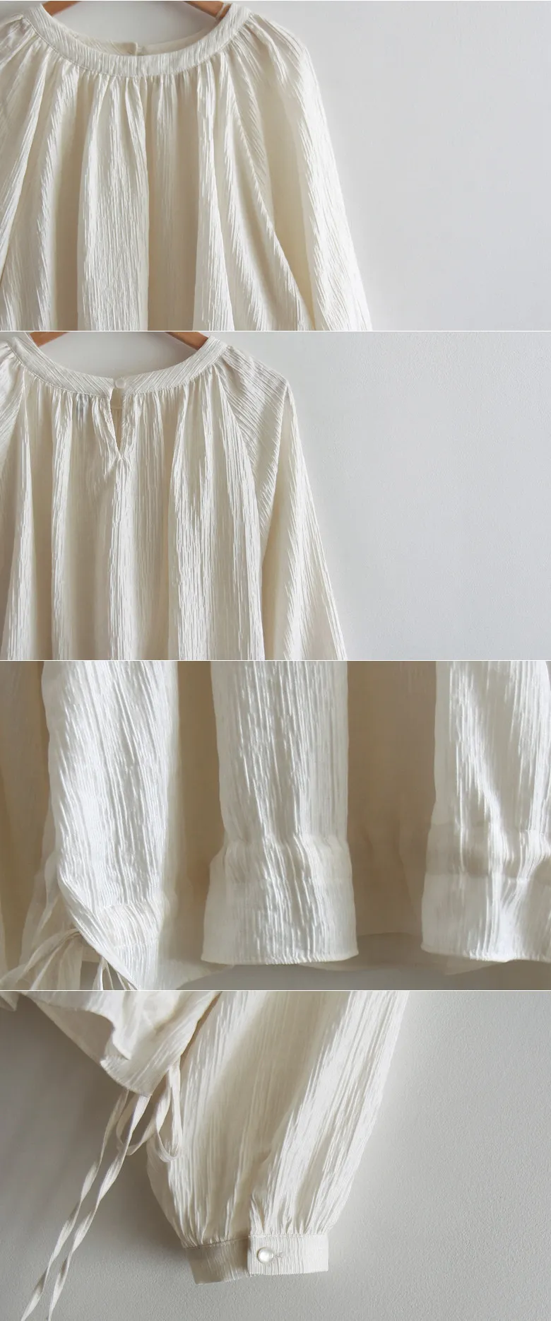 【一款具有褶皺質感的上衣】【調整腰帶形成褶皺,可愛又時尚】【圓領設計,搭配褶皺,盡顯優雅氣質】【推薦這款帶有褶皺的精緻上衣】