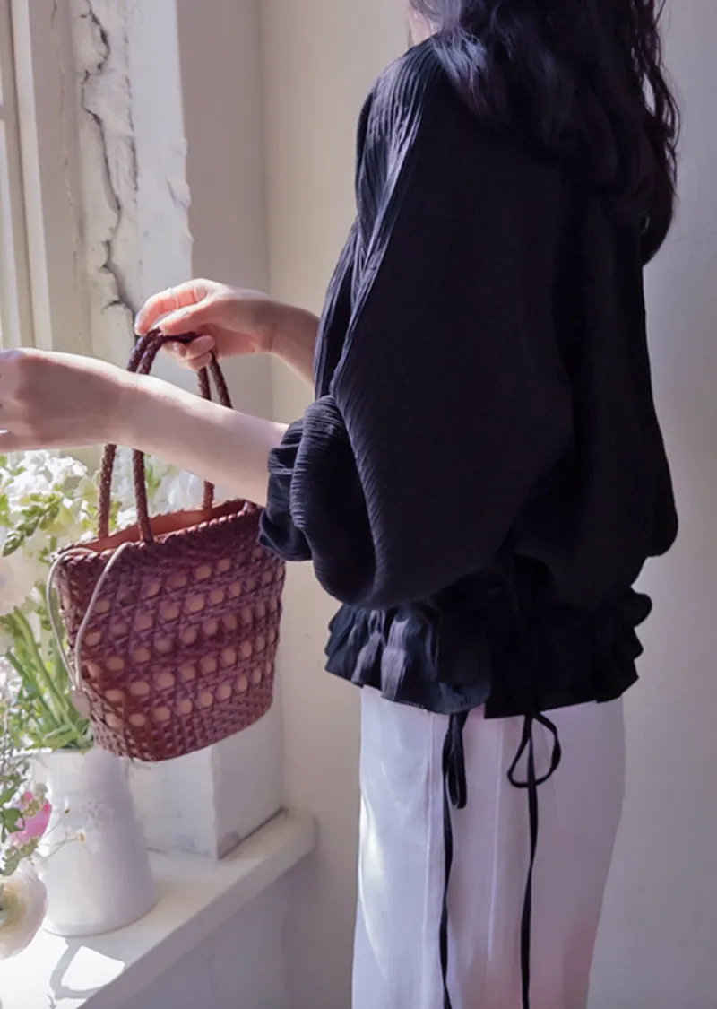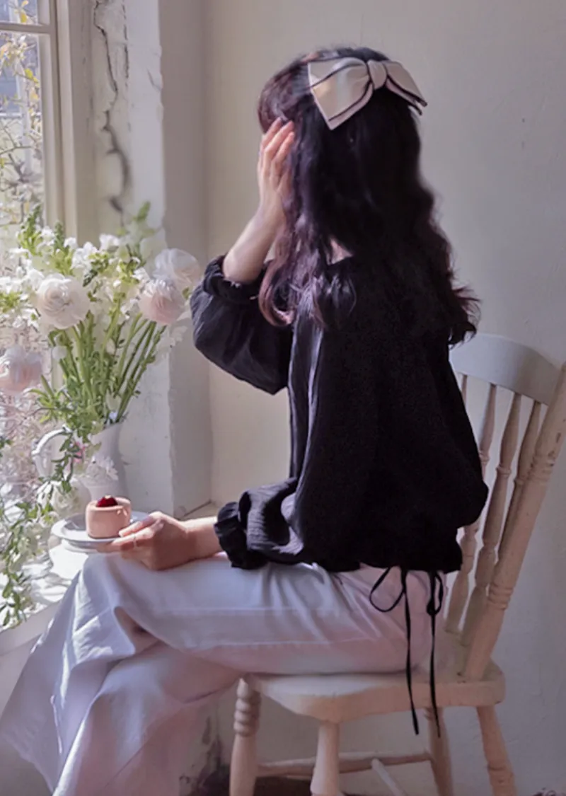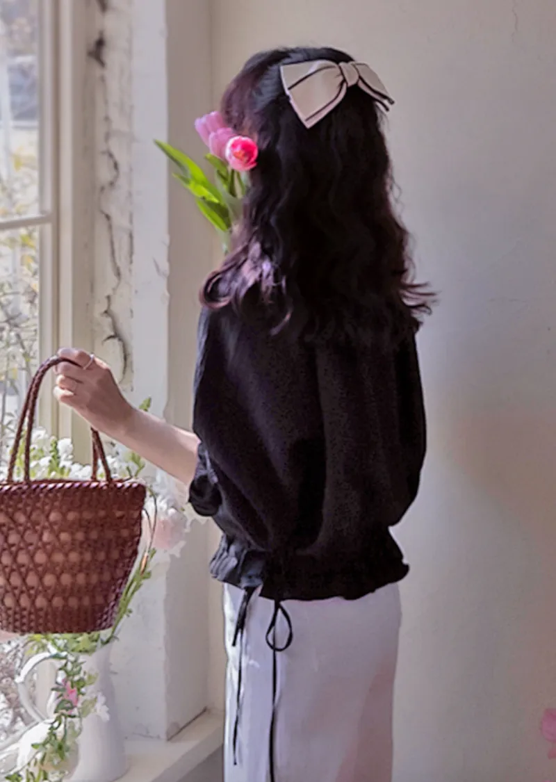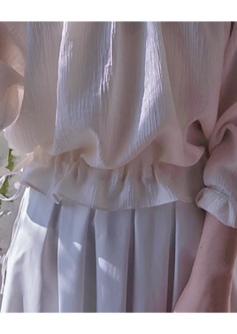 優雅氣質圓領褶皺綁帶收腰上衣