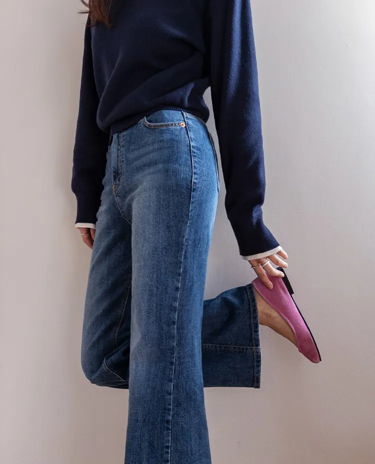 精緻色調修長腿部線條靴型剪裁牛仔褲