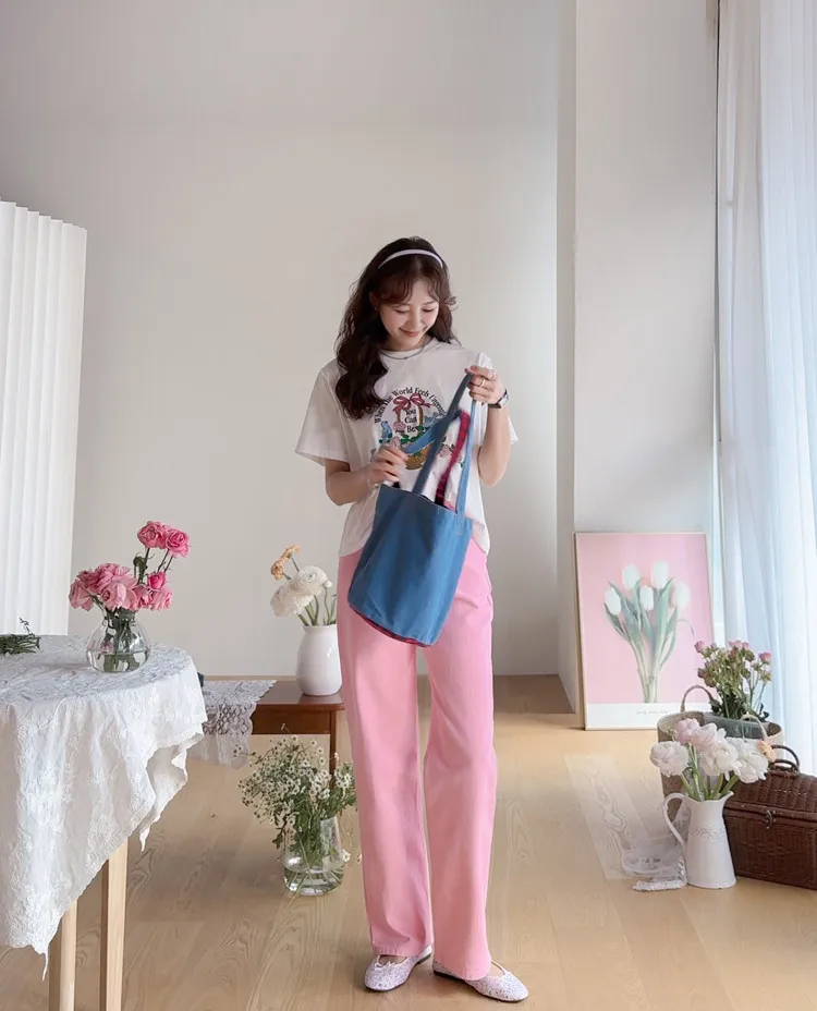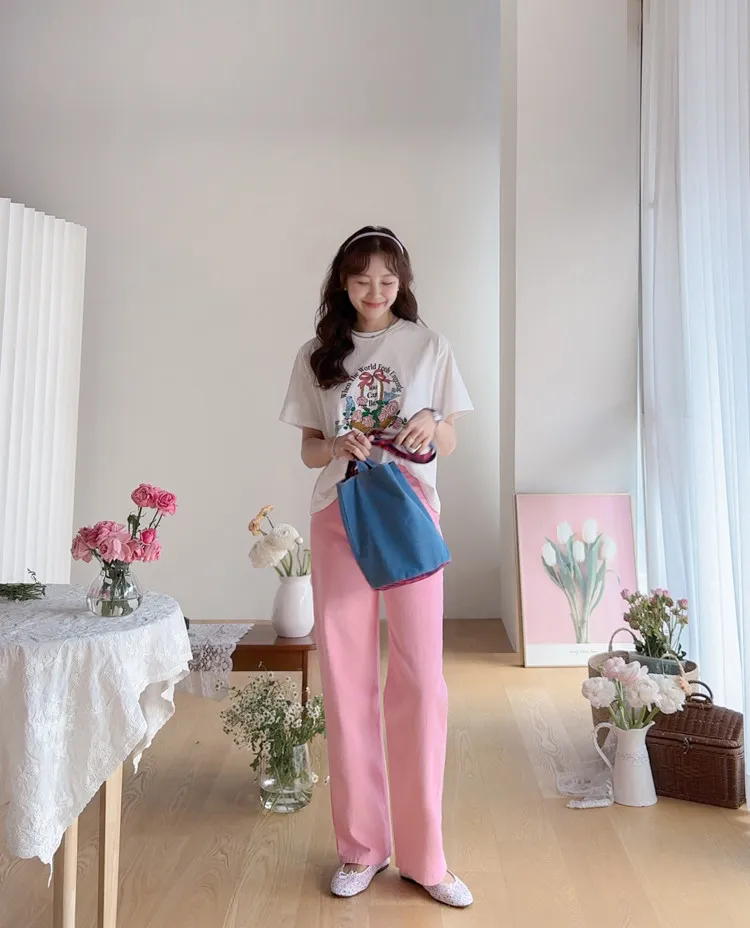 簡約輪廓直筒剪裁舒適棉質休閒褲