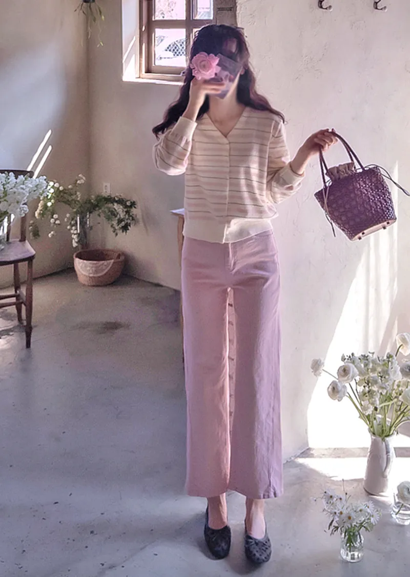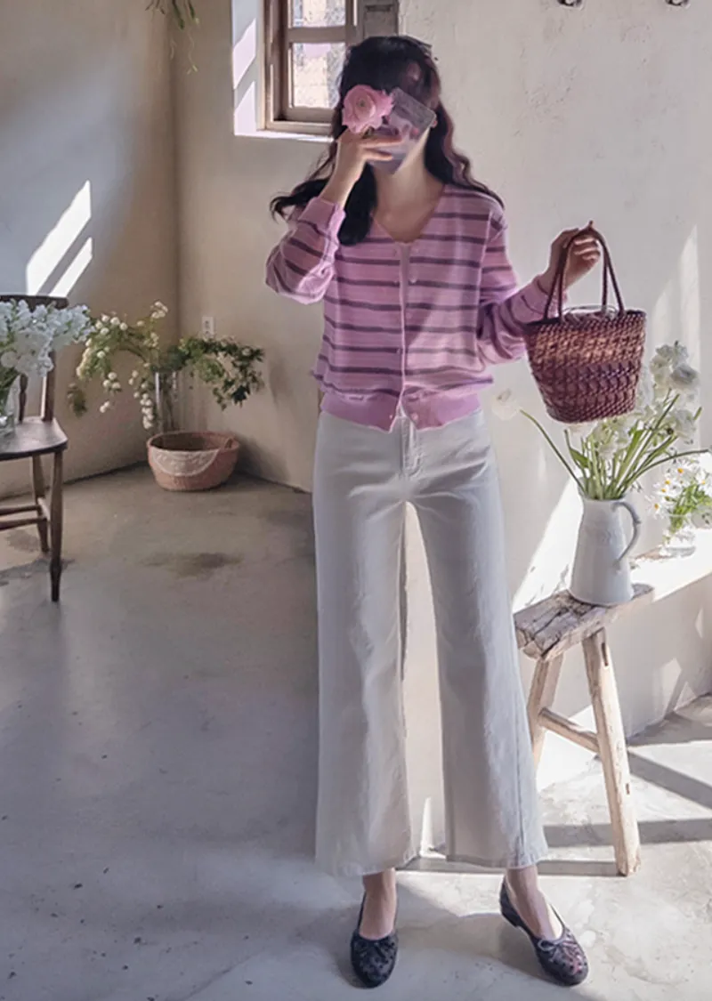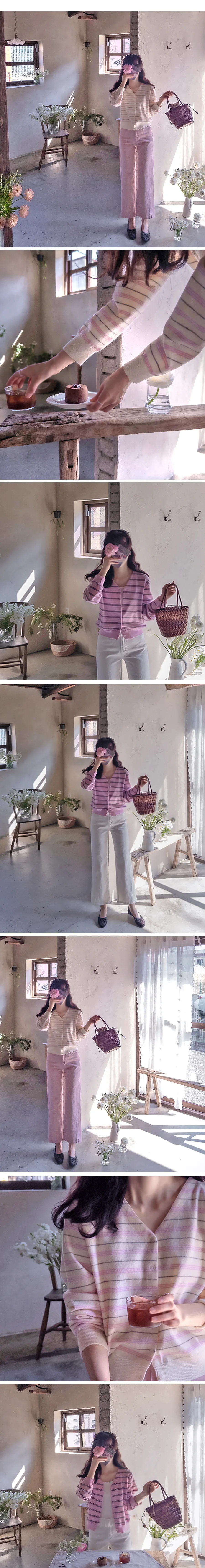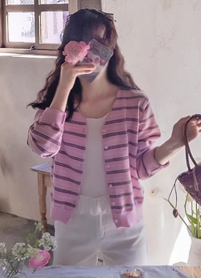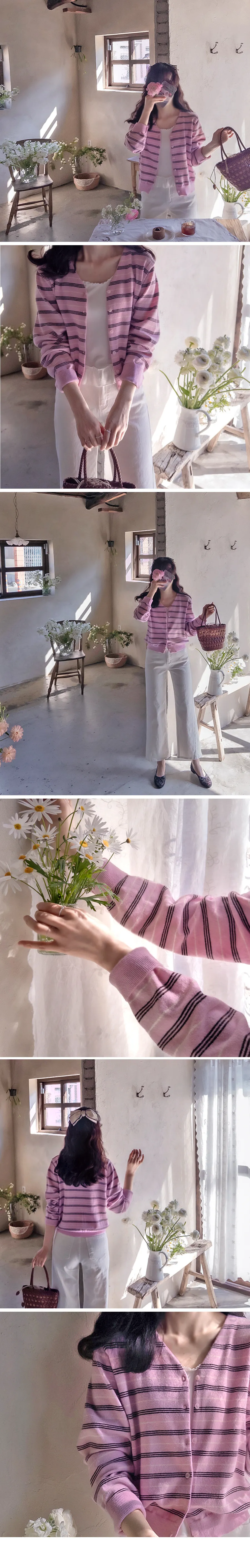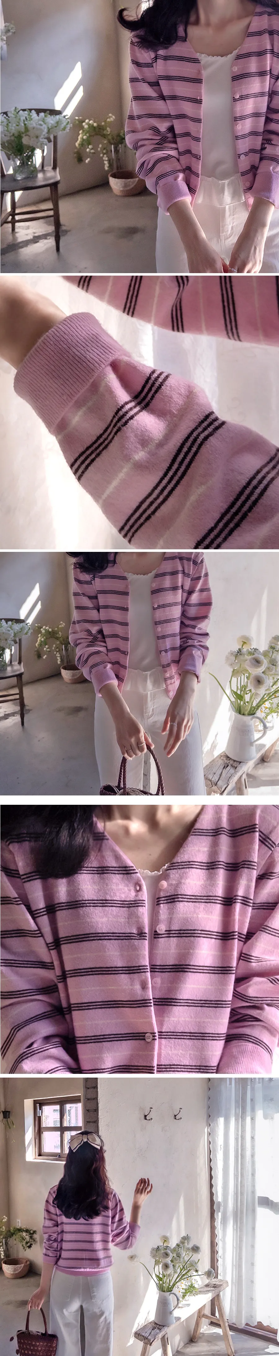 漂亮柔和色調條紋柔軟舒適開衫