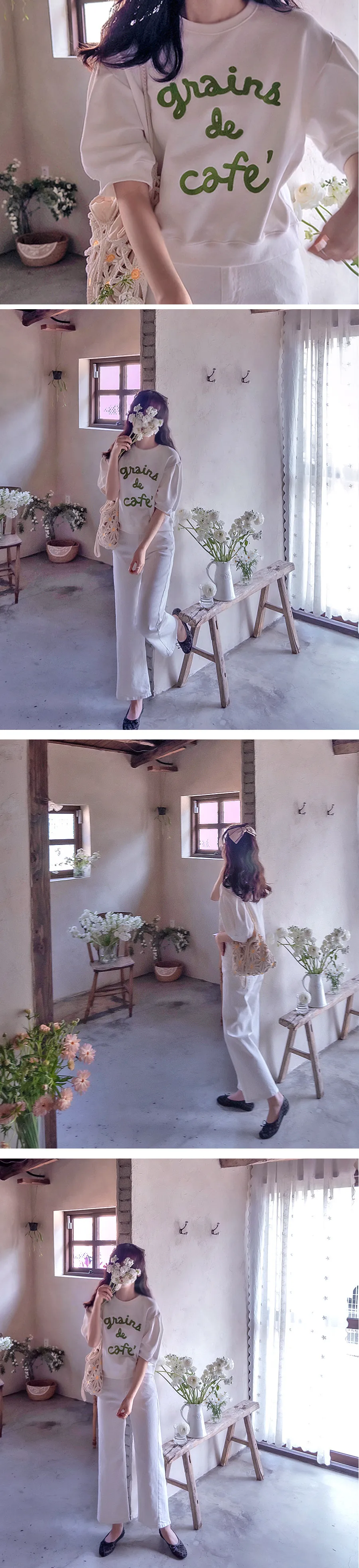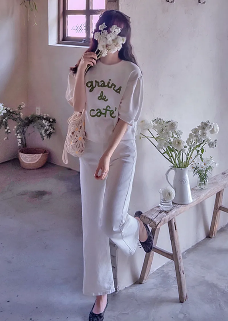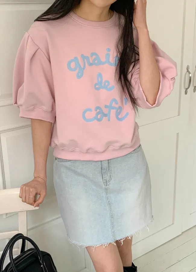 色彩字母刺繡袖線褶襉設計上衣