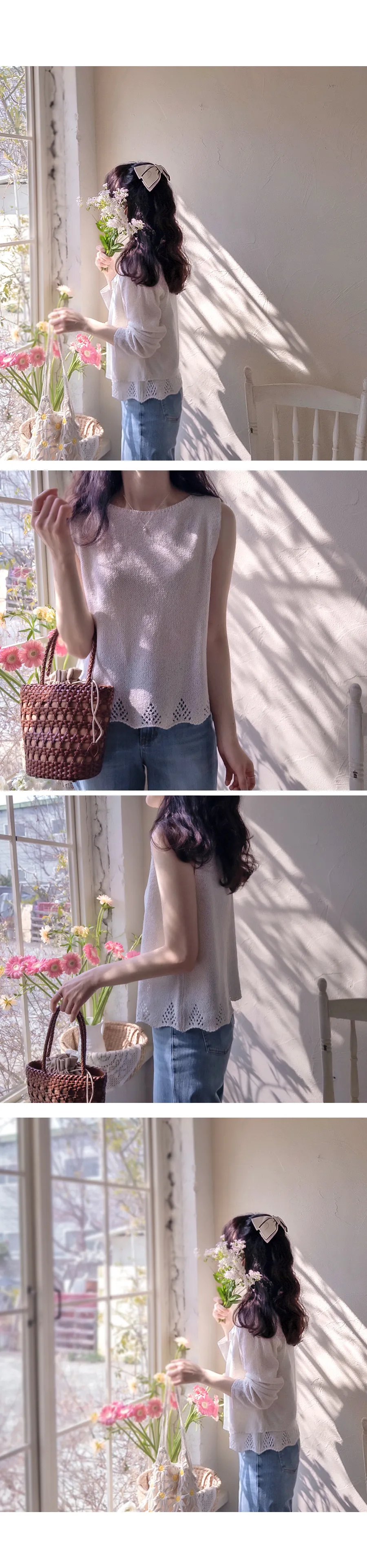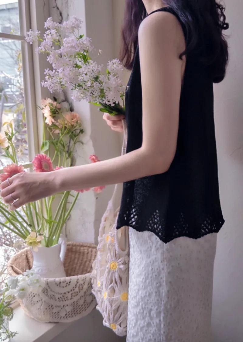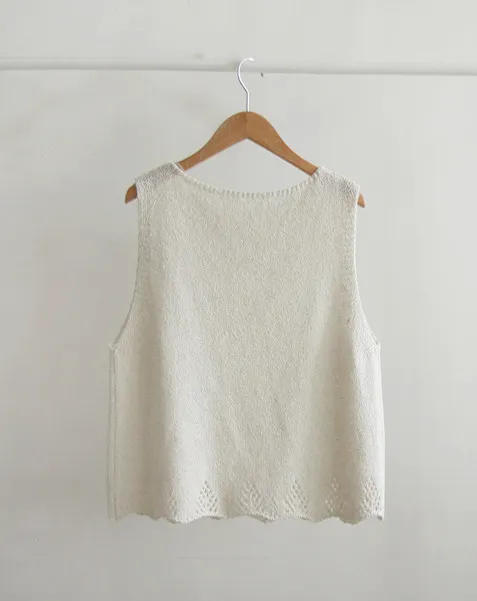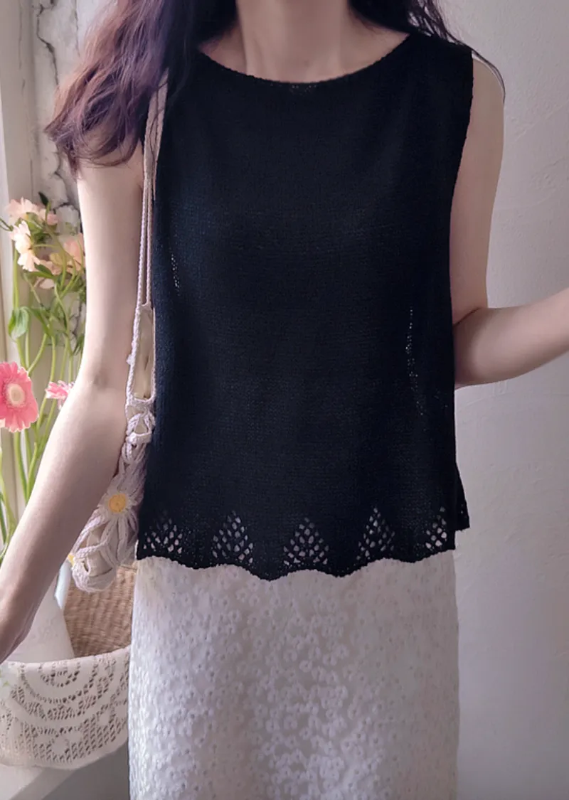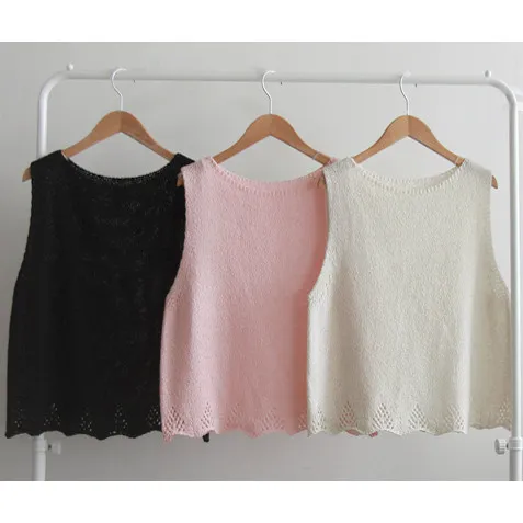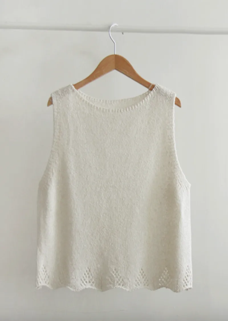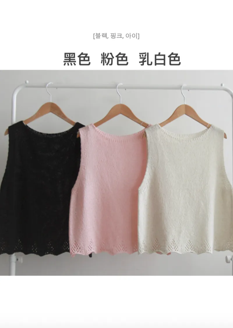 柔和色調漂亮下擺鏤空設計無袖針織上衣