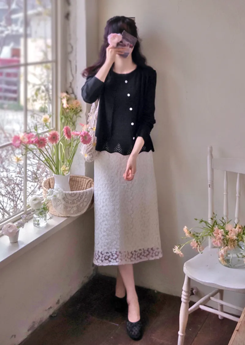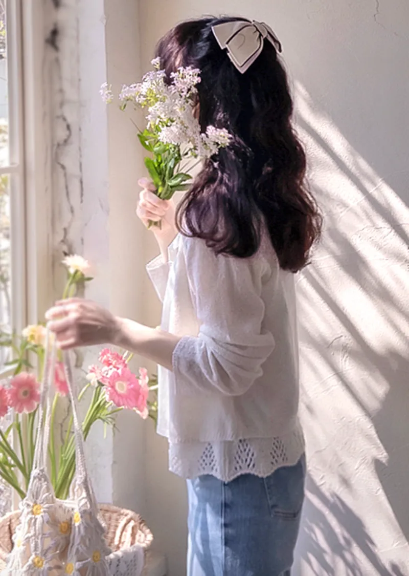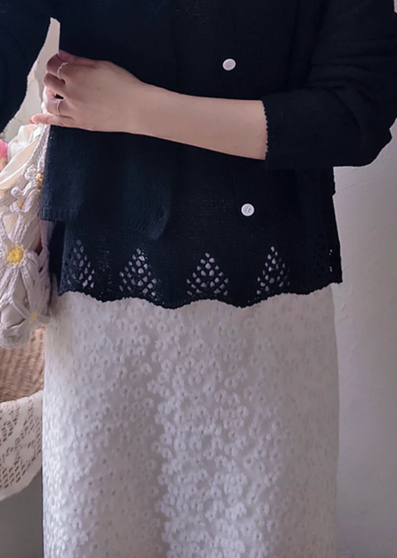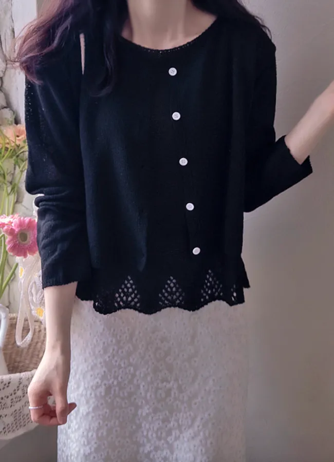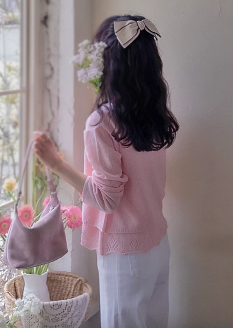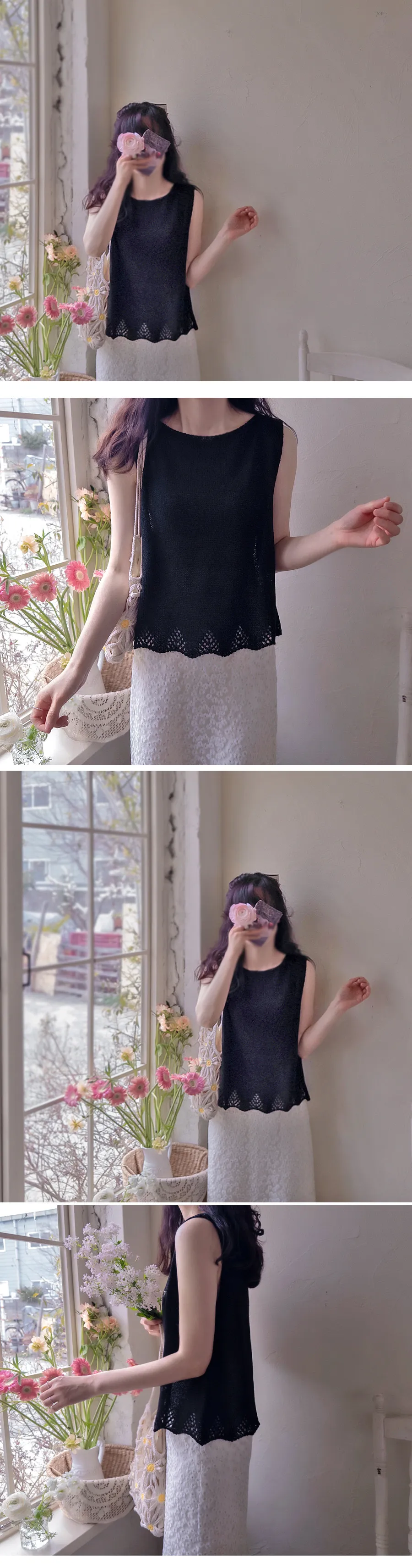 柔和色調漂亮下擺鏤空設計無袖針織上衣