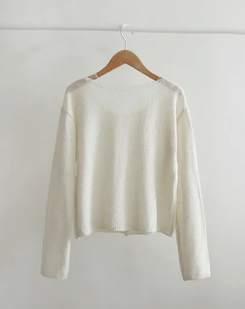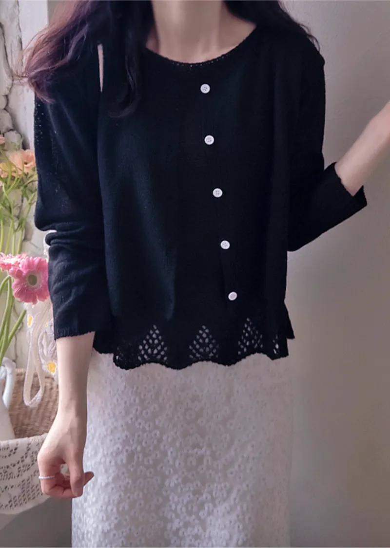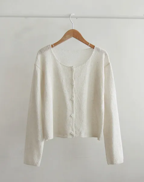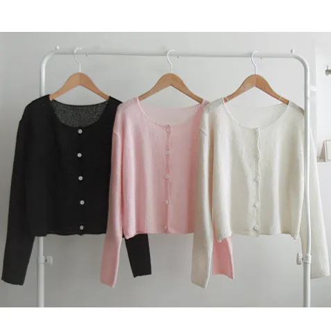 柔和色調簡約圓領排扣針織開衫