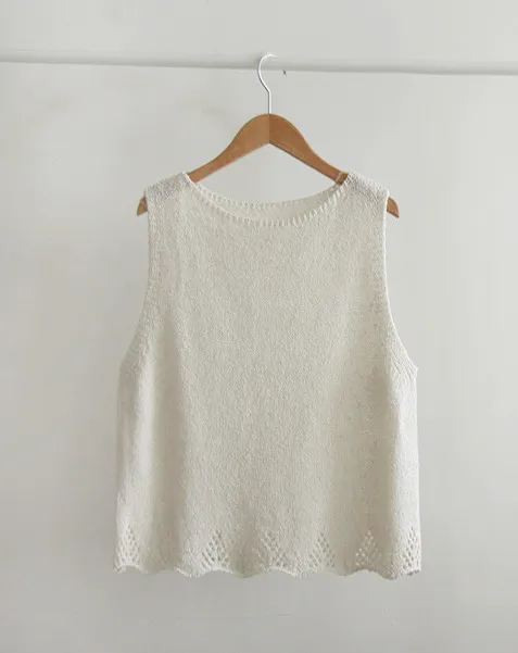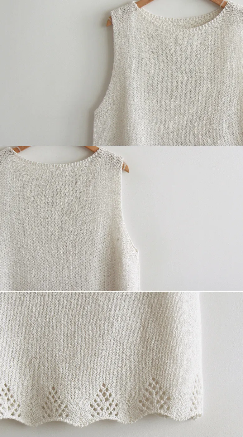 【含10%亞麻,適合從現在穿到夏天】【下擺的鏤空設計營造出迷人氛圍】【柔和色調易於搭配各種服飾,打造甜美氣質】【推薦這款百搭無袖針織衫,易於搭配】【可單穿,也可作為內搭在外套裡面】