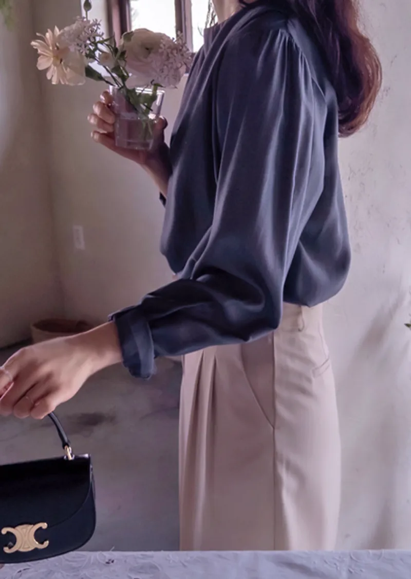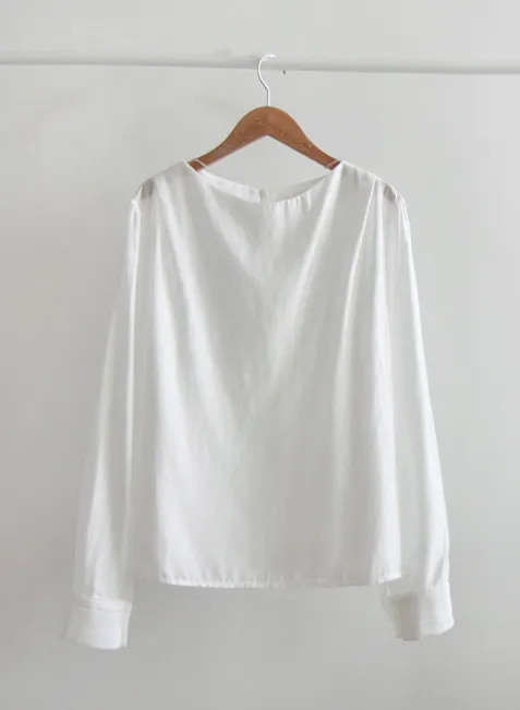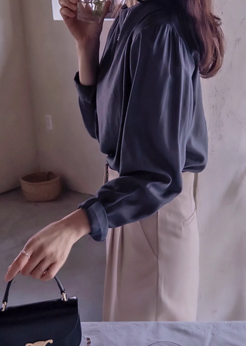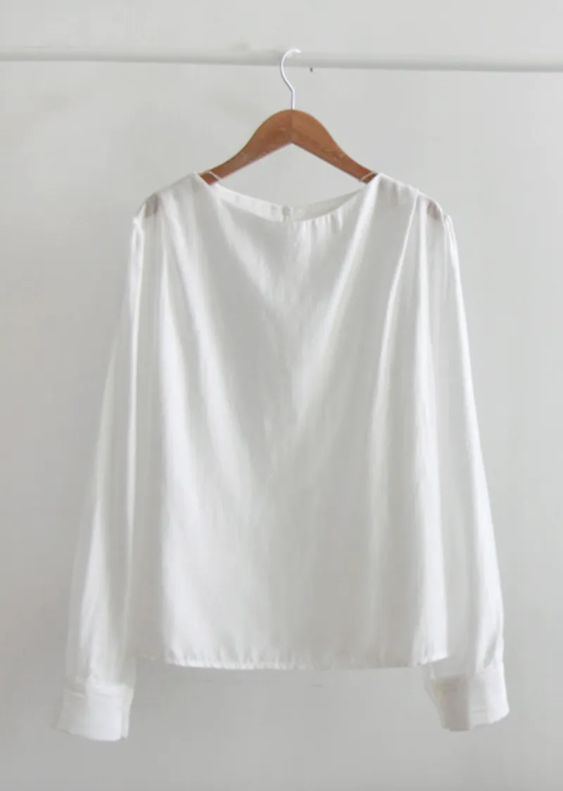 優雅氣質肩線褶襉絲滑垂墜感天絲上衣