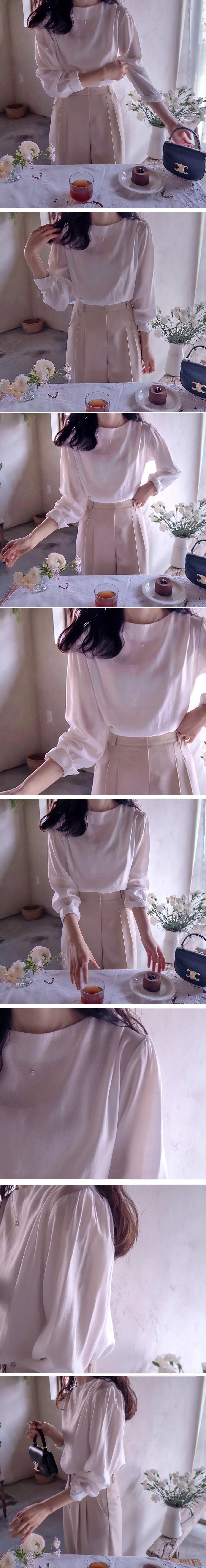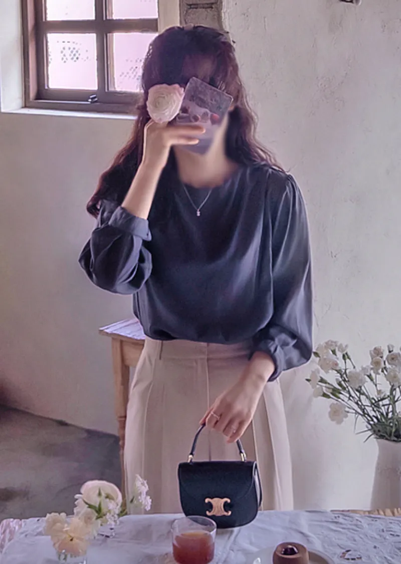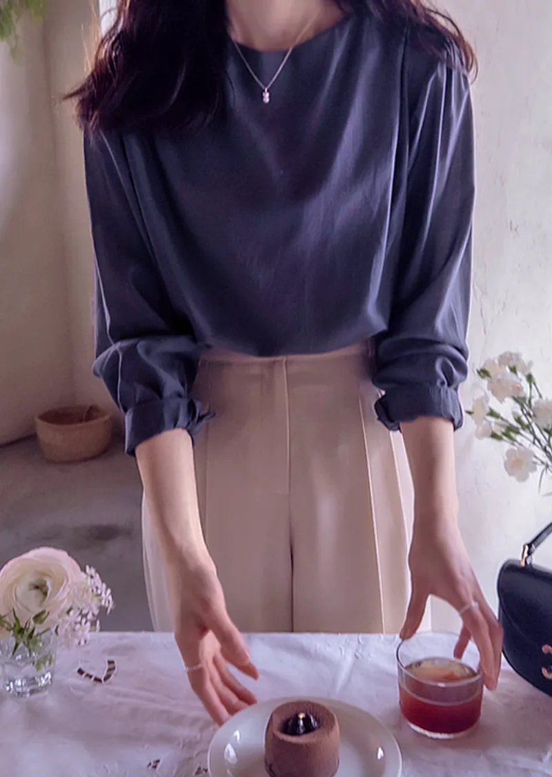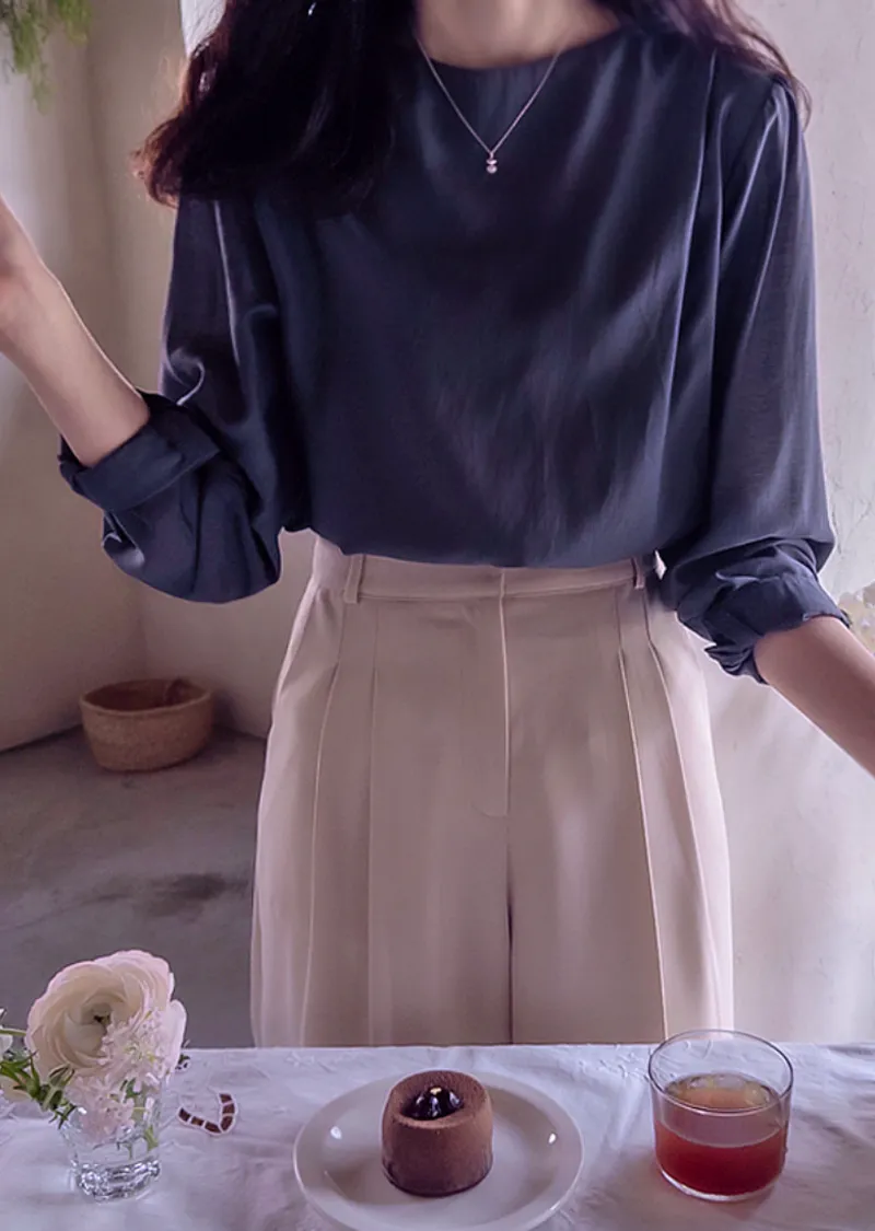 優雅氣質肩線褶襉絲滑垂墜感天絲上衣