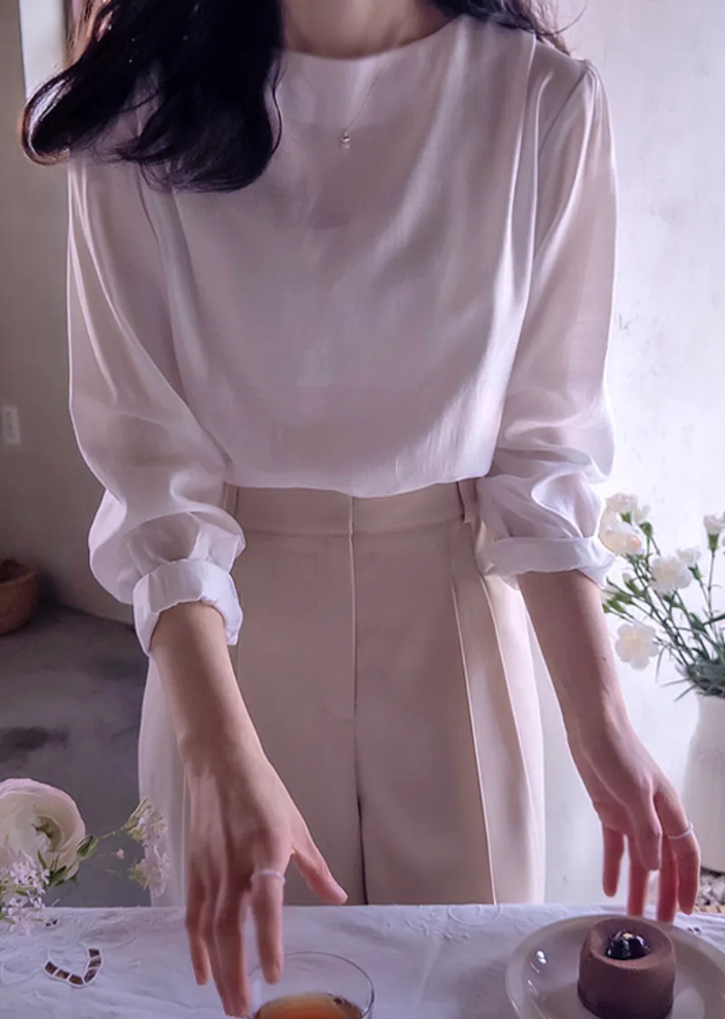 這款飄逸絲滑的襯衫採用 90% 天絲布料製成,非常漂亮;展現精緻優雅