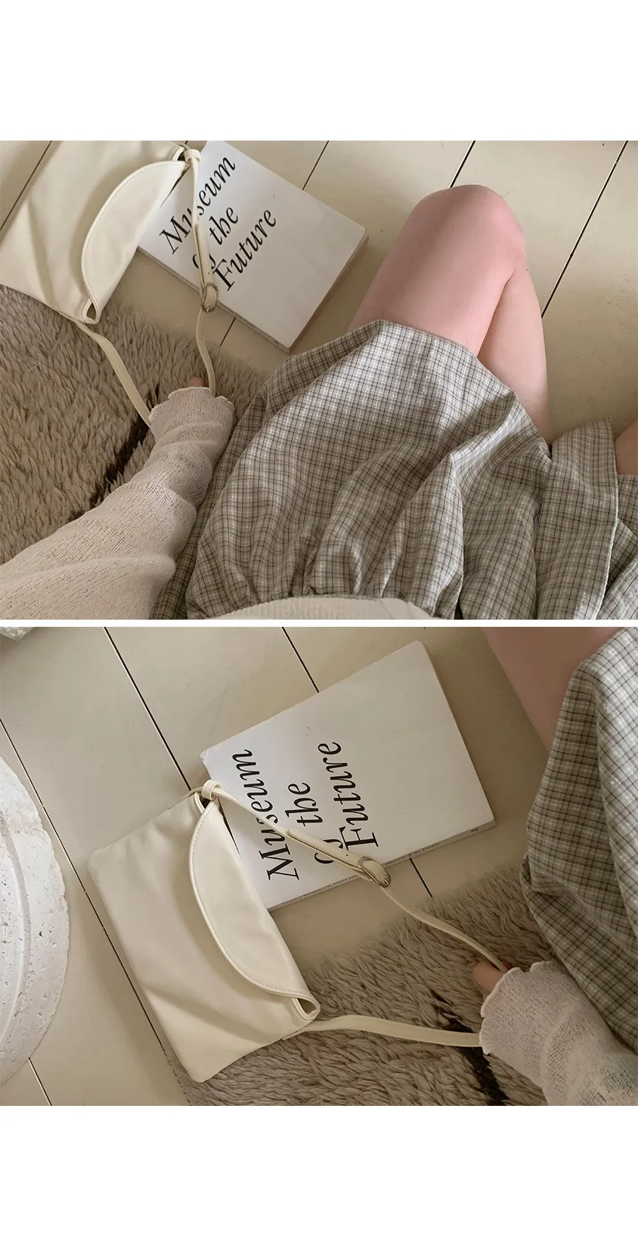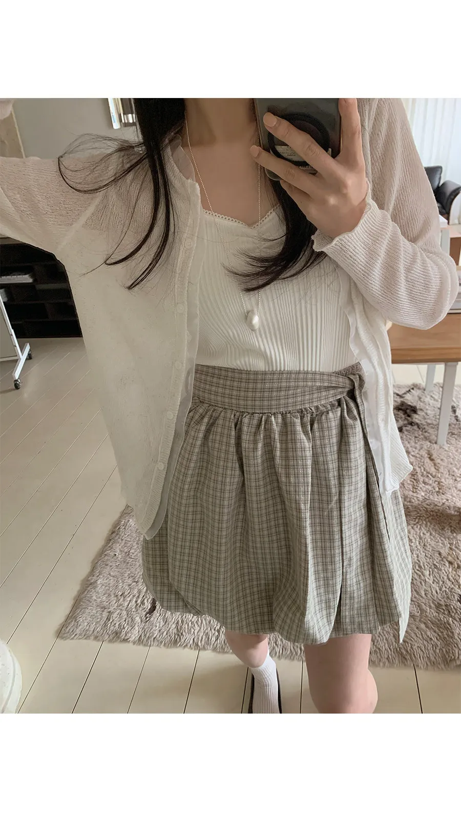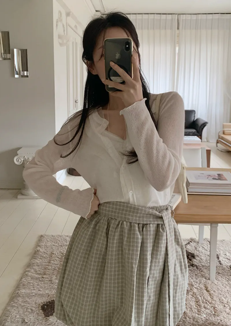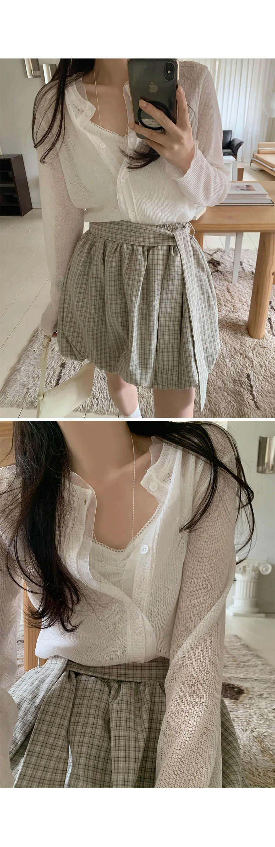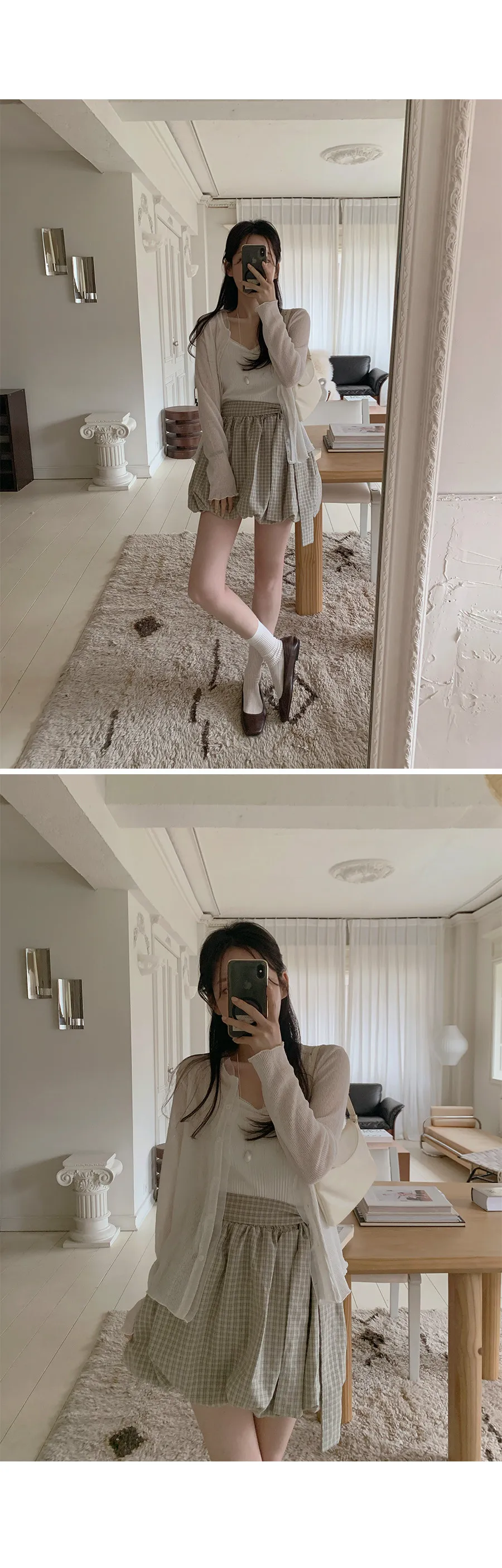 活潑休閒氣息燈籠式垂墜綁帶設計格紋短裙