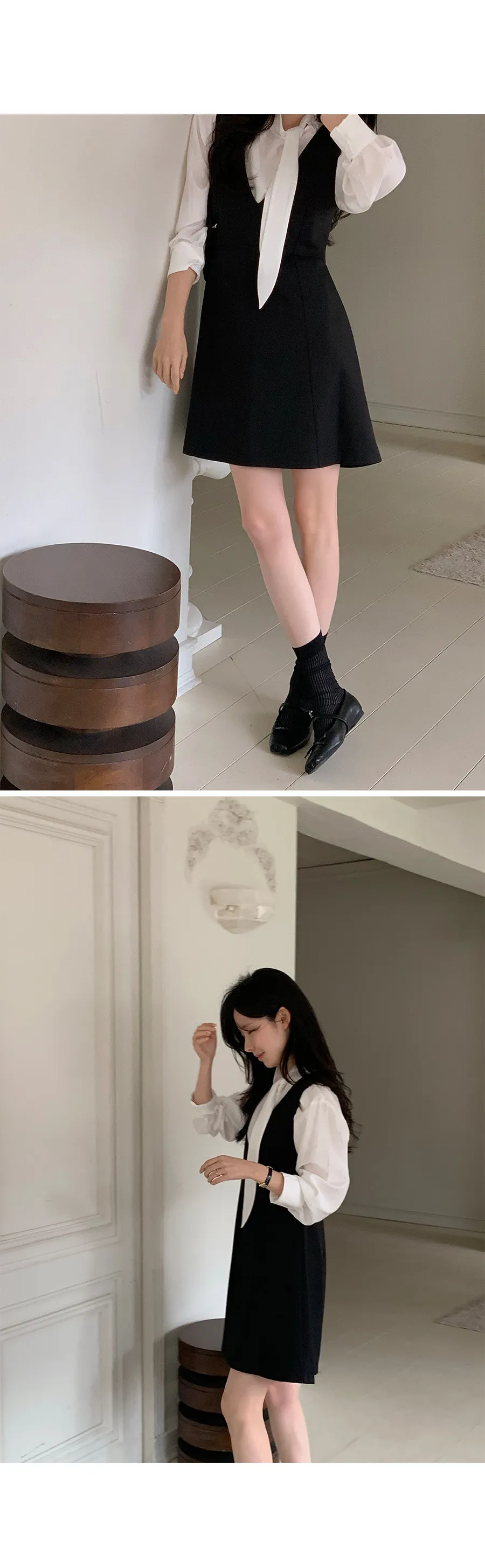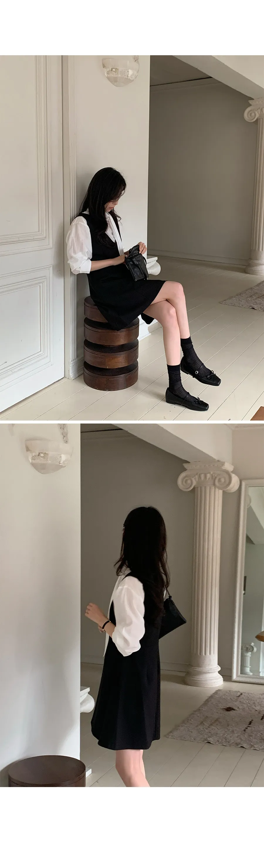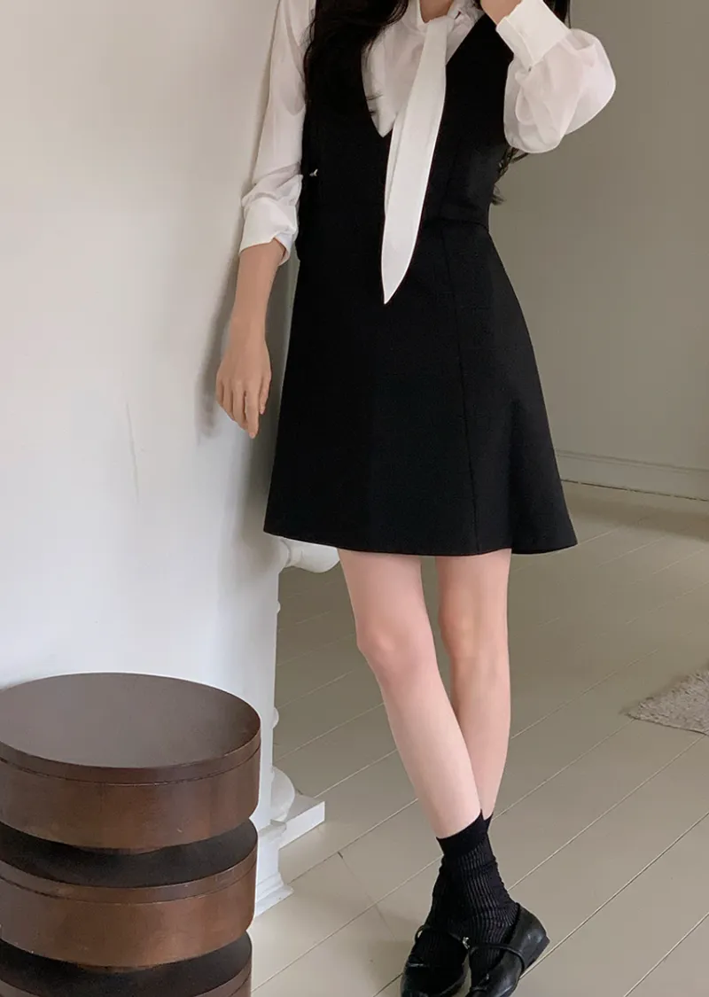 材質:95% 聚酯纖維 + 5% 氨綸。適合疊穿的優雅洋裝!深V領設計,輕鬆搭配各種上衣,打造層次感十足的造型 :)飄逸的A字版型凸顯女性柔美身姿,前幅的褶襉細節更添精緻優雅! 我們精心準備了長款和短款兩種選擇。短款更顯俏皮可愛,長款則展現優雅氣質♡ 搭配繫帶上衣,效果更佳。這款洋裝完美適用於各種場合,例如婚禮賓客、正式活動和初次約會穿搭 :)