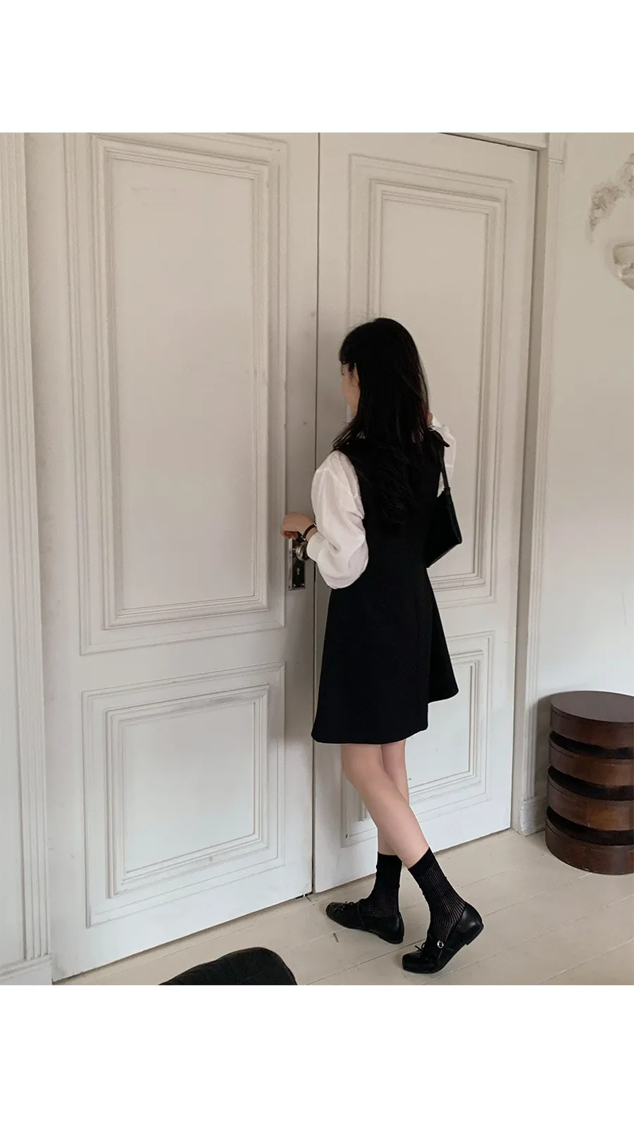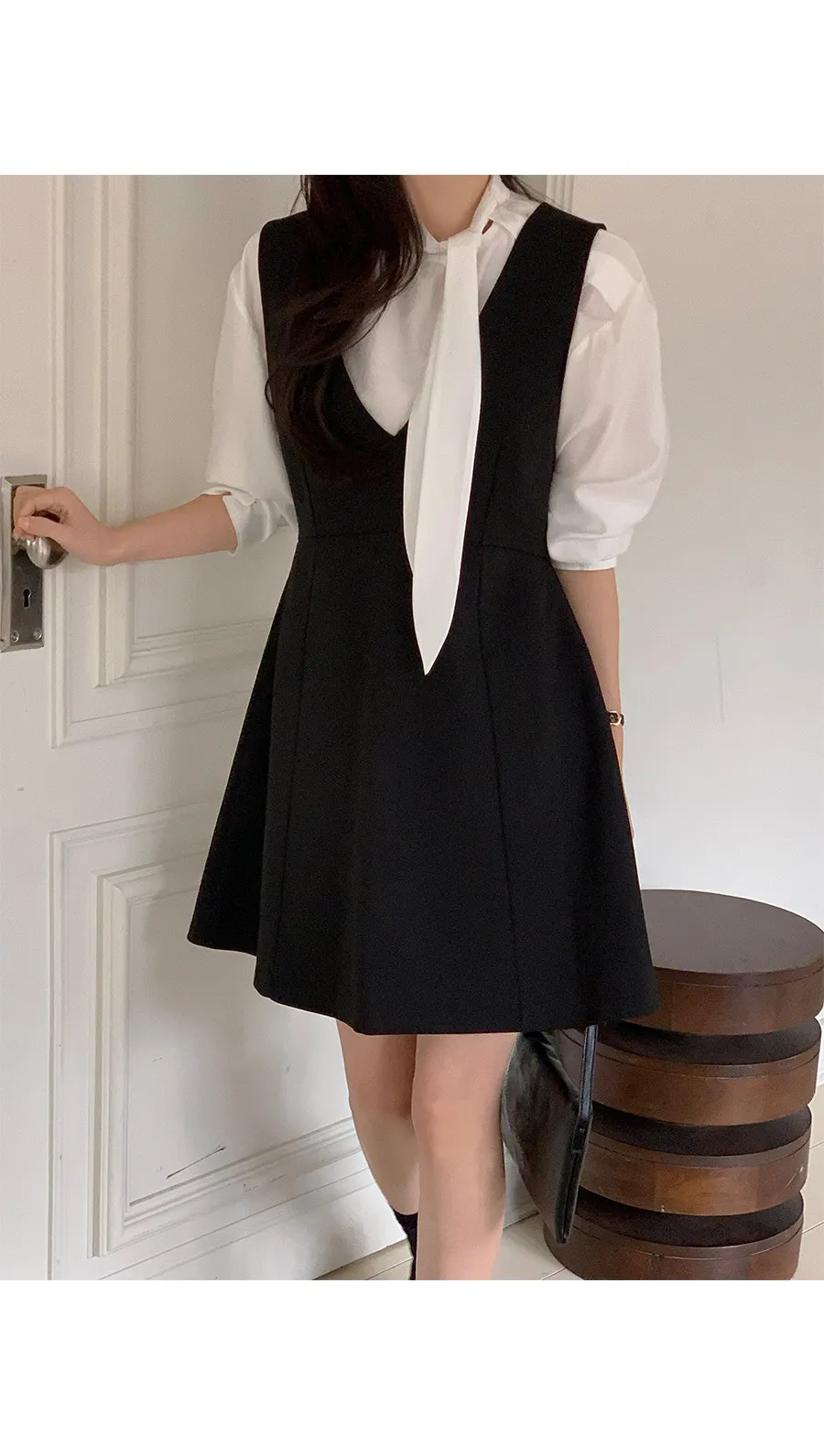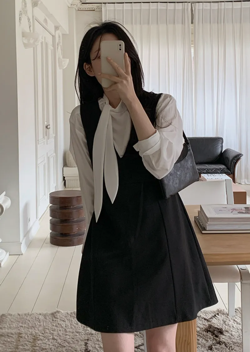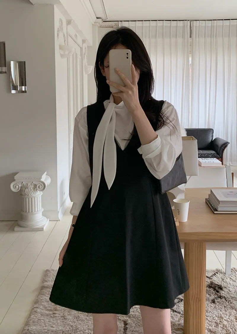 材質:95% 聚酯纖維 + 5% 氨綸。適合疊穿的優雅洋裝!深V領設計,輕鬆搭配各種上衣,打造層次感十足的造型 :)飄逸的A字版型凸顯女性柔美身姿,前幅的褶襉細節更添精緻優雅! 我們精心準備了長款和短款兩種選擇。短款更顯俏皮可愛,長款則展現優雅氣質♡ 搭配繫帶上衣,效果更佳。這款洋裝完美適用於各種場合,例如婚禮賓客、正式活動和初次約會穿搭 :)