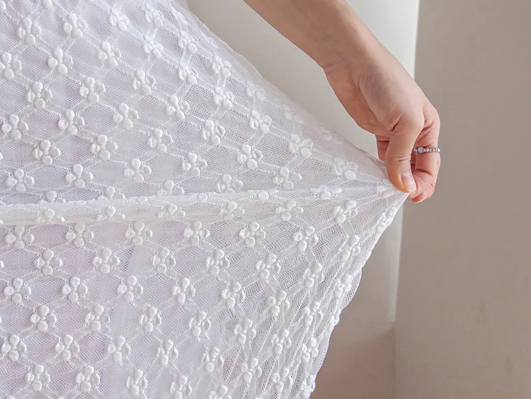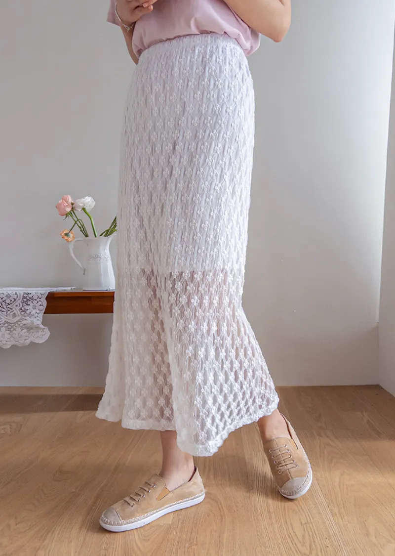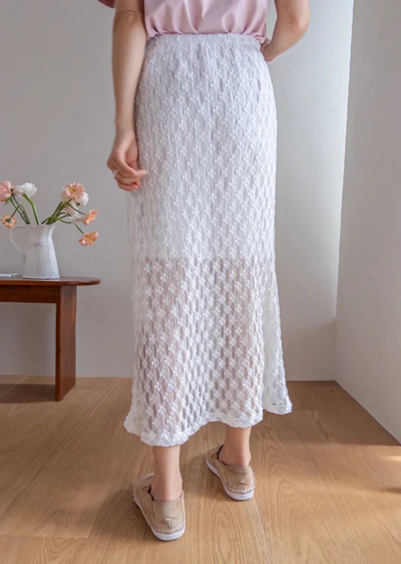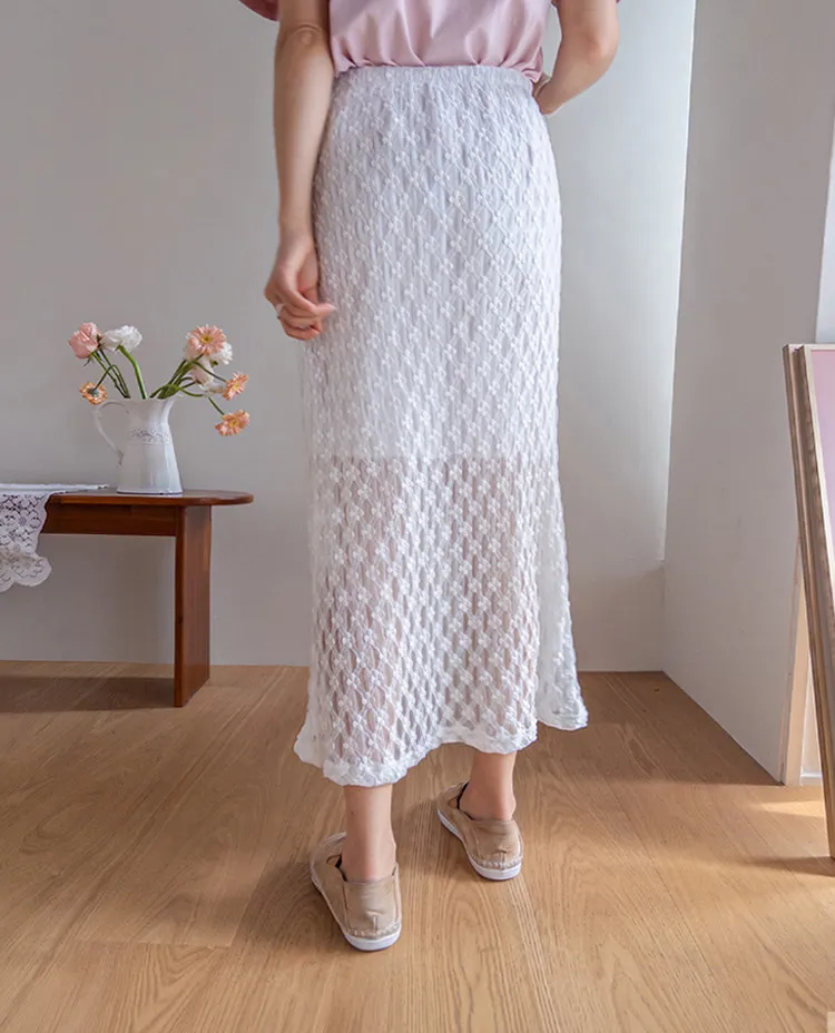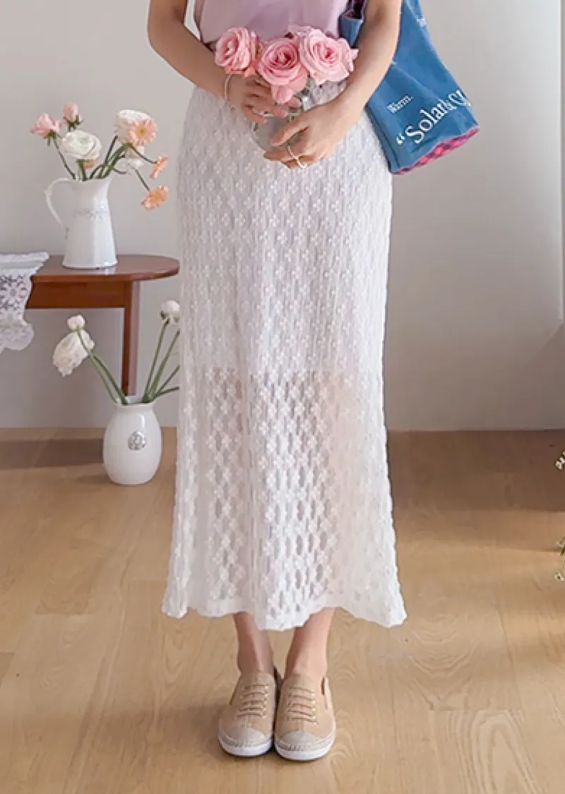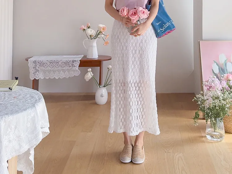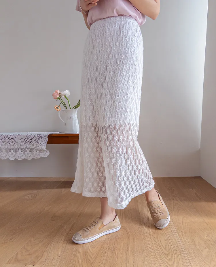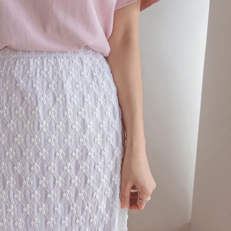 柔美氣質花朵蕾絲飄逸裙擺中長裙