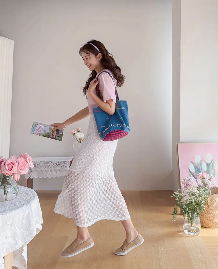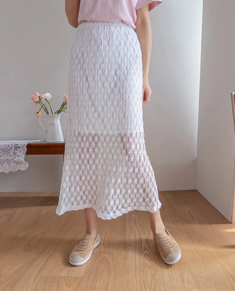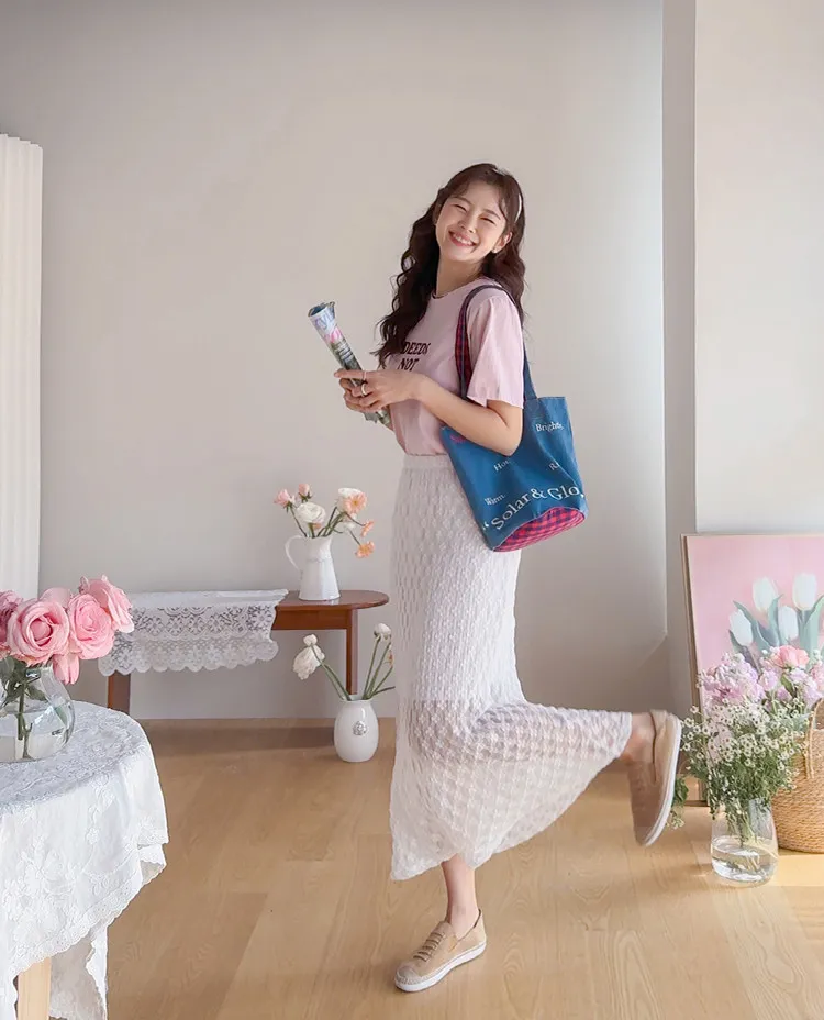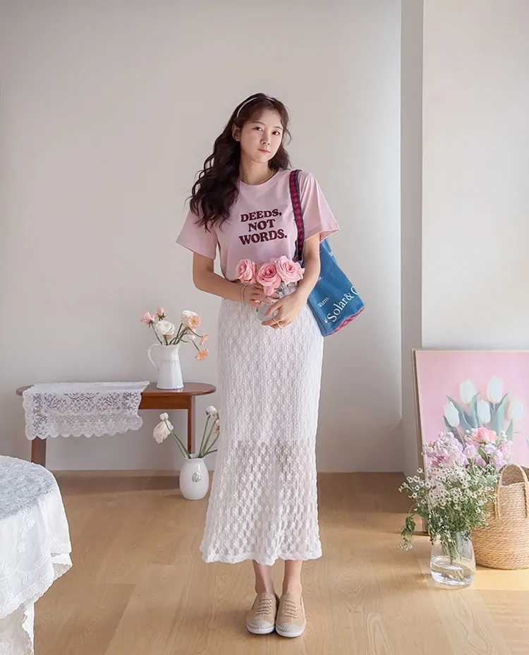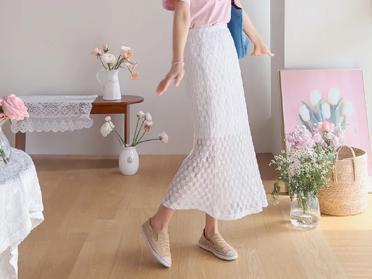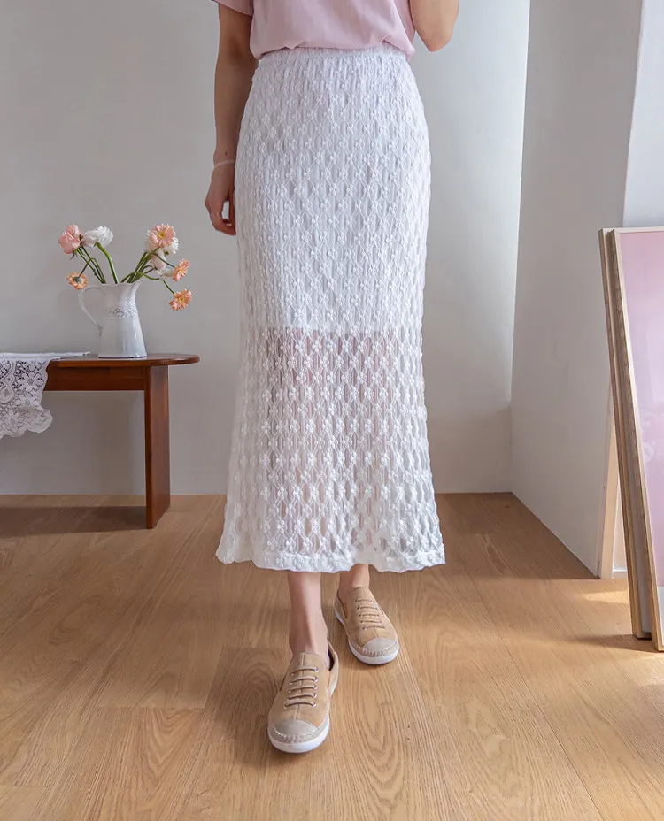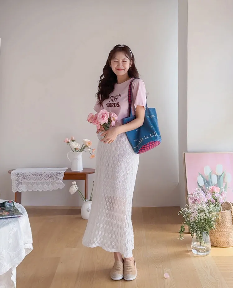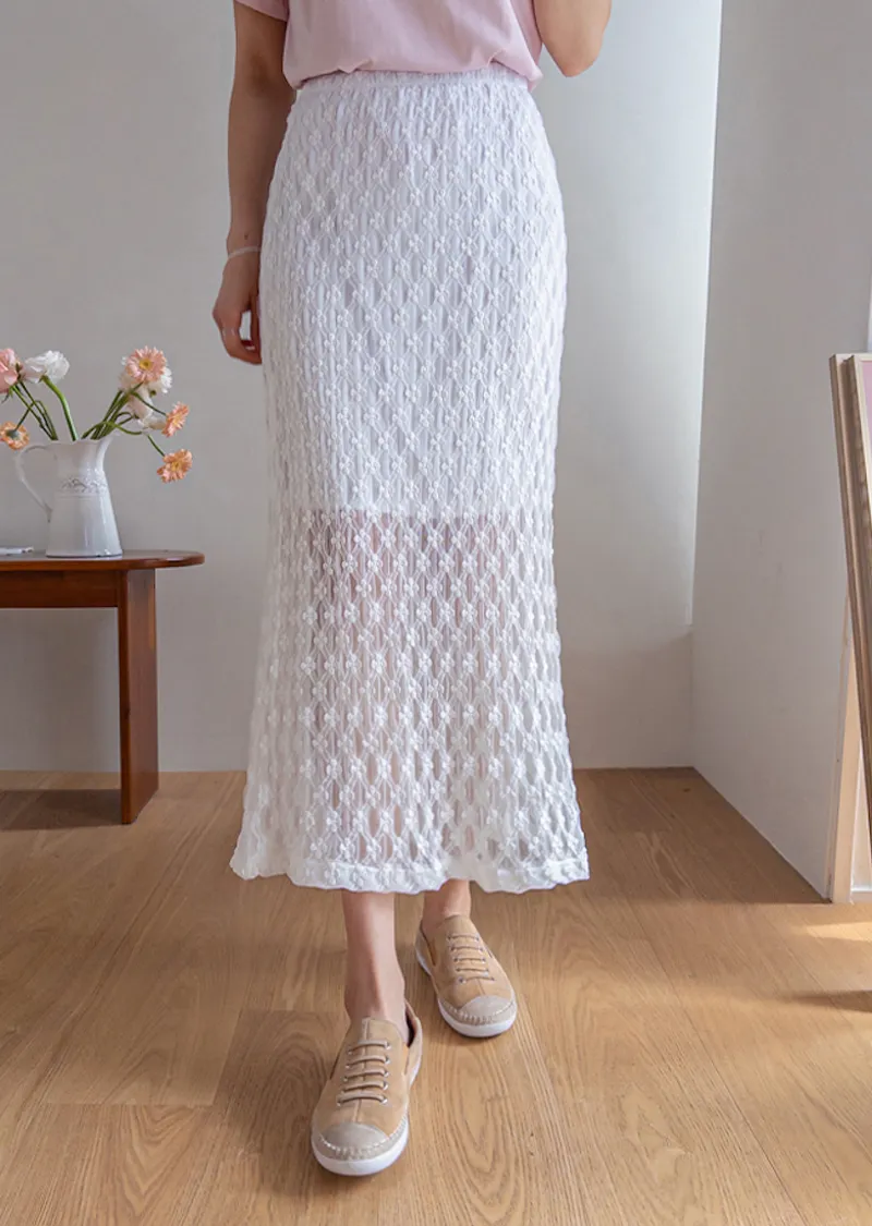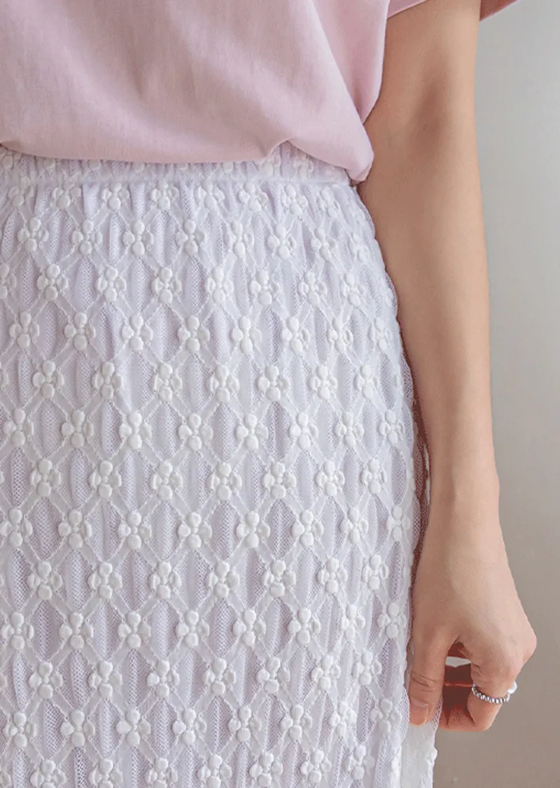 柔美氣質花朵蕾絲飄逸裙擺中長裙