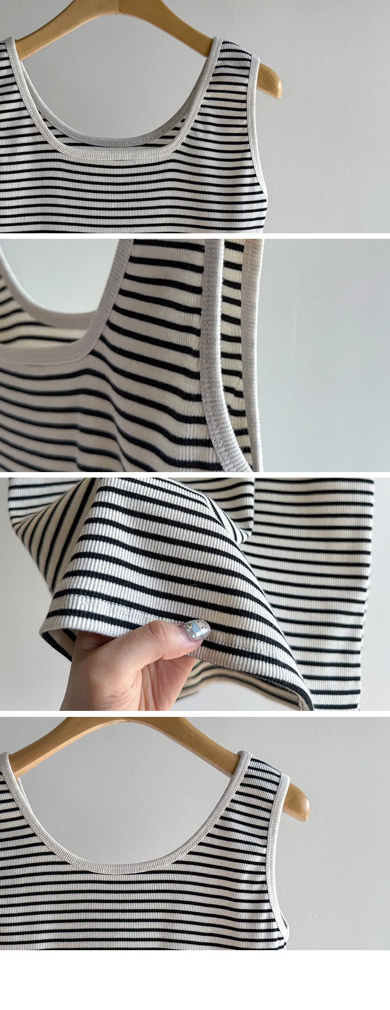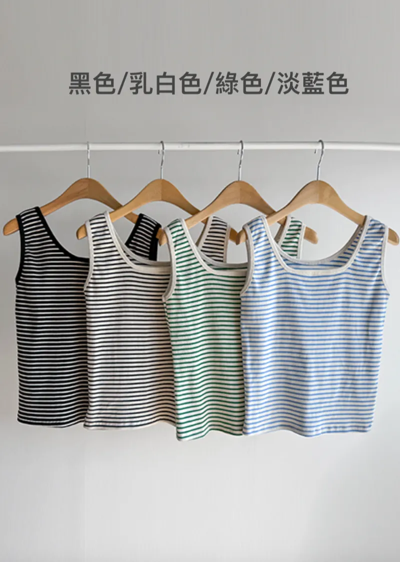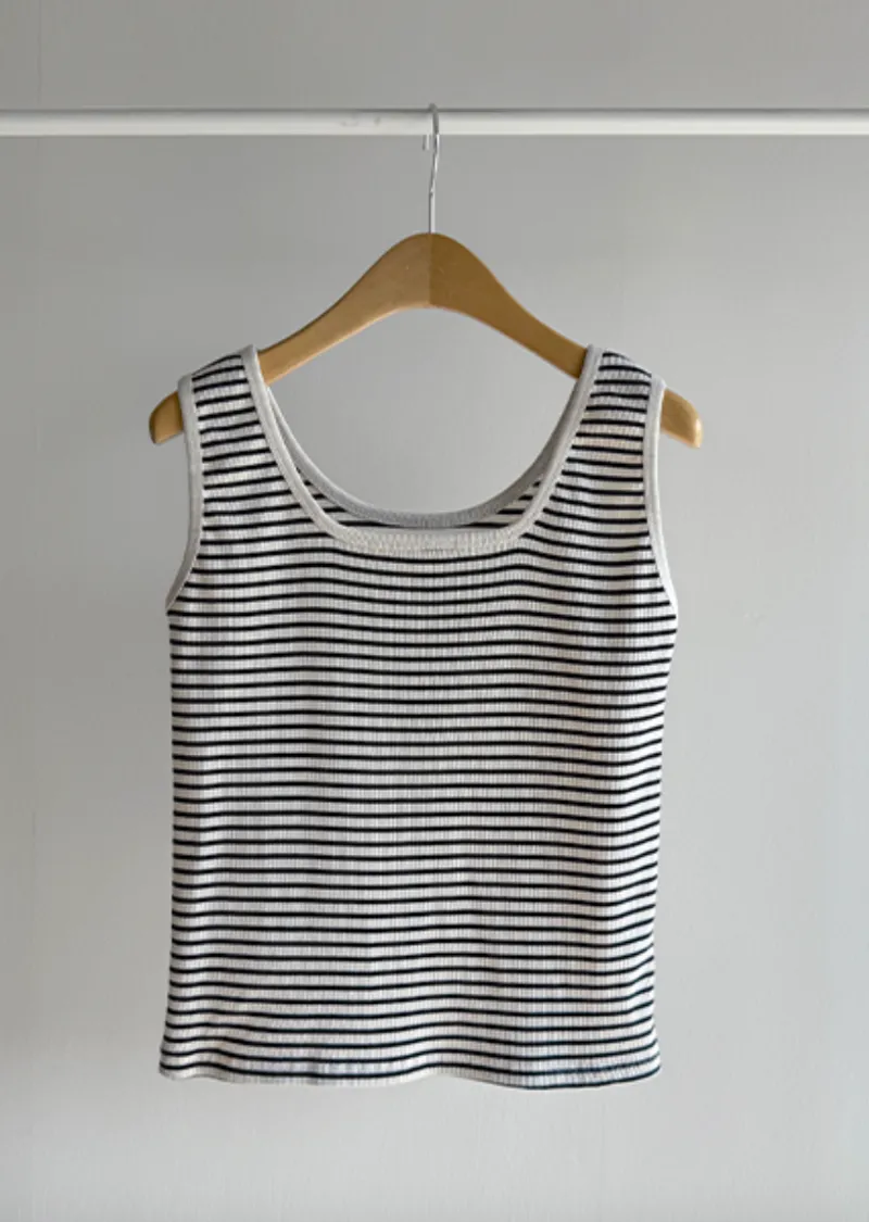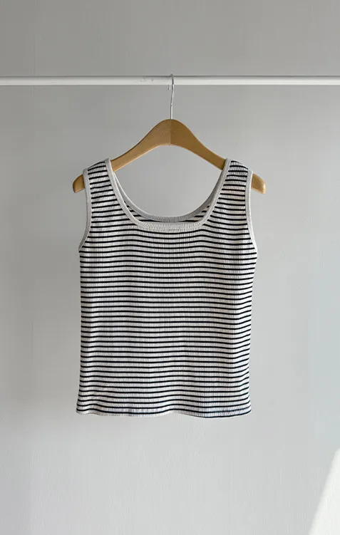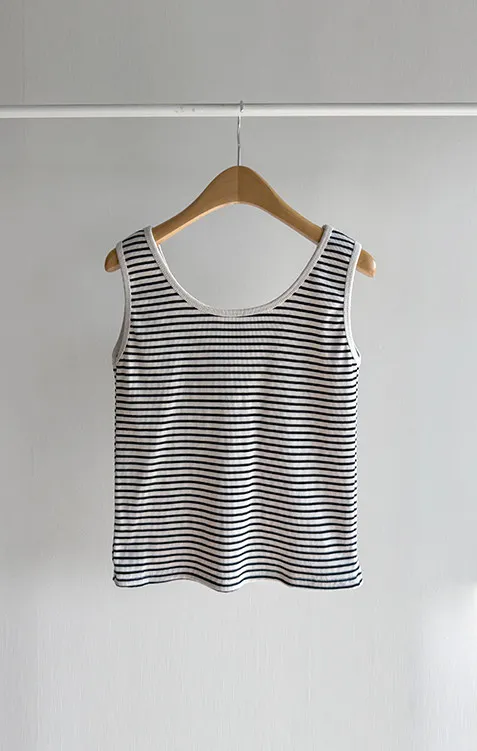 休閒氣息兩穿百搭條紋羅紋修身無袖上衣